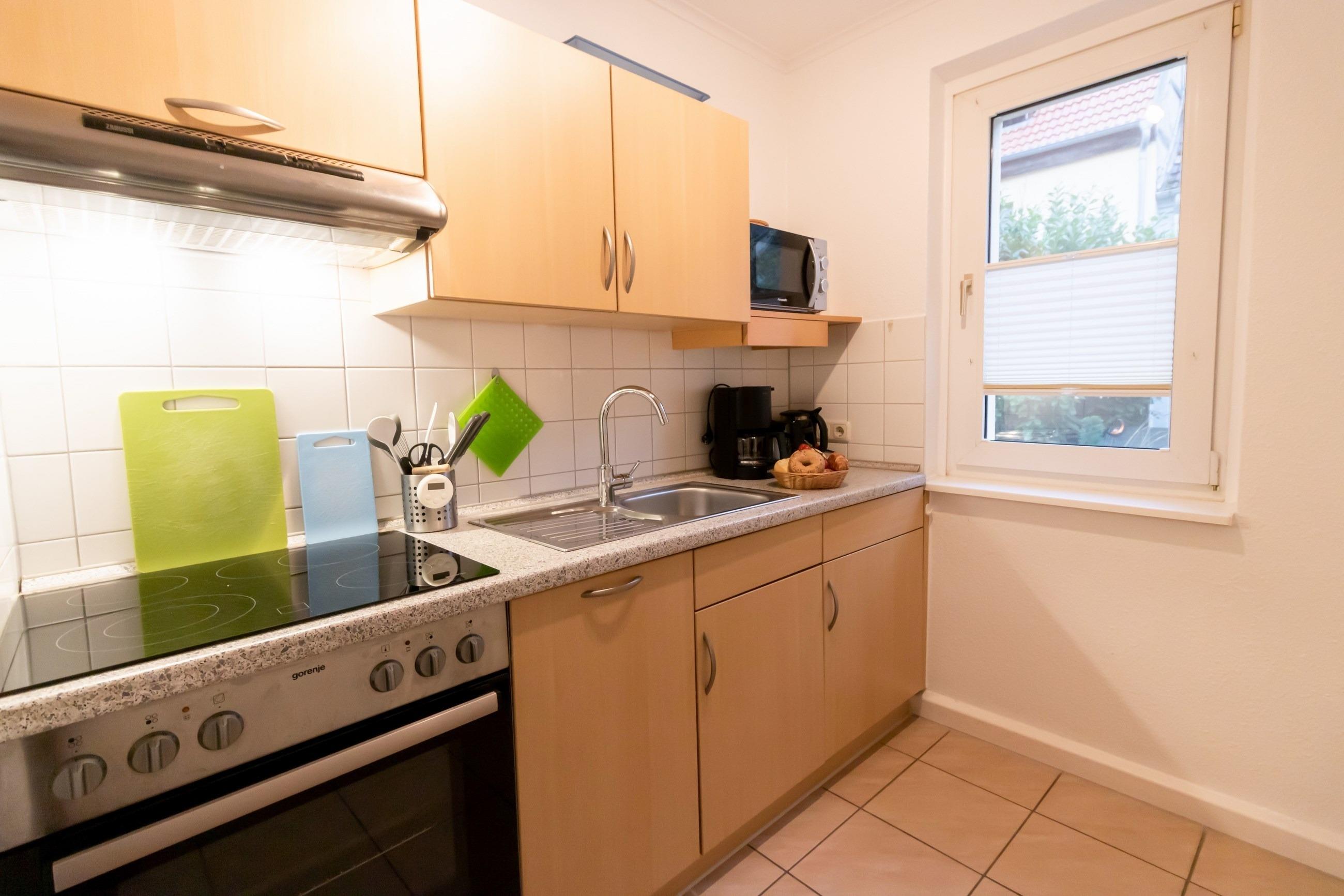 Die Ferienwohnung besteht aus 2 Zimmern (Wohnzimmer, Schlafzimmer), Badezimmer und kompletter Küche.
