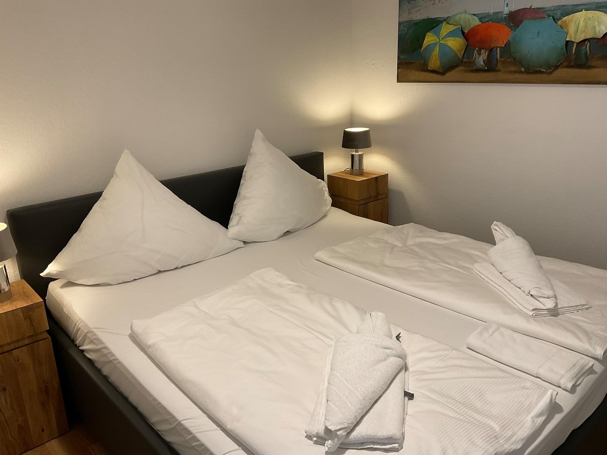 1 Schlafzimmer getrennt durch große Tür vom Wohnzimmer mit großem Boxspringbett (1,80 x 2,00 m), sowie ausreichend Stauraum für Ihre Kleidung. Hochwertige Biobettdecken und Kopfkissen allergikergeeignet.