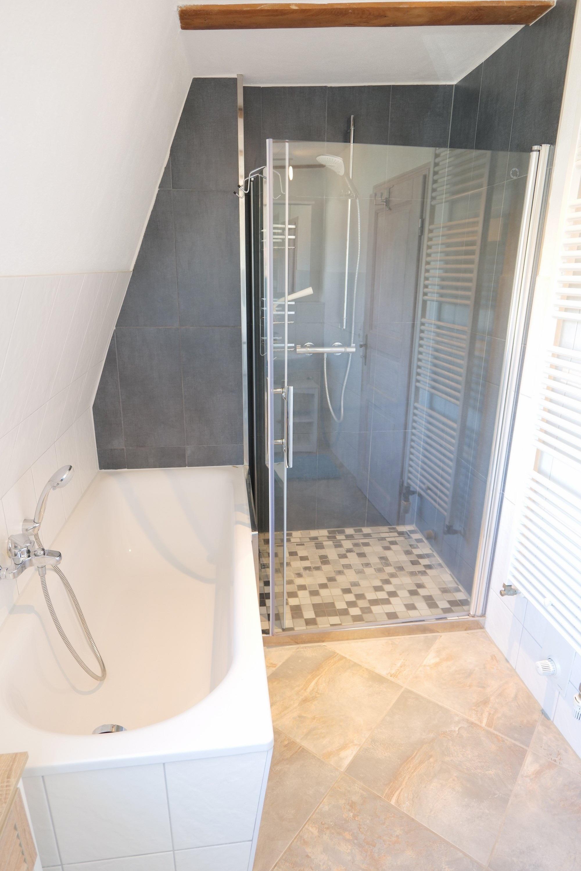 - Vollbad mit Badewanne, Dusche, WC, Handtuchheizkörper