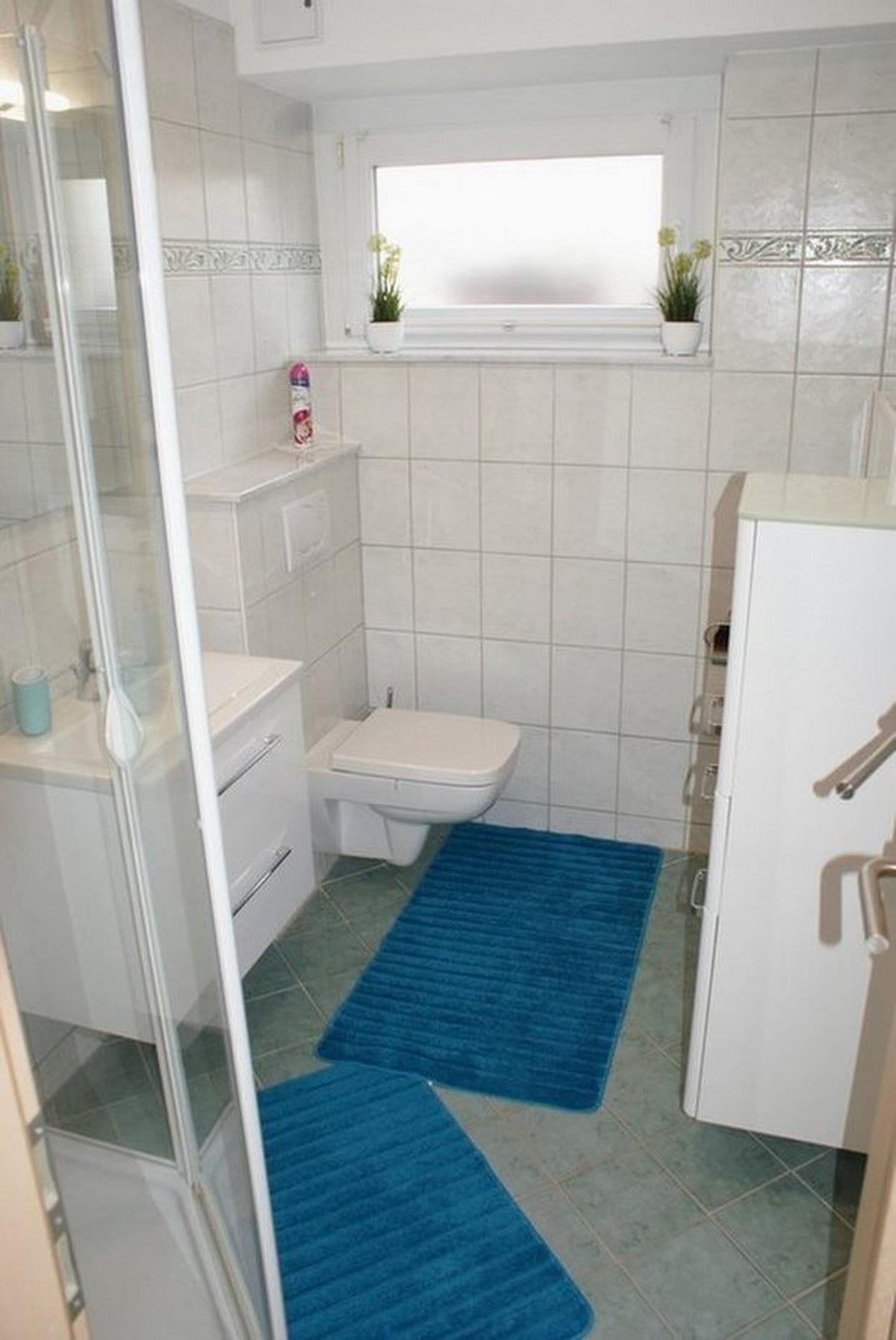 Durch den Flur gelangen Sie bis zum Bad (Dusche, WC, Waschbecken, Badmöbel) und dem Wohnzimmer (Sofa, Schrankwand, Esstisch, Fernseher, HiFi-Anlage) und Schlafraum (1 Doppelbett, 1 Nachttisch, 1 Nachttischlampe, 1 Schrank, 1 Stuhl).