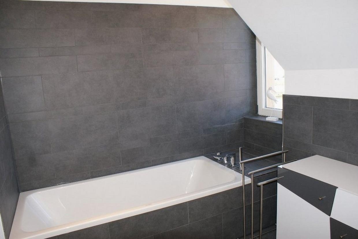 Badezimmer mit Badewanne, WC, Spiegel