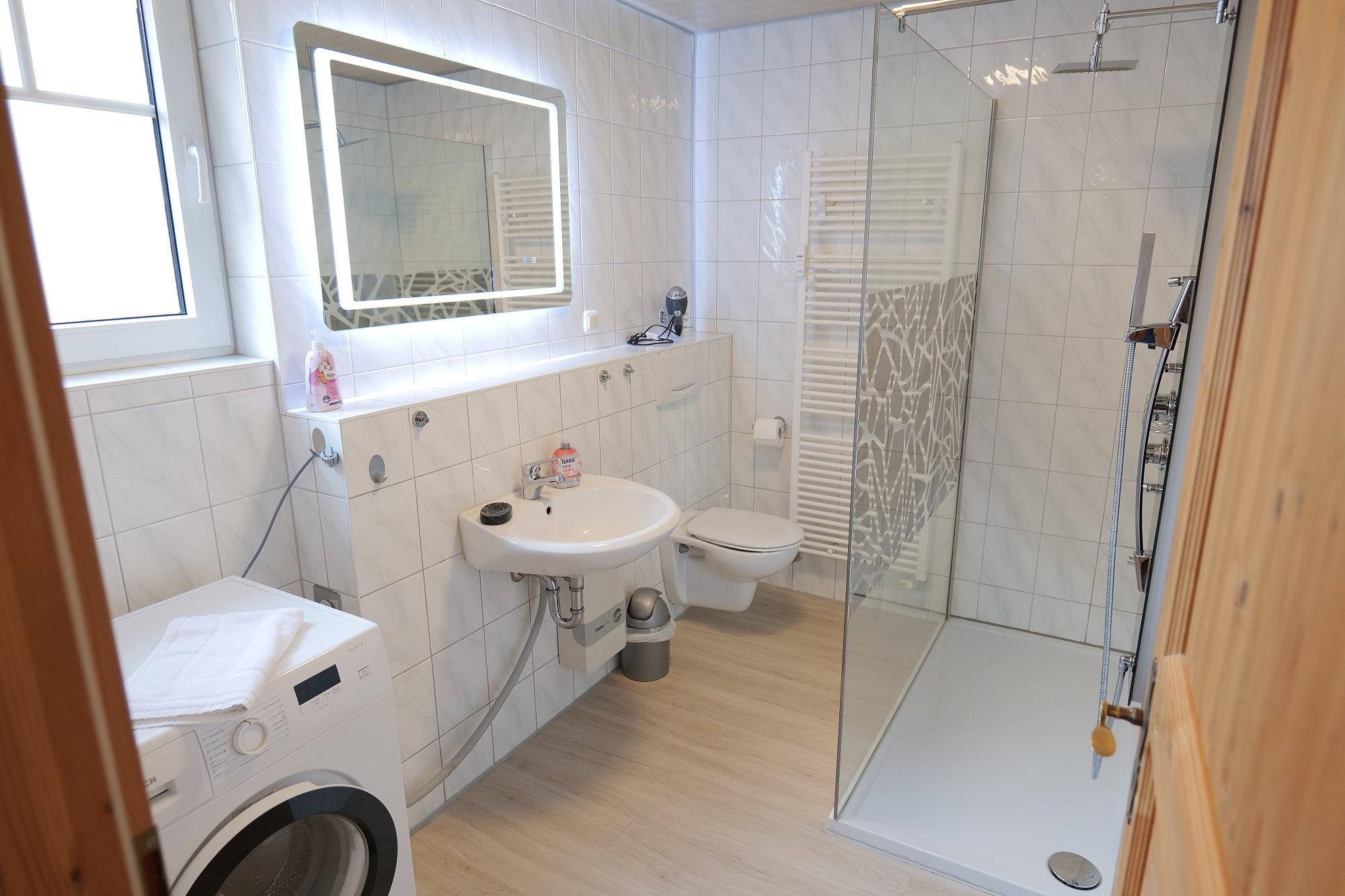 - Duschbad mit Dusche, WC, großen Spiegel, Waschmaschine