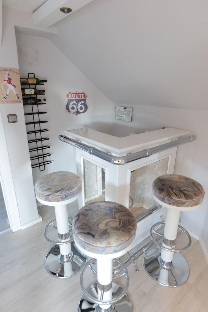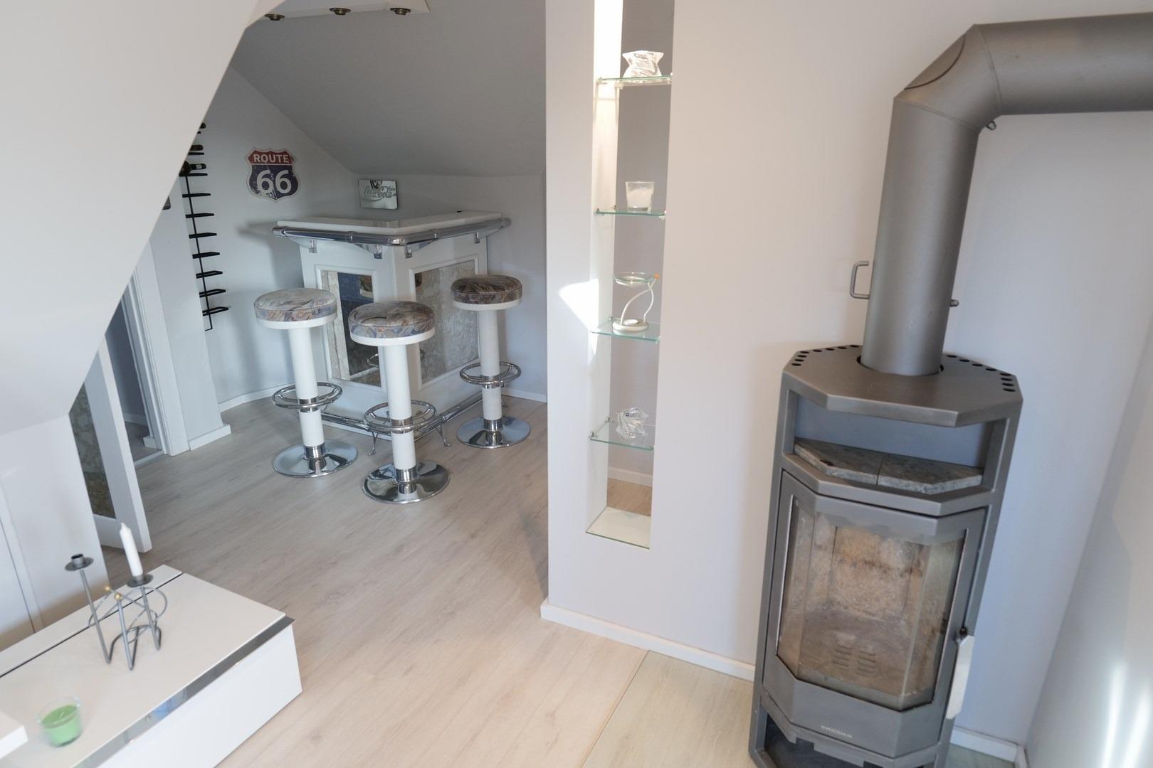 - Wohnzimmer mit Sofa, Flat-TV, Sideboar, Kamin, kleine Bar