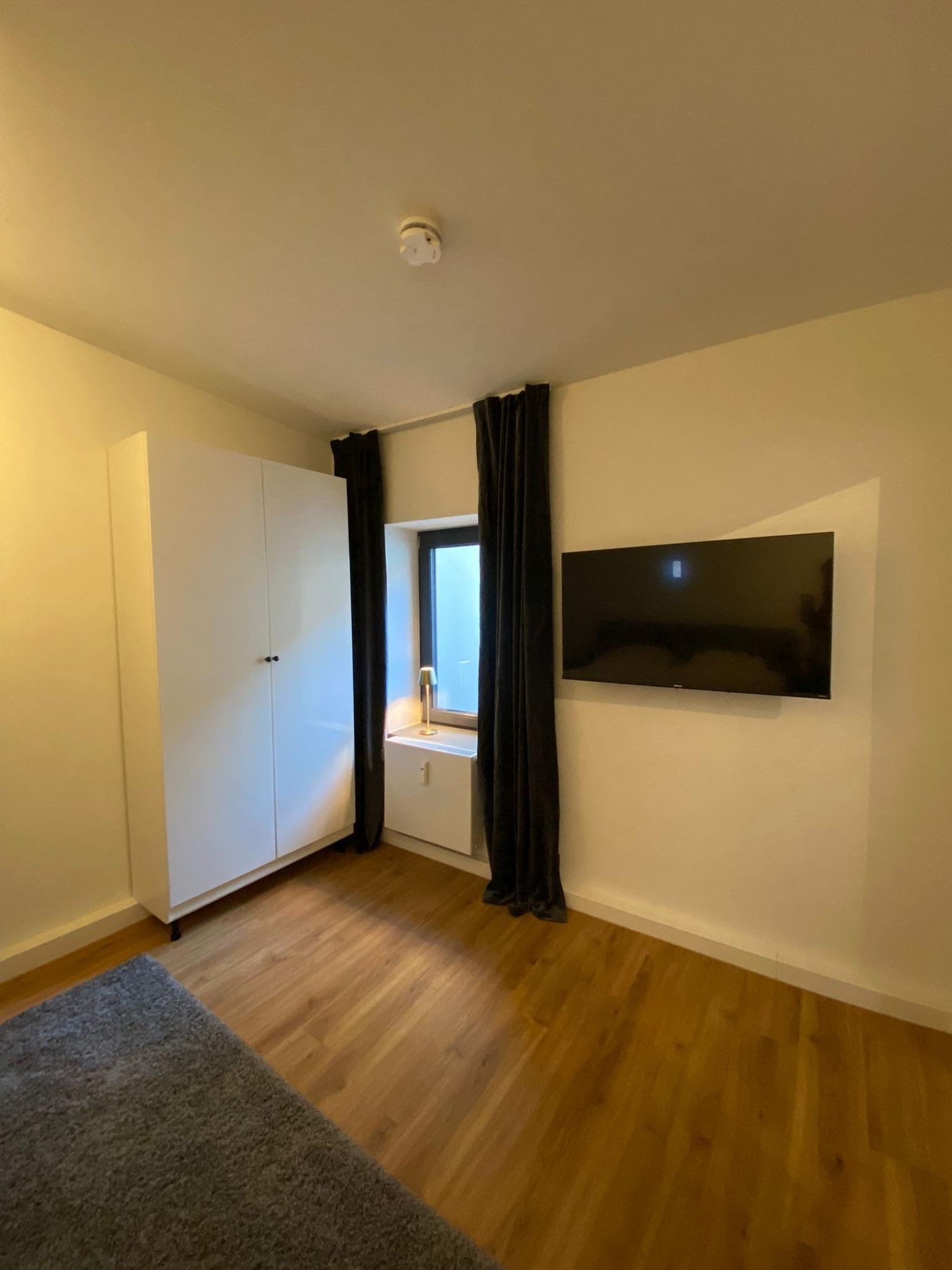 - Schlafzimmer mit Doppelbett (2,00 x 2,00 m), Schrank, 1 Flat-TV