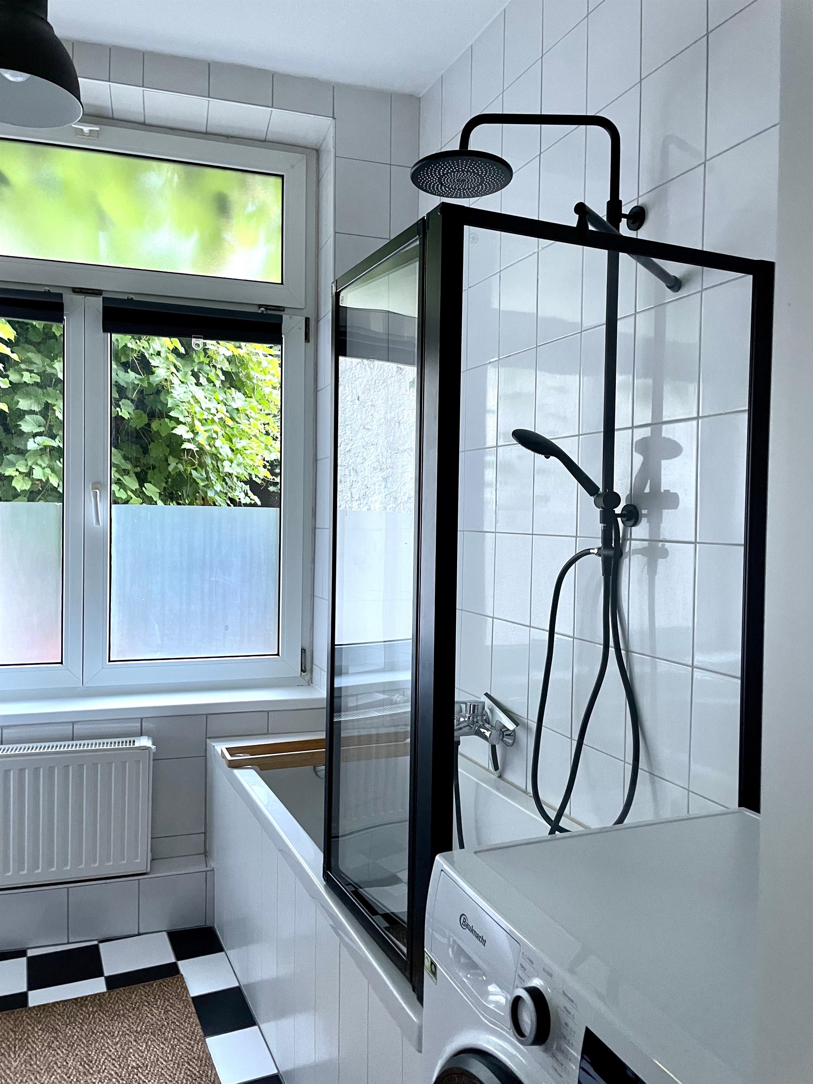 - Tageslichtbad mit Wanne, Duschabtrennung und Waschmaschine