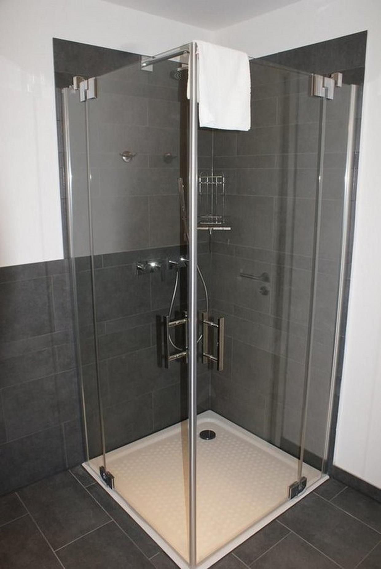 - Badezimmer mit Dusche (ebenerdig), WC, Waschbecken
