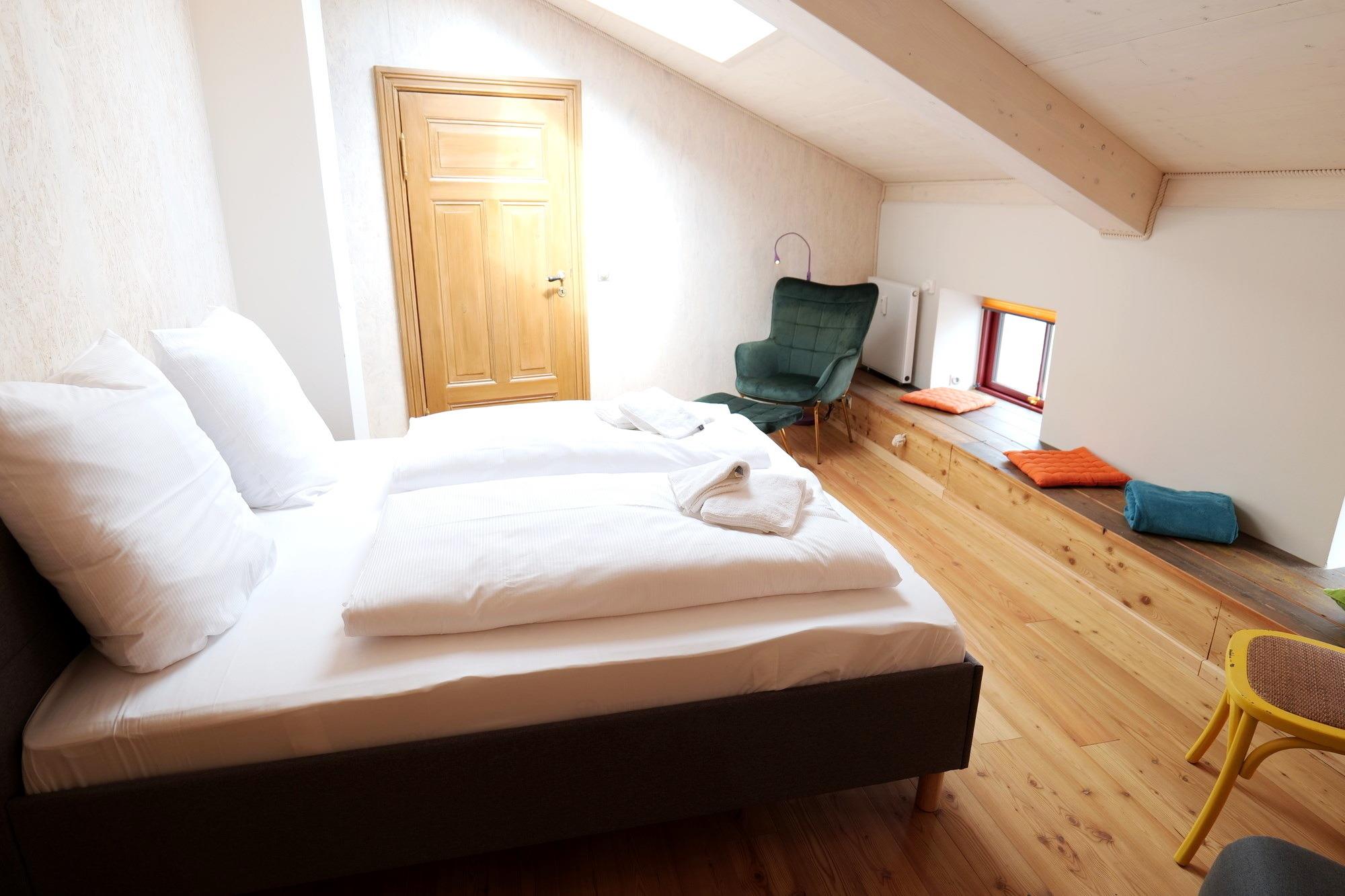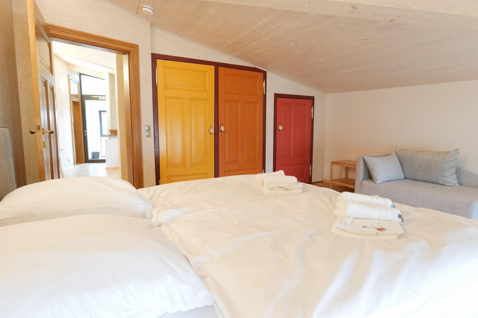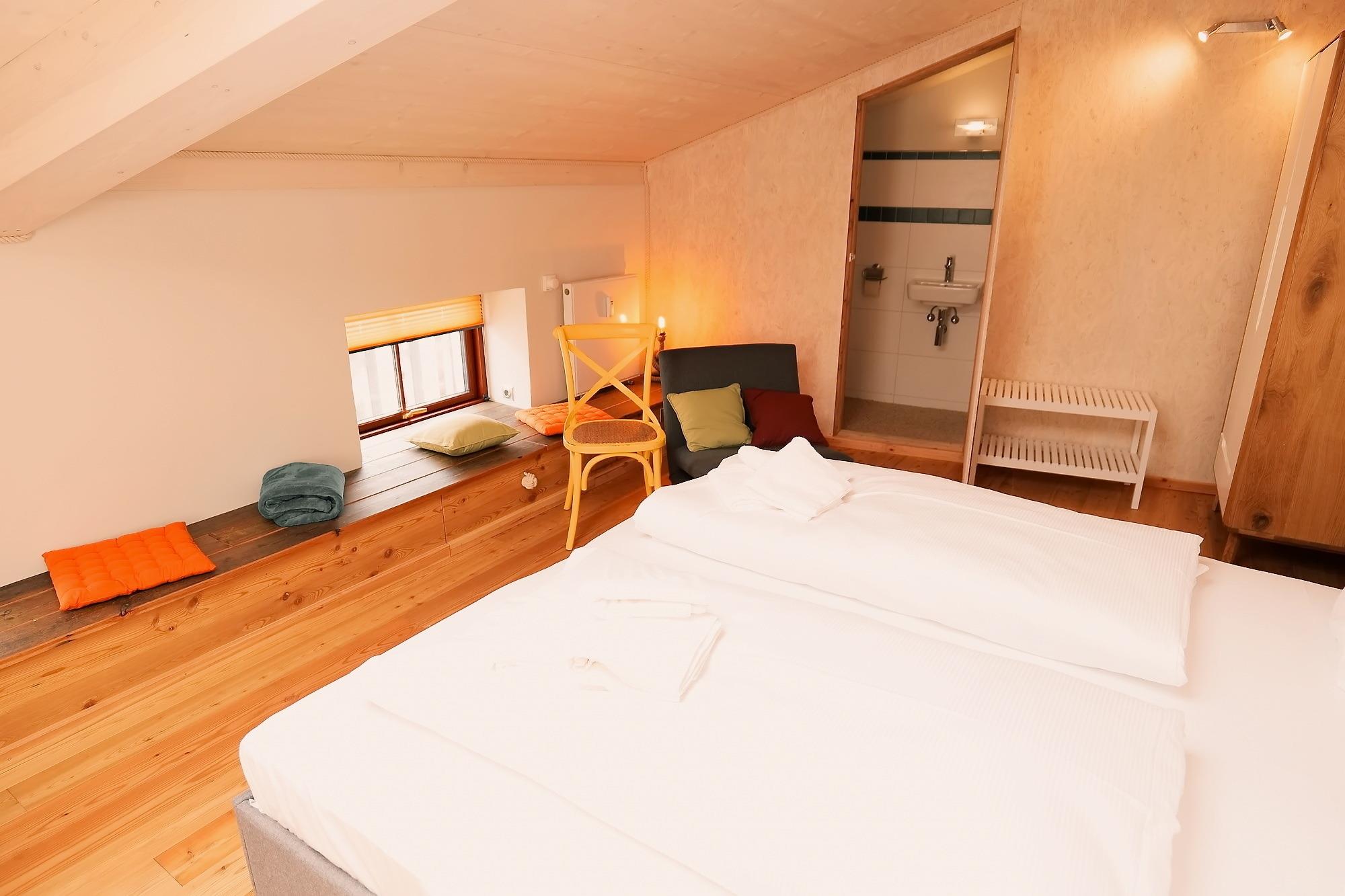 - Schlafzimmer 3 mit Doppelbett (1,80 x 2,00 m), Einsitzercouch, Kamin (Achtung, das Schlafzimmer 3 ist das Durchgangszimmer zum Schlafzimmer 4)