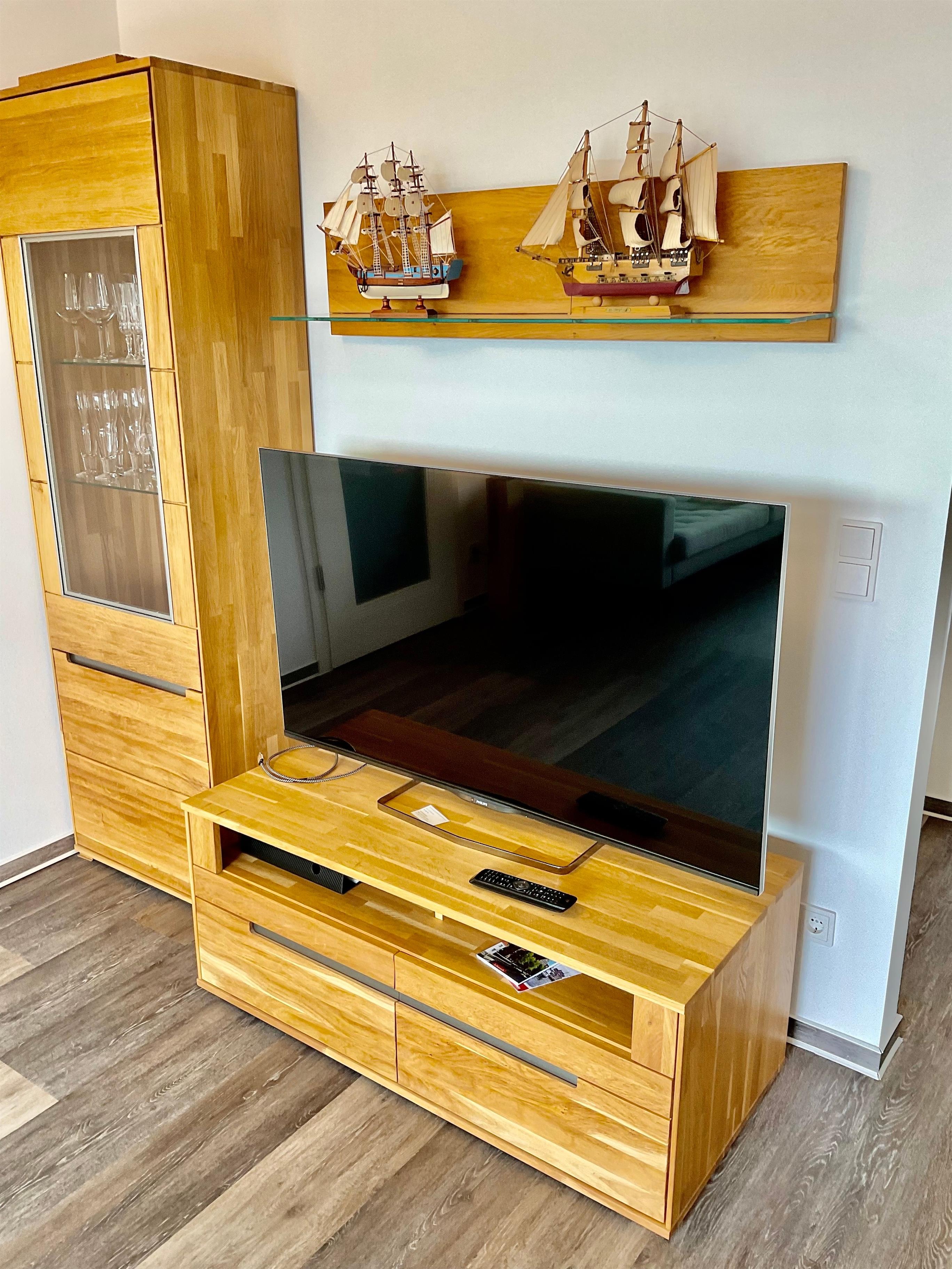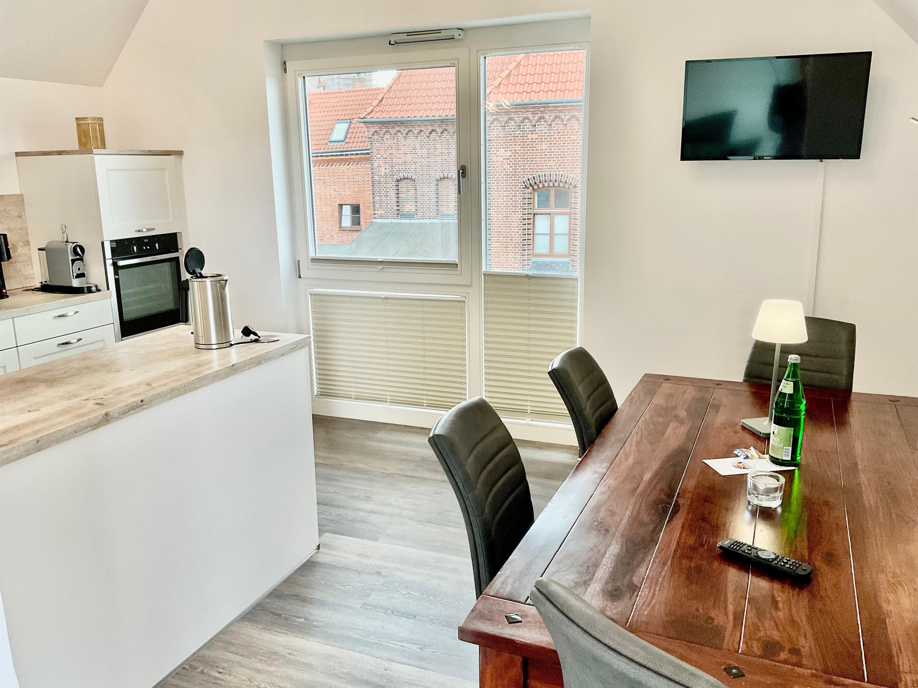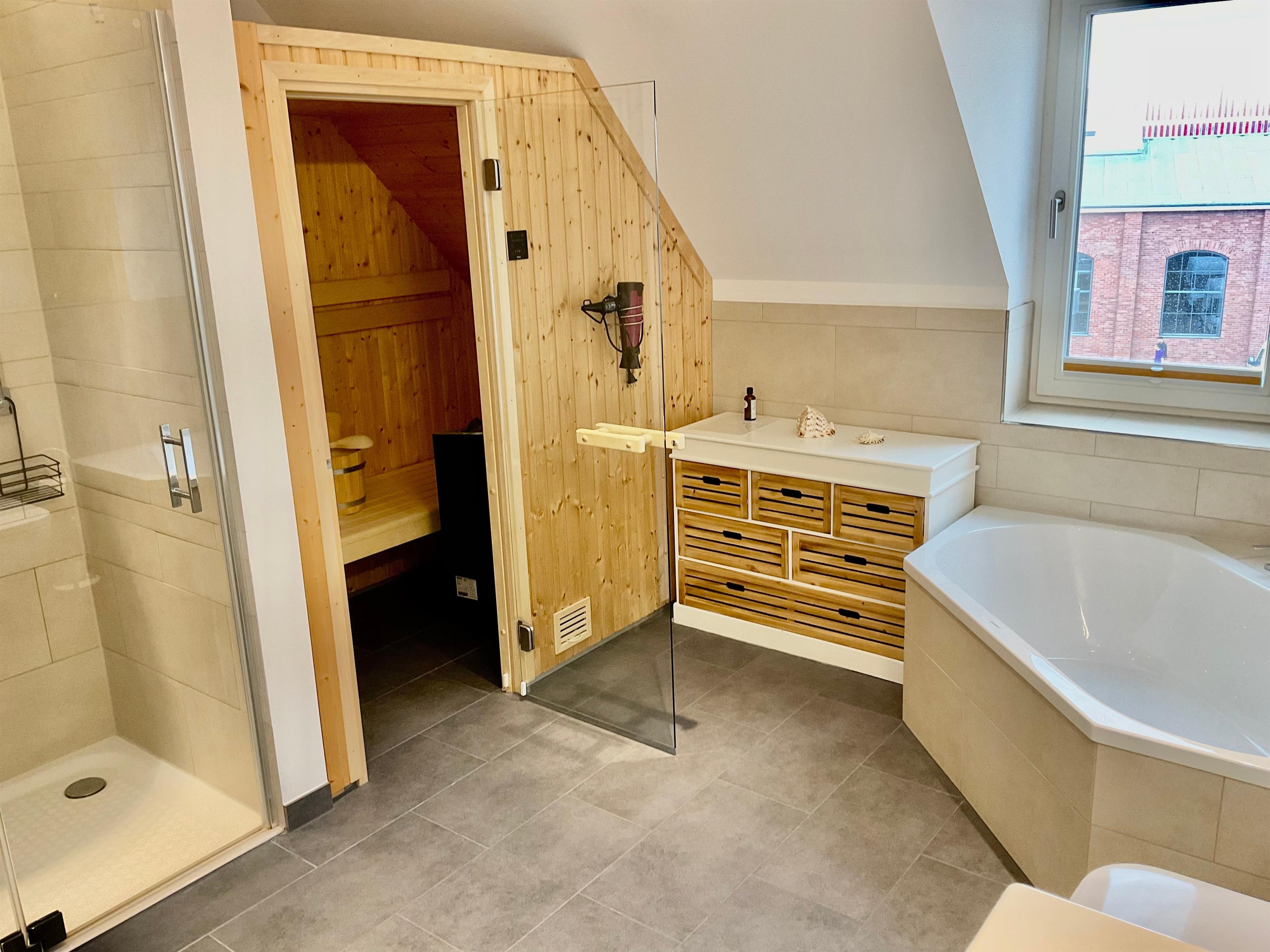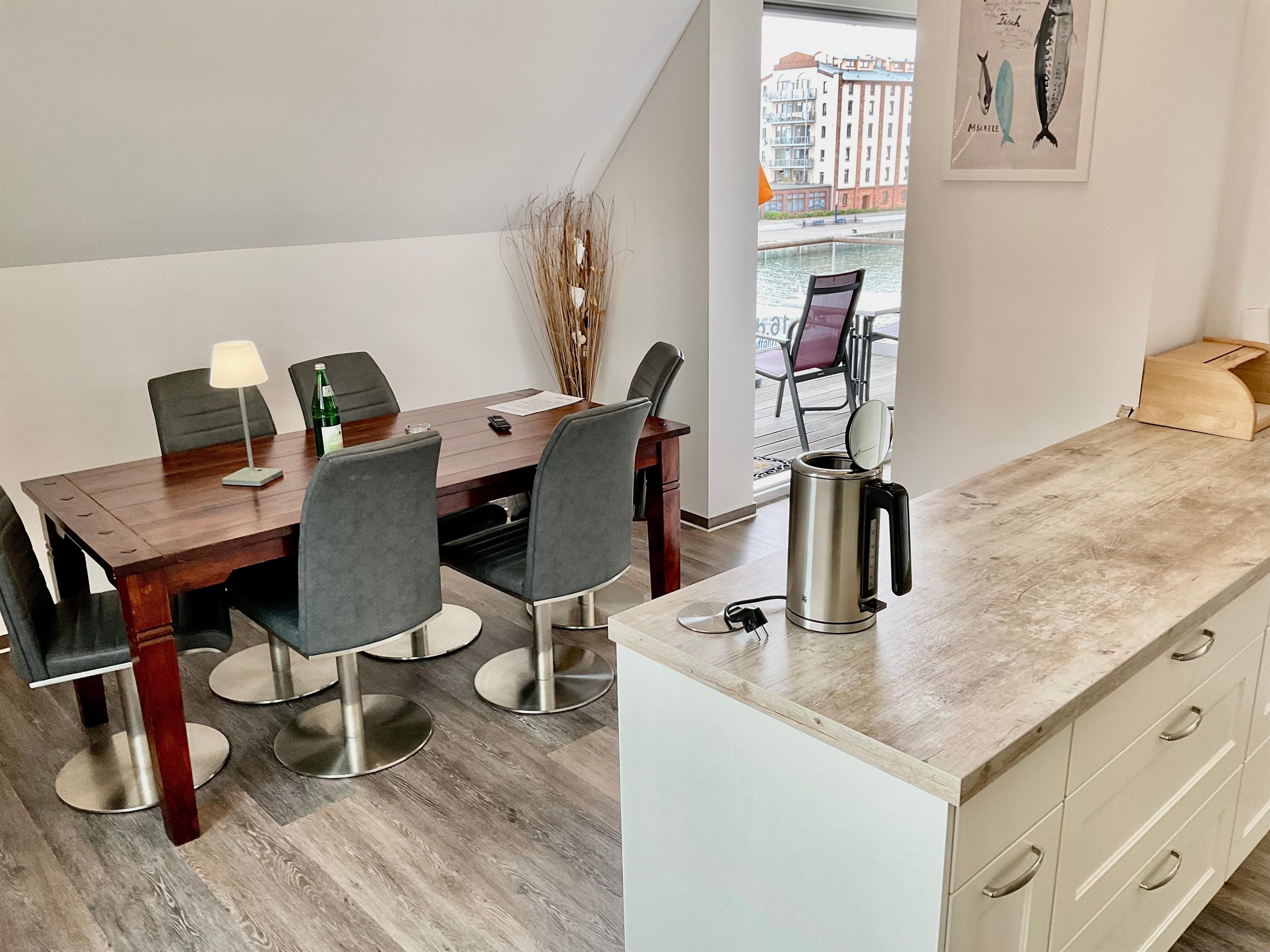 Das 4-Zimmer-Appartement ist genauestens durchdacht und sehr hochwertig eingerichtet. Auf 114m² Wohnfläche können hier bis zu 6 Personen einen traumhaften Urlaub verbringen. In dem hellen, großzügigen Wohn-/ Essbereich mit Fernseher ist die Küche geschickt integriert und voll ausgestattet (u.a. Mikrowelle, Geschirrspüler, Induktionsherd, Kühlschrank mit Gefrierfach, Backofen, Kaffeemaschine u.v.m.). 2 modern eingerichtete Schlafzimmer mit jeweils einem TV-Gerät sorgen für erholsame Nächte, dazu ein 3. Schlafzimmer mit Doppelbett und TV. Das Badezimmer ist in einer hochwertigen Bauausführung mit Badewanne, Dusche und einer Sauna. Ein weiteres Gäste WC steht und kostenloses WLAN steht Ihnen zur Verfügung. Durch seine exklusive Lage am Alten Hafen von Wismar können Sie einen traumhaften Altstadt- und Hafenblick genießen. Ein PKW-Stellplatz direkt am Haus steht Ihnen kostenfrei während Ihres Aufendhalts zur Verfügung. Eine Waschmaschine steht Ihnen zur Verfügung.