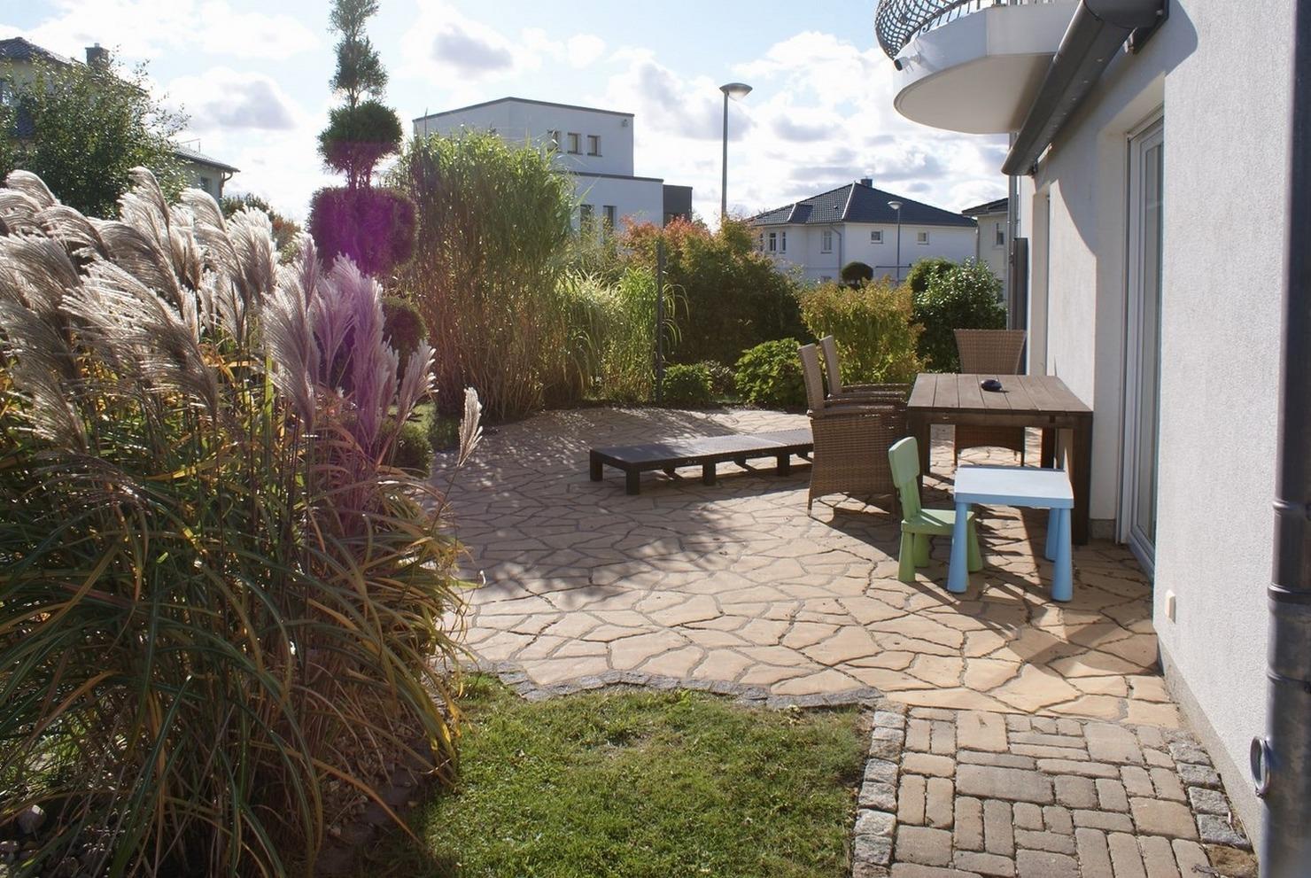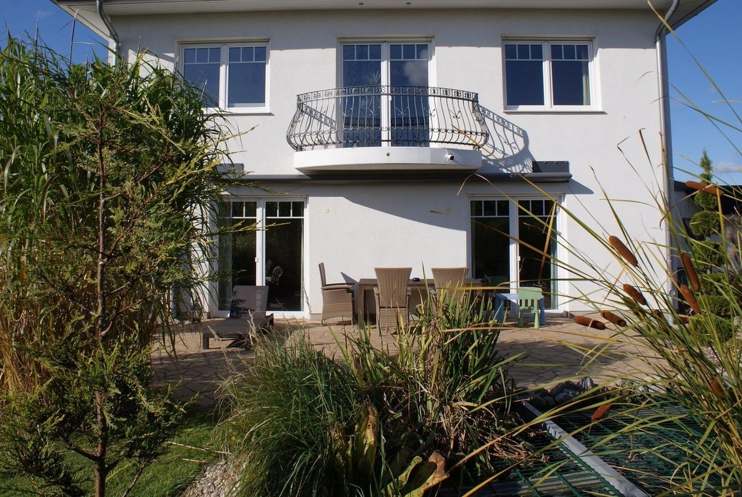 - große Terrasse mit Essbereich, Sonnenliege, Gartenteich (kindergesichert)