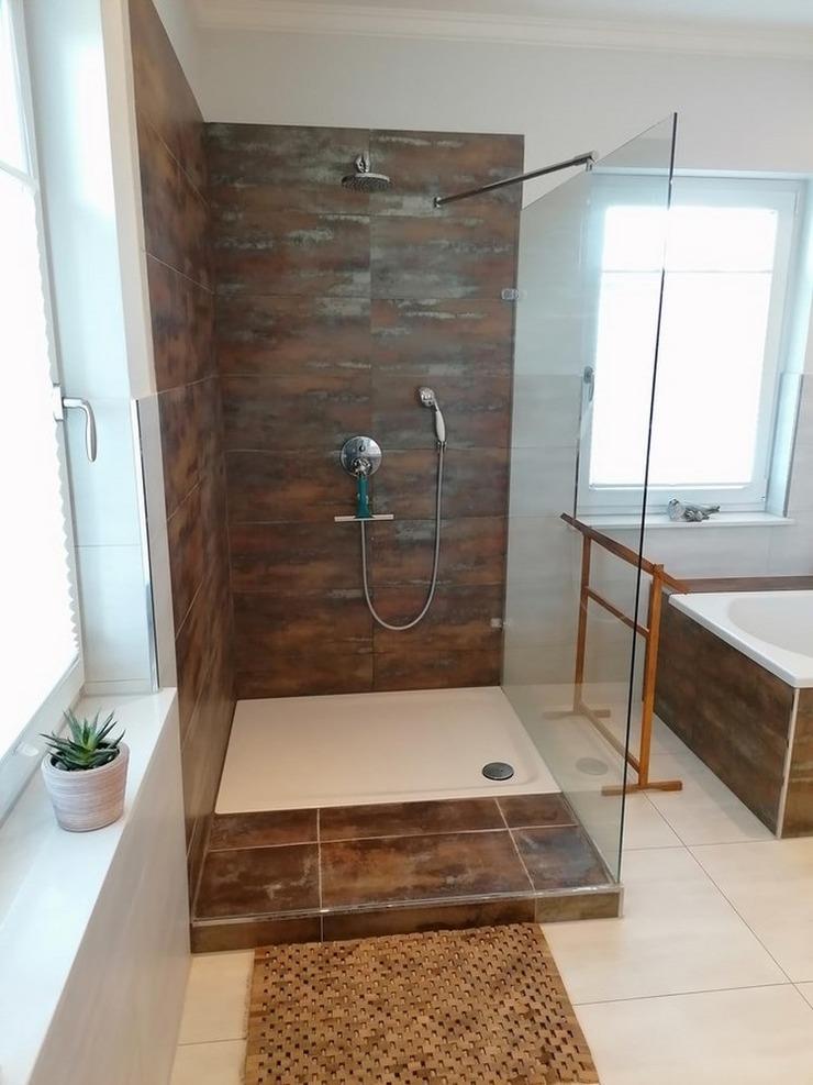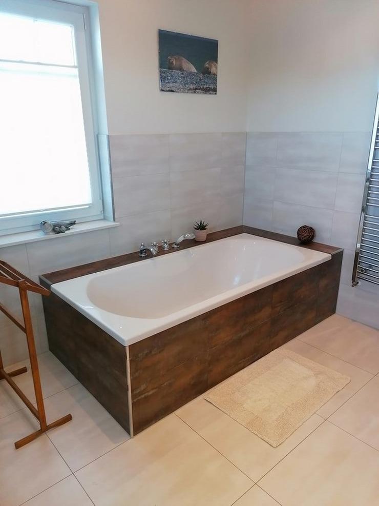 - Vollbadezimmer mit Badewanne, Dusche, WC, großen Spiegelschrank, Radio