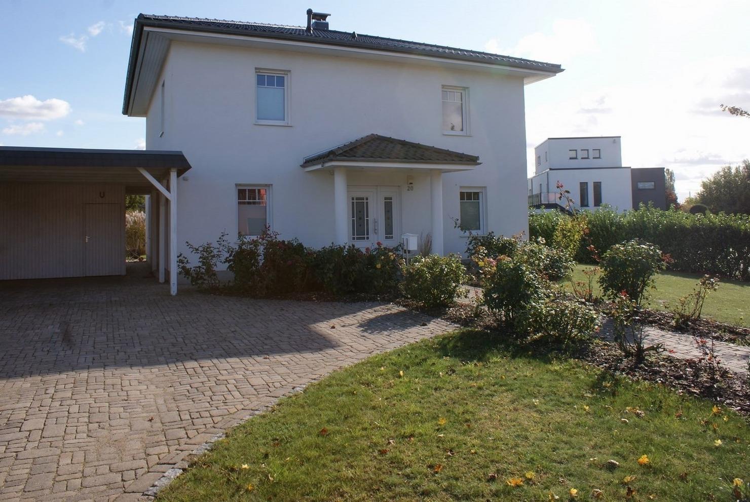 Doppelcarport für 2 Autos, weitere Parkflächen in der Einfahrt.