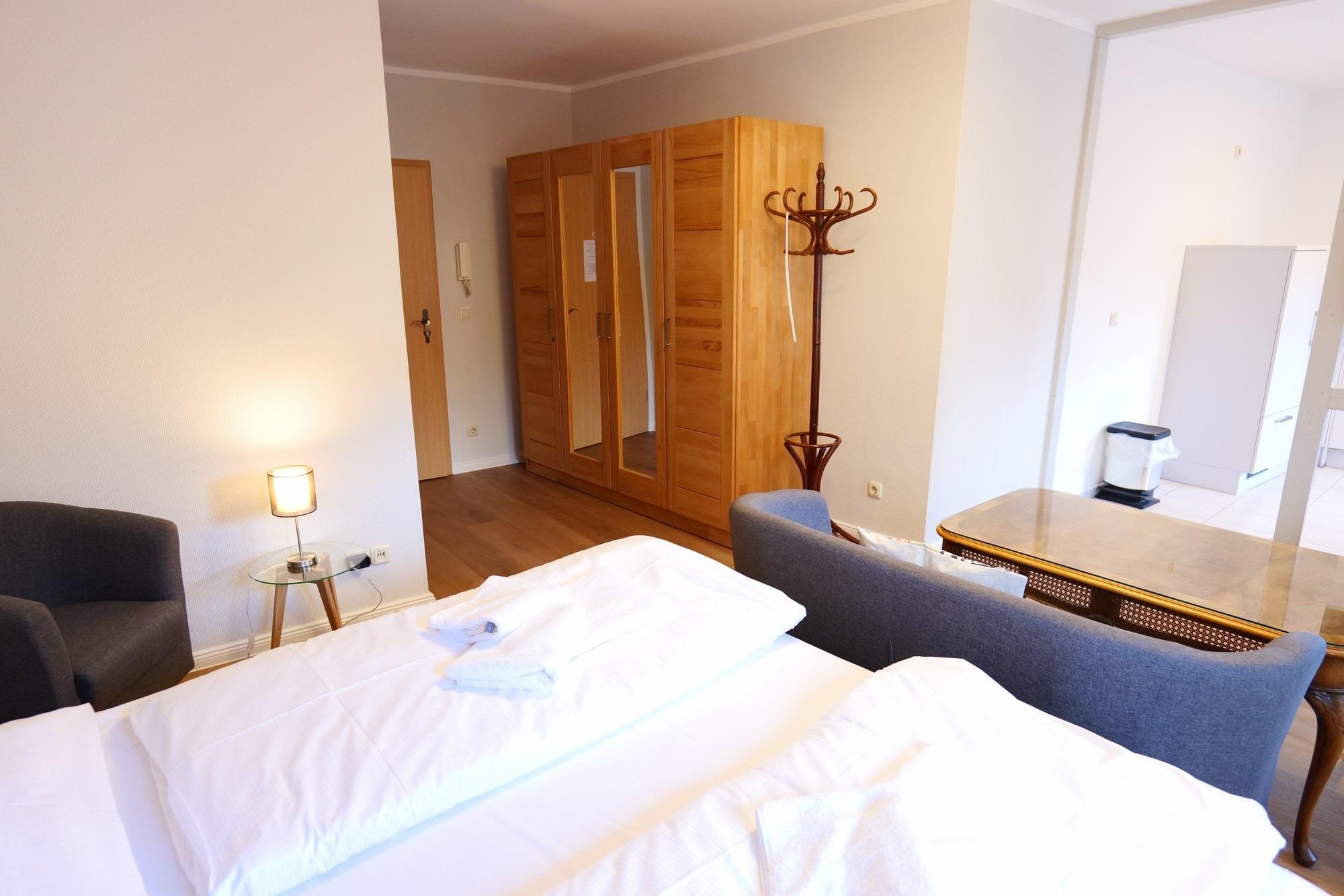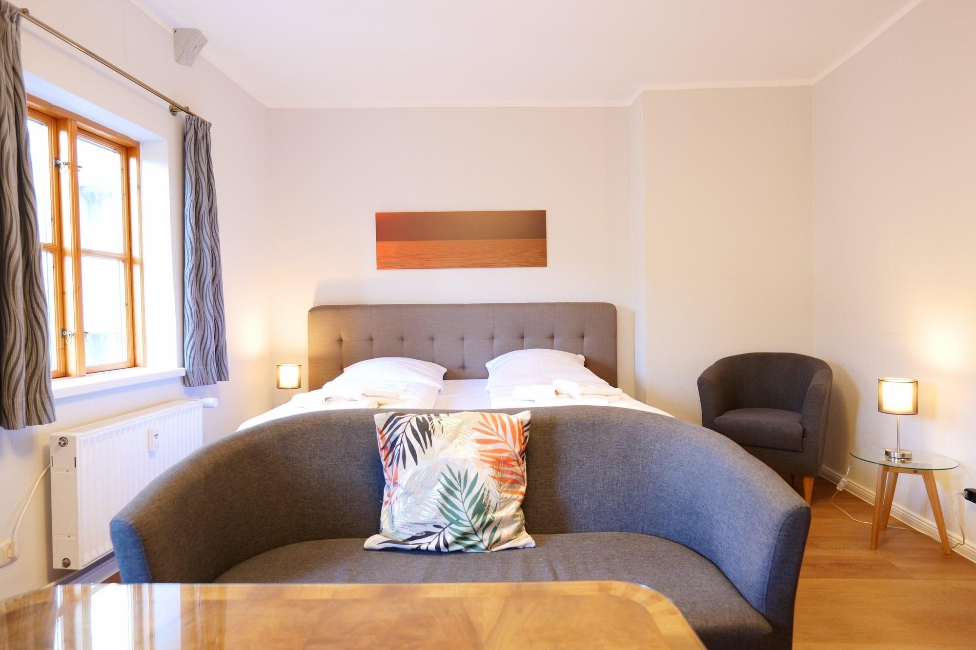Schon im Alten Stadtbuch der Hansestadt Wismar, angelegt 1680, ist das Haus "Nienstadt 9" als eine von drei Buden unter einem Dach verzeichnet. Als Buden wurden in norddeutschen Küstenstädten im Mittelalter kleine Häuser armer Leute beschrieben, die neben den Giebelhäusern der gut betuchten Kaufleute das Altstadtbild prägten. Aber keine Sorge, in den Ferienwohnungen der Herberge KAFFETIET ist es heute weder eng noch ärmlich. Das gehobene, Hotelstandard zählende, Ferienappartement ist gut 30 qm groß, mit textilen Hotelbodenbelag versehen, verfügt über eine voll ausgestattete Küchenzeile, nebst Elektroherd, Geschirrspüler, Kühlschrank, Wasserkocher, Kaffeemaschine, Besteck, Geschirr usw., dazu ein neu gefliestes Duschbad mit Echtglasduschen, gemütlichen Boxspringbett mit Taschenfederkernmatratzen, Flachbildschirm-Kabel-TV und einer behaglichen Sitzecke. Zur Wohnung gehört ebenfalls ein eigener Balkon.