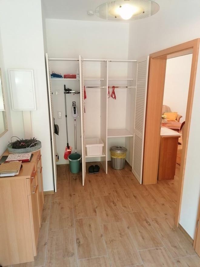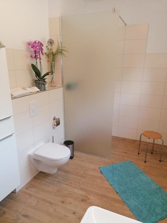 Die FeWo für 2 Personen besteht aus einem Wohnzimmer mit Schrankküche (Kühlschrank mit Gefrierfach, Kochplatte, Mikrowelle, Kaffeemaschine, Wasserkocher, Toaster und Abwäsche), einem Schlafzimmer mit Doppelbett, einem Bad mit Dusche und Fön. Der Flur ist geräumig. Die Fenster sind mit Rollläden versehen. Bettwäsche und Handtücher sind inclusive. Der WLAN- Zugang ist kostenlos. Die Ferienwohnung ist eine Nichtraucherwohnung, Haustiere sind nicht erlaubt. Nutzen Sie bitte die Parkflächen für Ihr Auto gegenüber der Hauses in der Kastanienallee. Ihr mitgebrachten Fahrräder stehen sicher abgeschlossen in unseren Fahrradschuppen mit Auflademöglichkeiten für E-Bikes.