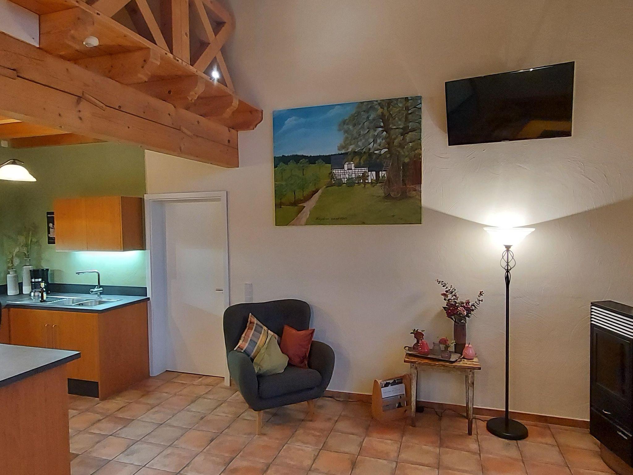 Unsere exklusiv ausgestattete Ferienwohnung Land und Leben liegt ca. 2 km vom Erlebnisbauernhof Hof Hagdorn entfernt in ruhiger waldreicher Lage im Holperbachtal. Hochwertige Sanitär-/ Wohn-/ und Kücheneinrichtungen machen Ihren Urlaub zum Erlebnis und sorgen für Erholung.