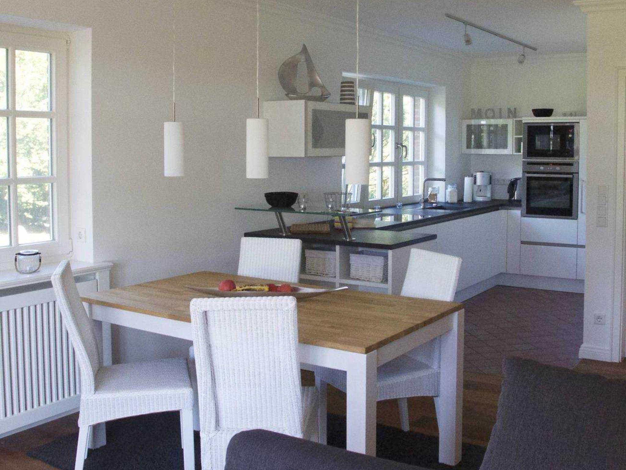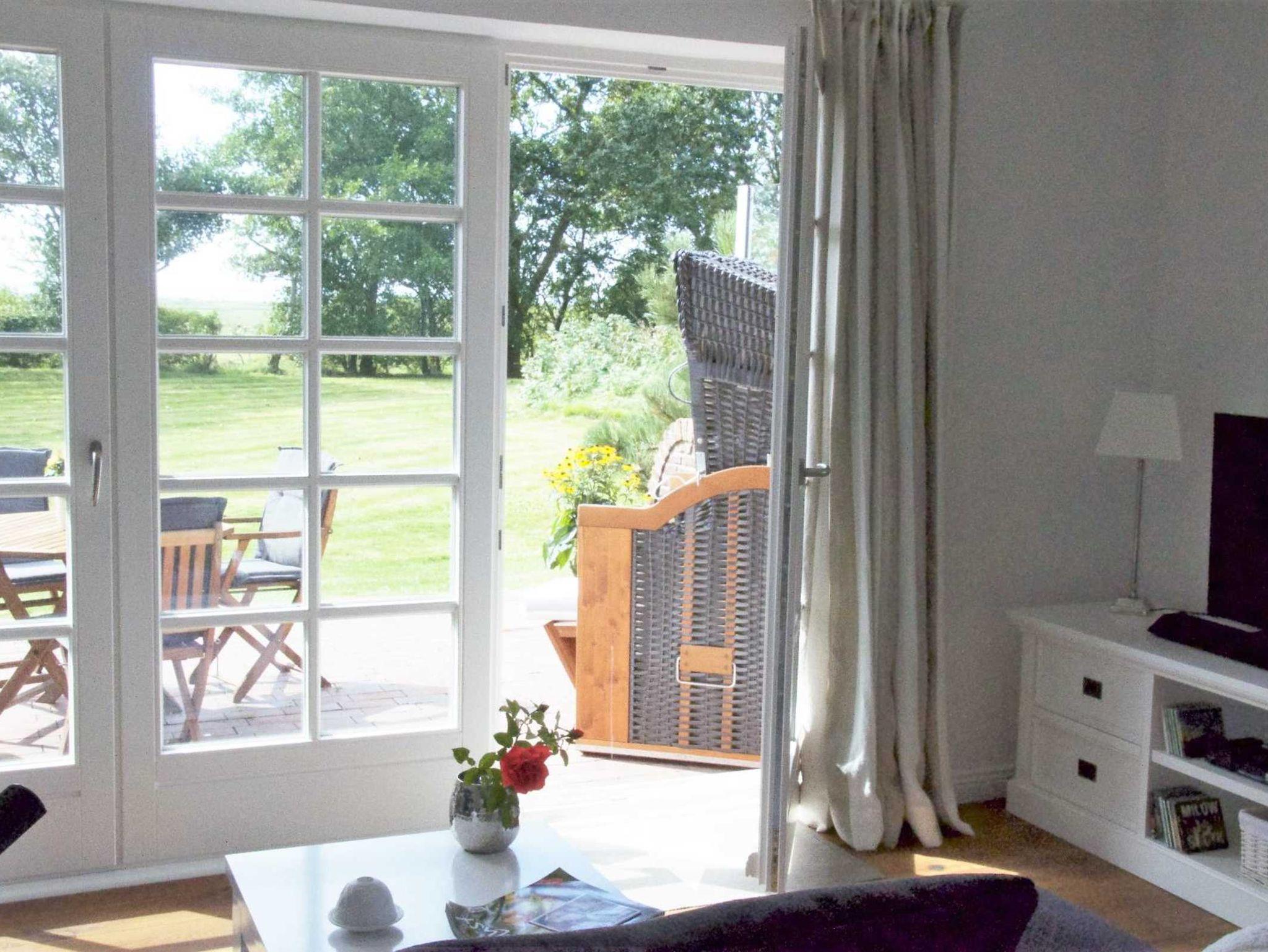 Das Grundstück hat eine ruhige Lage und lädt zur Erholung ein. Von der offenen Küche, dem Wohnbereich und der Terrasse hat man einen weiten Blick über die Salzwiesen, das Wattenmeer bis zum Leuchtturm nach Amrum.