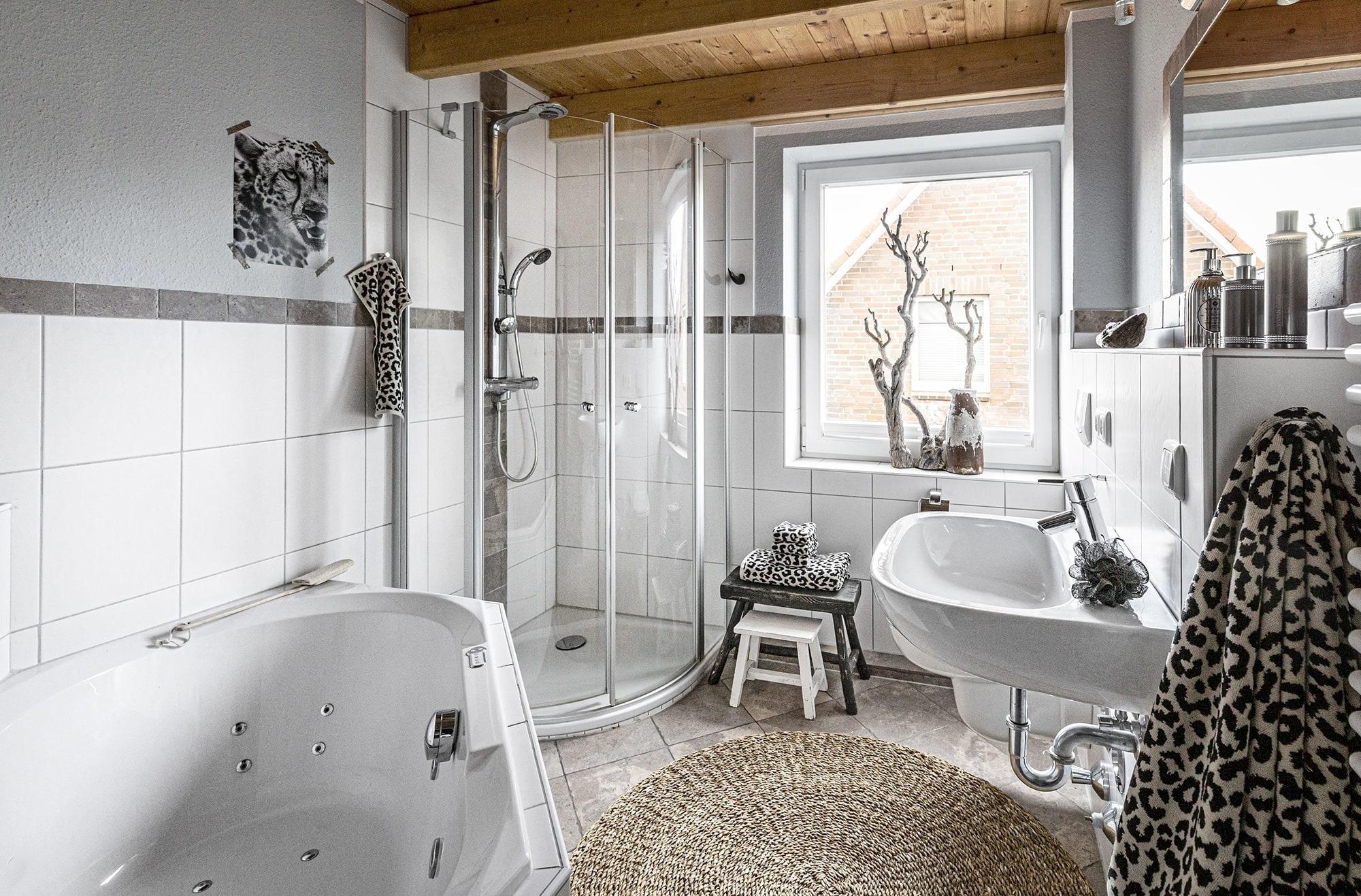 Badeværelse med bruser og badekar