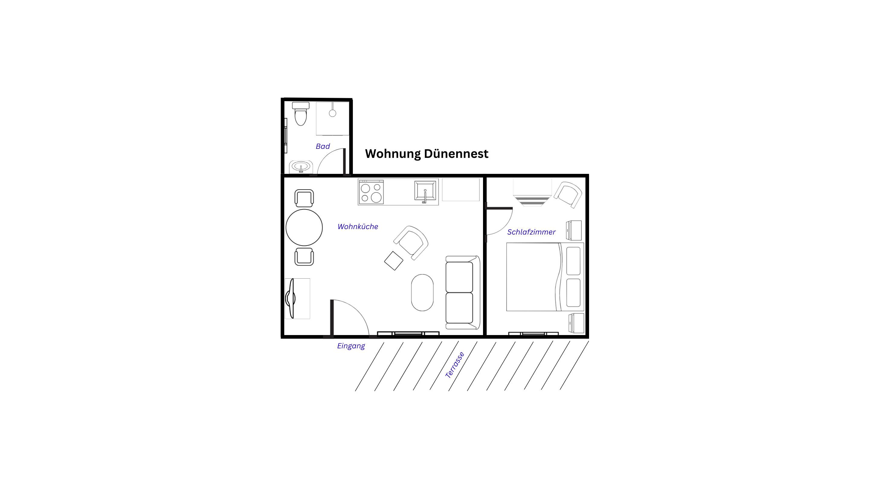Eine kleine "Auszeit" gefällig? Die Ferienwohnung "Dünennest" hat einen separaten Eingang mit eigener Terrasse, Strandkorb und Gartenblick. Sie liegt extrem ruhig und nah an den schönen Dünen Amrums.