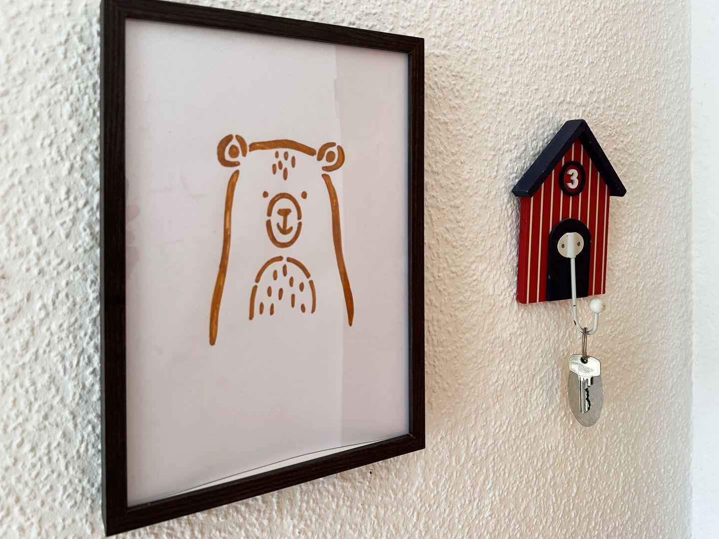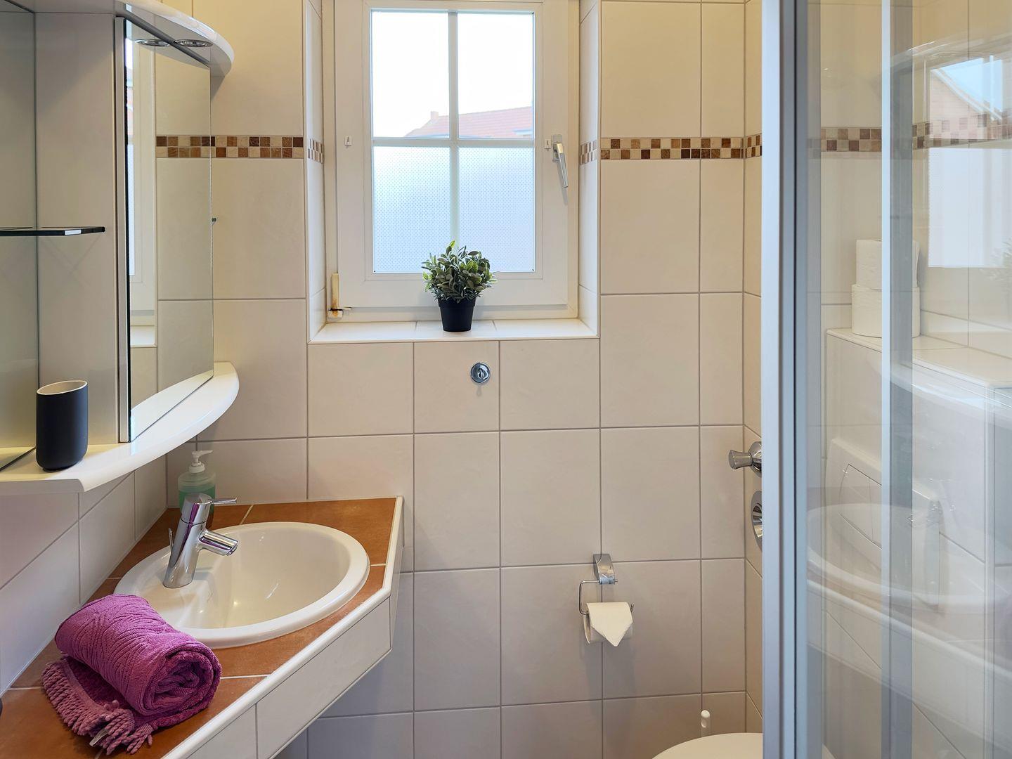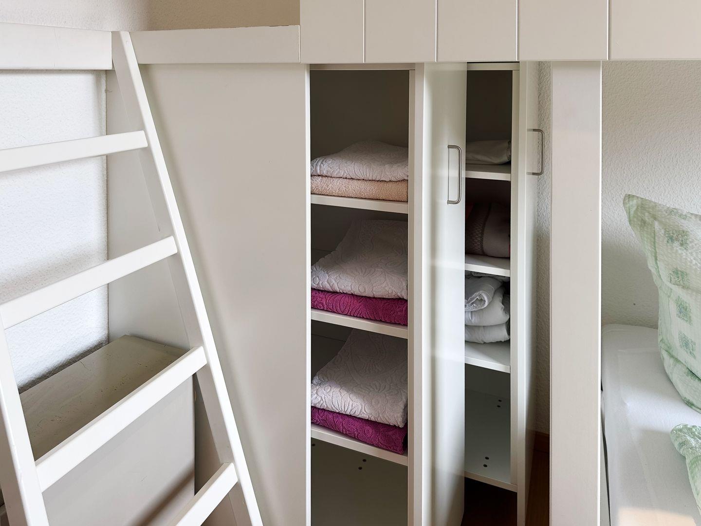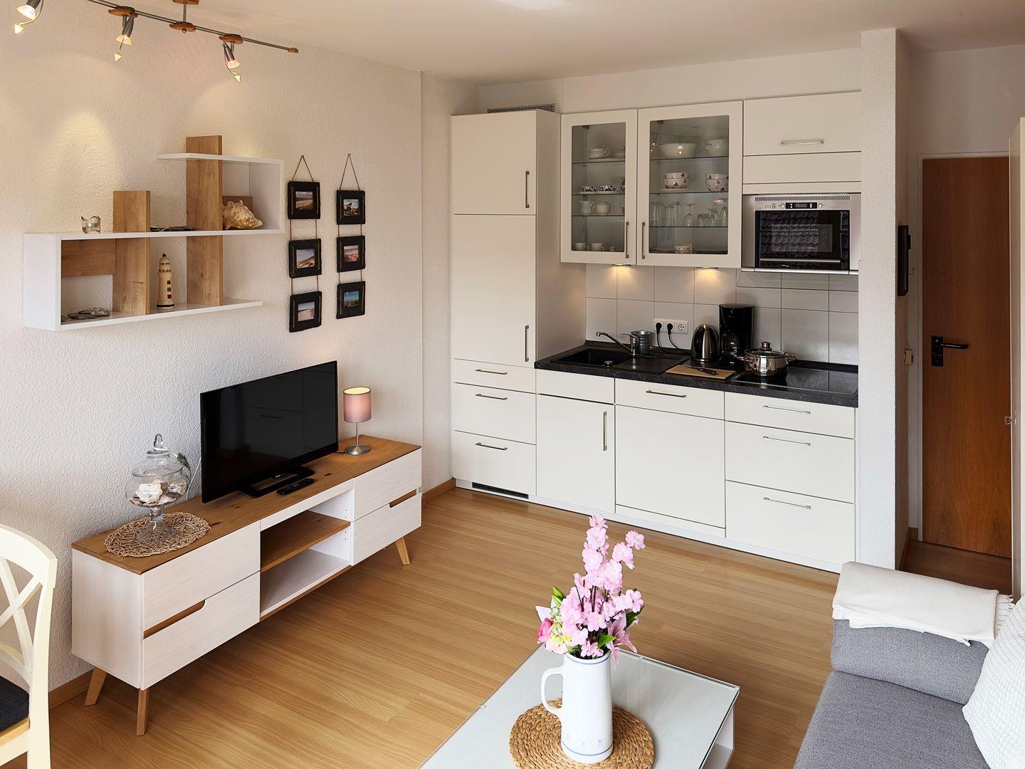 Die Wohnung verfügt über 1 Wohnraum mit WLAN, Sat-TV und offener Küche, 1 Schlafzimmer, 1 Badezimmer mit Dusche und WC; eine Süd-Terrasse mit 2 Stühlen und 1 Tisch (April bis Oktober) und eingeschränktem Meerblick.