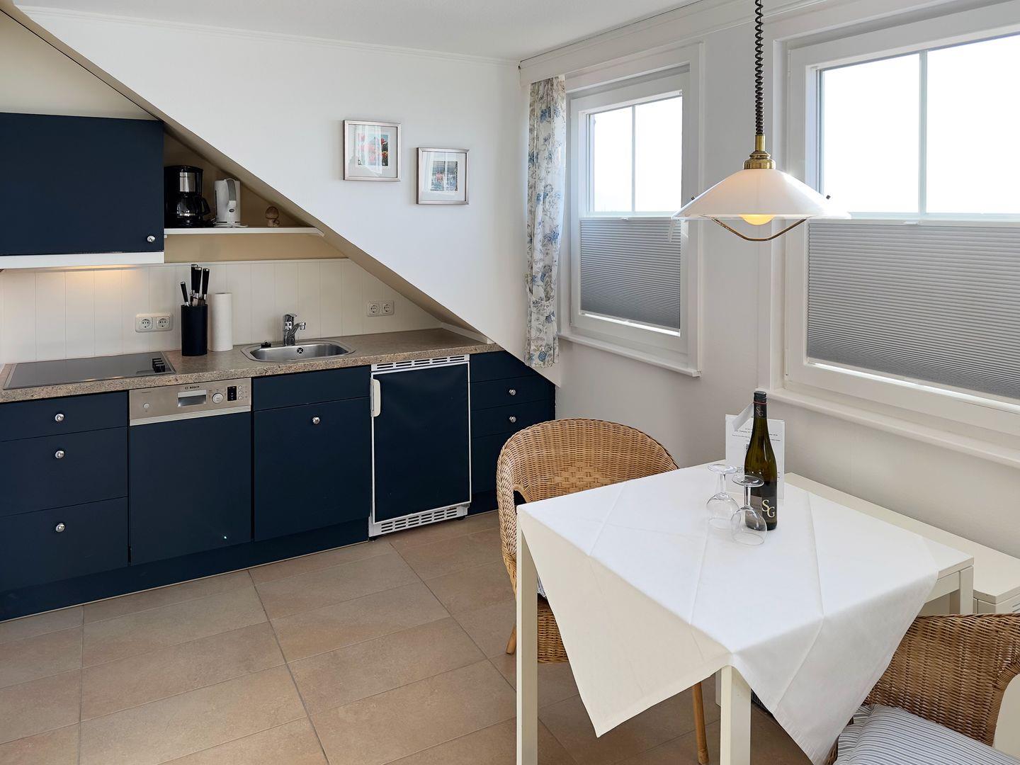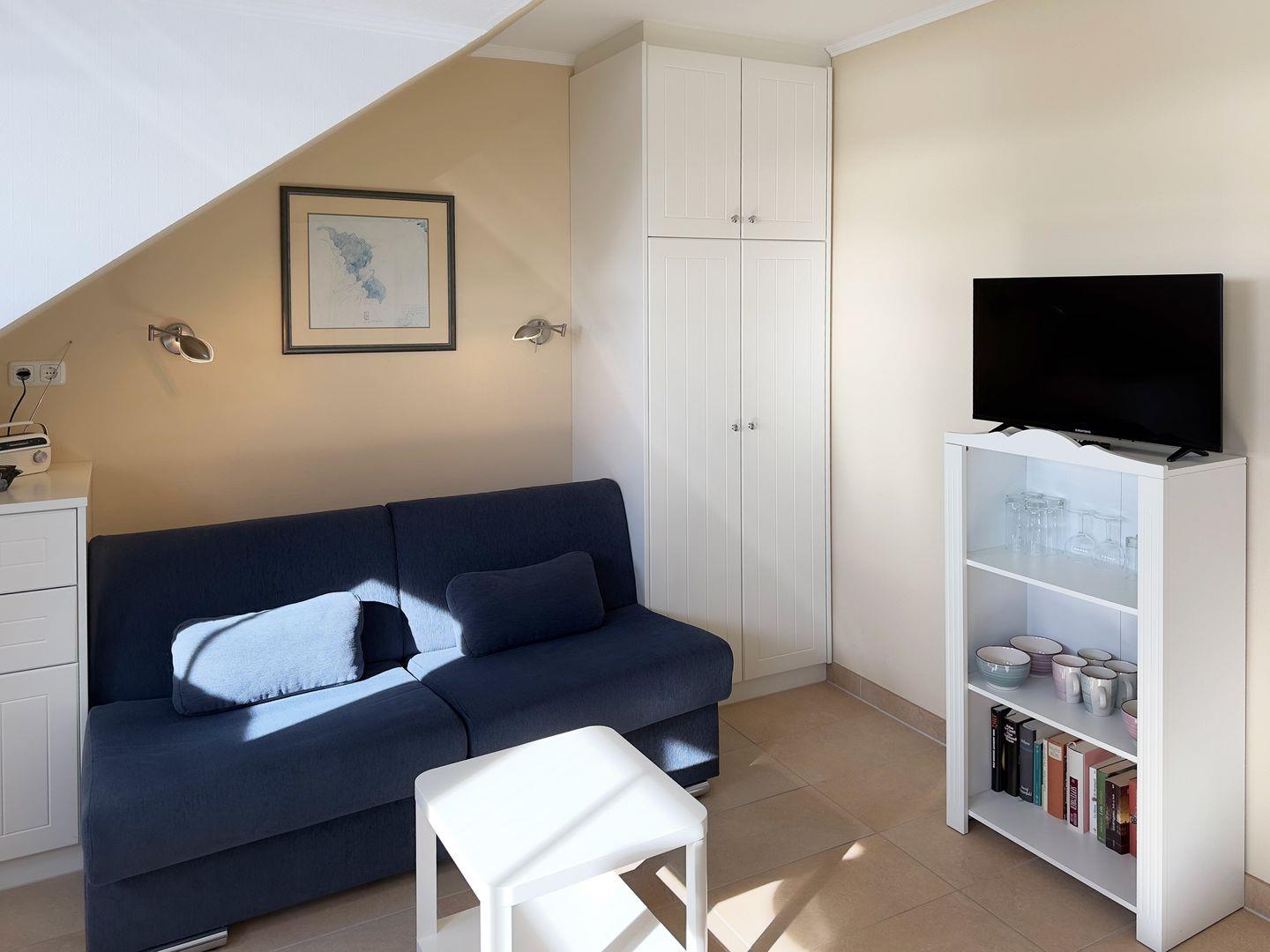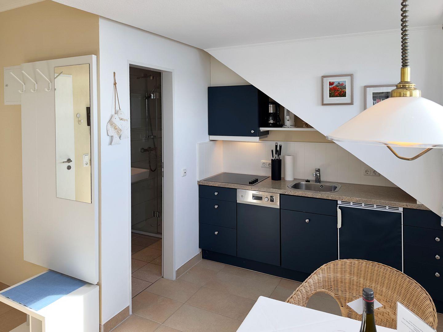 Die Wohnung verfügt über 1 Wohn- /Schlafraum mit Meerblick, WLAN, Sat-TV und offener Küche, 1 Badezimmer mit Dusche und WC; PKW-Stellplatz.