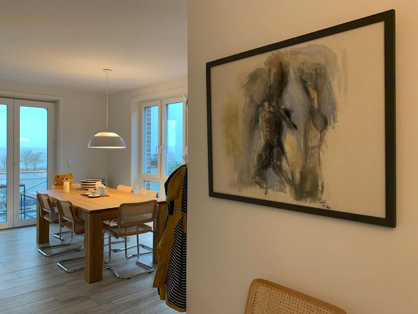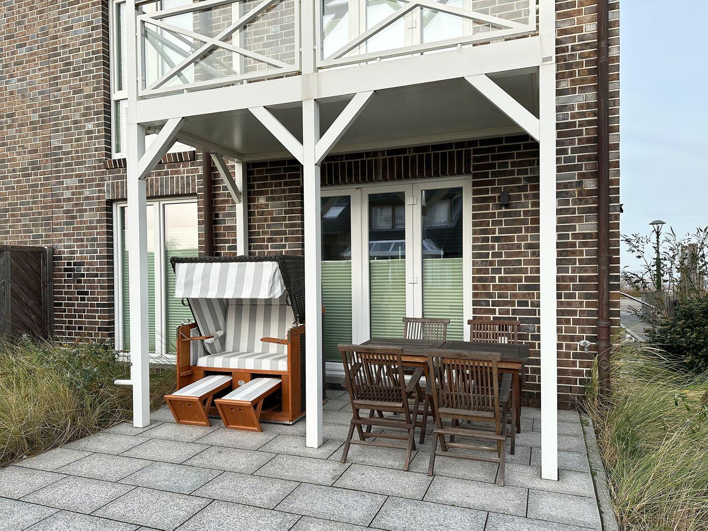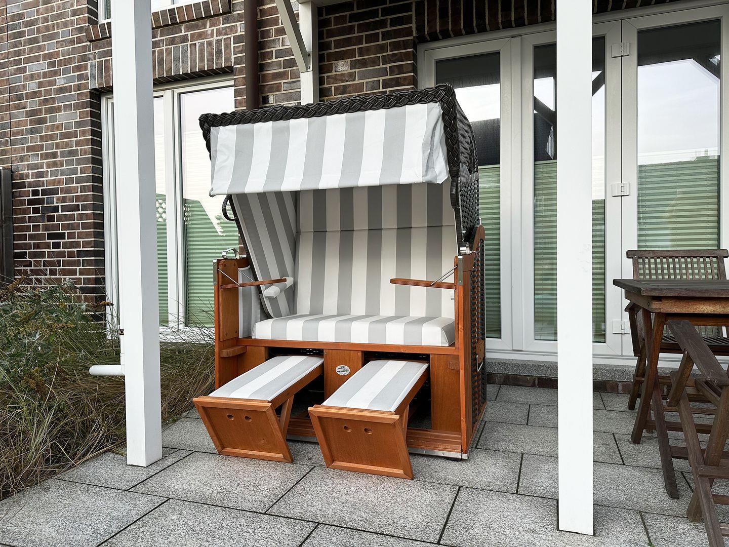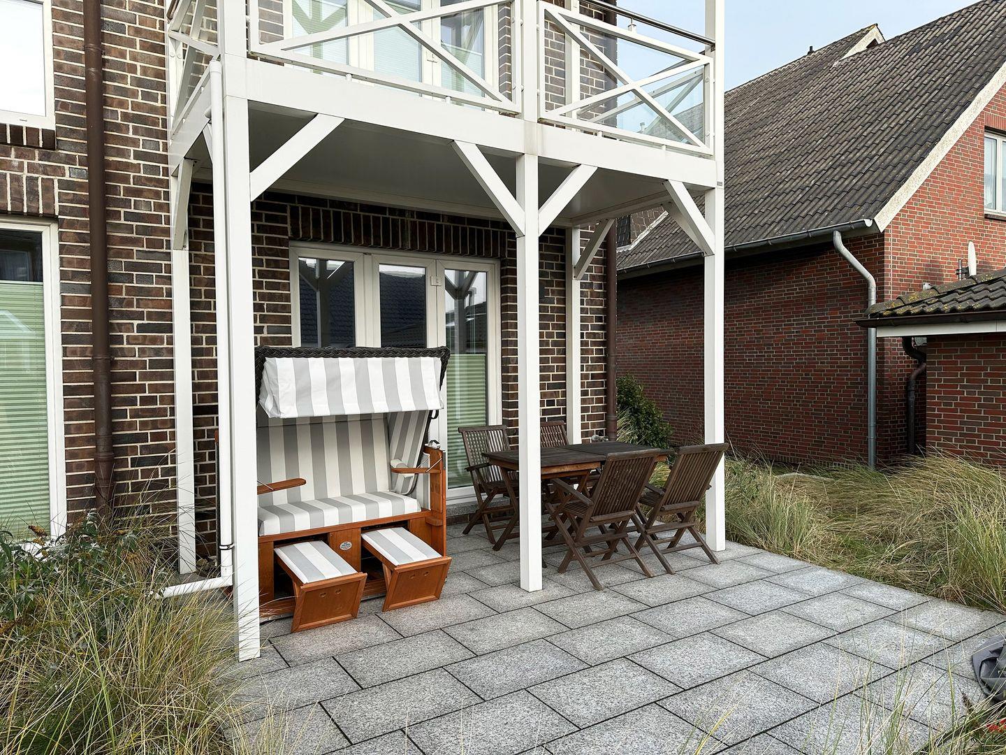 Die Wohnung verfügt über 1 Wohnraum mit WLAN, Sat-TV, Video-on-Demand kostenlos (Netflix, Amazon Prime), Bluetooth-Lautsprecher für Musik über eigenes Smartphone, offene Küche, 2 Schlafzimmer, 1 Badezimmer mit Badewanne und WC, 1 Gäste-WC, Fußbodenheizung in allen Räumen; 1 Süd-Terrasse mit Strandkorb (April-Oktober) vom Wohnzimmer, 1 Nord-Balkon mit Meerblick vom Esszimmer, Balkonmöbel (April – Oktober). Im Keller befinden sich eine Münz-Waschmaschine und ein Münz-Trockner zur Eigennutzung. Eigener PKW-Stellplatz gegenüber des Hauses (Halten am Haus bei An- und Abreise möglich), Abstellmöglichkeit für Fahrräder vor dem Haus. Nur wenige Meter vom Meer entfernt. Kostenfreie Nutzung des Fitnessstudios sowie der Sauna des „Eilun Fit“ in Norddorf.