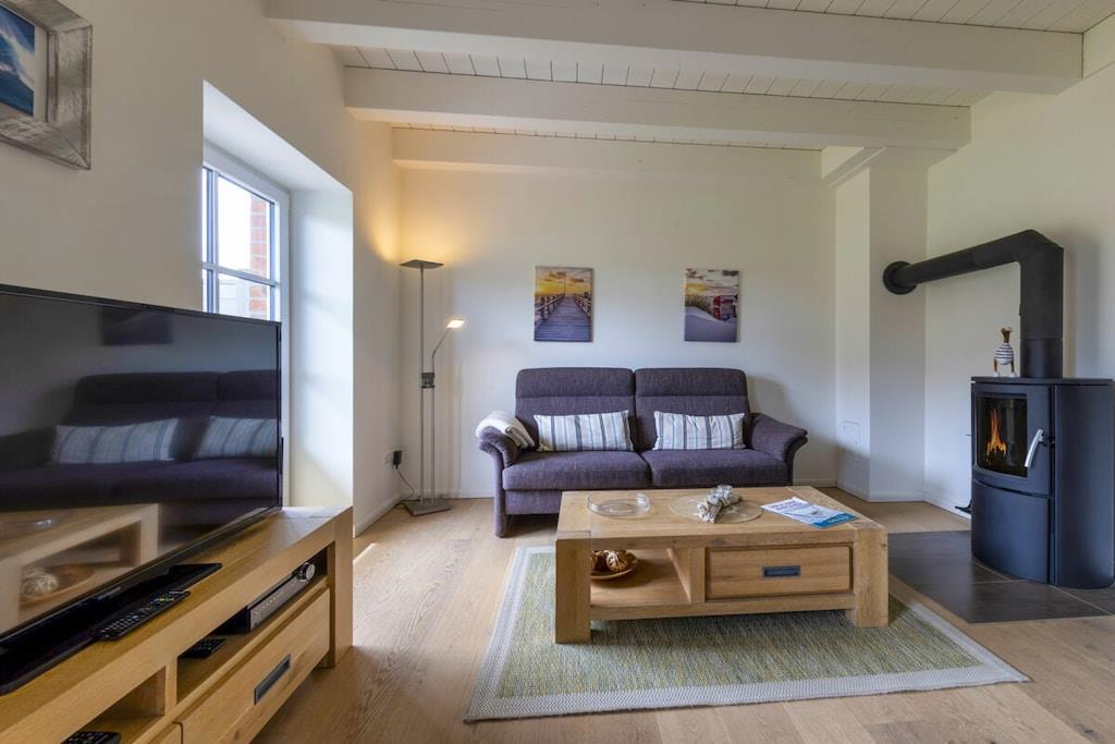 Vores ferielejlighed "Lighthouse" er vores midterste lejlighed i "Wind & Waves"-bygningen. Den har terrasse og balkon, en strandstol, en boxmadras, et andet tv i soveværelset og et gæstetoilet. Det fuldt udstyrede køkken har keramisk kogeplade, ovn, mikrobølgeovn, opvaskemaskine og et højt køleskab med frostboks. Stuen har en hyggelig dansk brændeovn, et stort LCD-tv, en Blu-ray DVD-afspiller, et Sony hi-fi-system og gratis Wi-Fi.