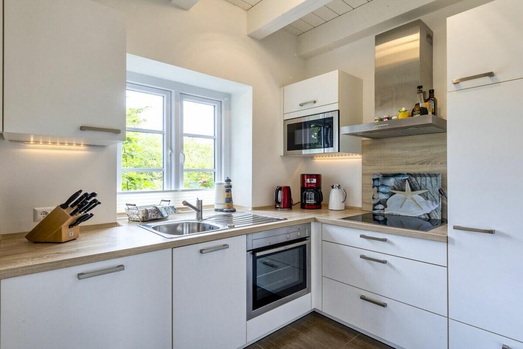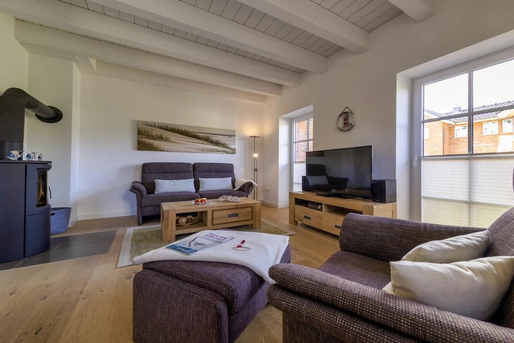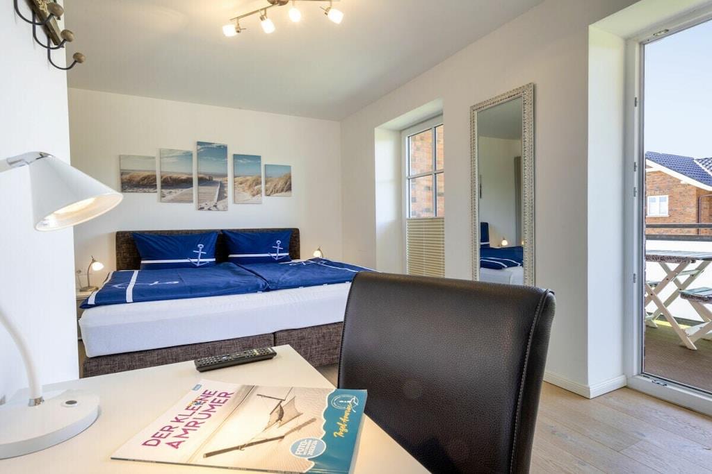 Vores ferielejlighed "Lighthouse" er den yderste lejlighed til højre i "Wind & Waves"-bygningen. Lejligheden har et soveværelse med en boxmadras, TV og adgang til balkonen. Det andet soveværelse er møbleret med to enkeltsenge. Badeværelset har bruser og badekar. Der er også et gæstetoilet i stueetagen. Køkkenet er fuldt udstyret med alt, hvad du behøver til din ferie: ovn, mikrobølgeovn, opvaskemaskine, køleskab med frostboks, SodaStream osv. Stuen har en hyggelig brændeovn, et stort LCD-TV, Blu-ray DVD-afspiller og Sony hi-fi-system. Gratis Wi-Fi og adgang til terrasse med havemøbler, strandstol og liggestol er også tilgængelig. Hunde er velkomne. Til vores yngre gæster er der en legeplads samt trampolin, basketballkurv og gokarts.