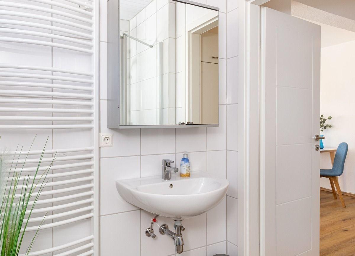 Die Ferienwohnung bietet eine komfortable und moderne Ausstattung, die jeden Aufenthalt zu einem angenehmen Erlebnis macht. Die helle Küchenzeile ist mit Geschirrspüler, Backofen, Mikrowelle, Kaffeemaschine und Toaster ausgestattet, sodass Selbstversorger ideale Voraussetzungen finden. Im Schlafzimmer befindet sich ein gemütliches Doppelbett, das für erholsame Nächte sorgt. Das Badezimmer ist mit einer Dusche ausgestattet und überzeugt durch Funktionalität. Für zusätzlichen Komfort stehen eine Waschmaschine und ein Wäschetrockner zur Verfügung. Ein eigener Parkplatz ist ebenfalls vorhanden und rundet das Angebot ab. Diese Ferienwohnung ist der perfekte Rückzugsort für entspannte Tage und bietet alles, was man für einen gelungenen Aufenthalt benötigt.