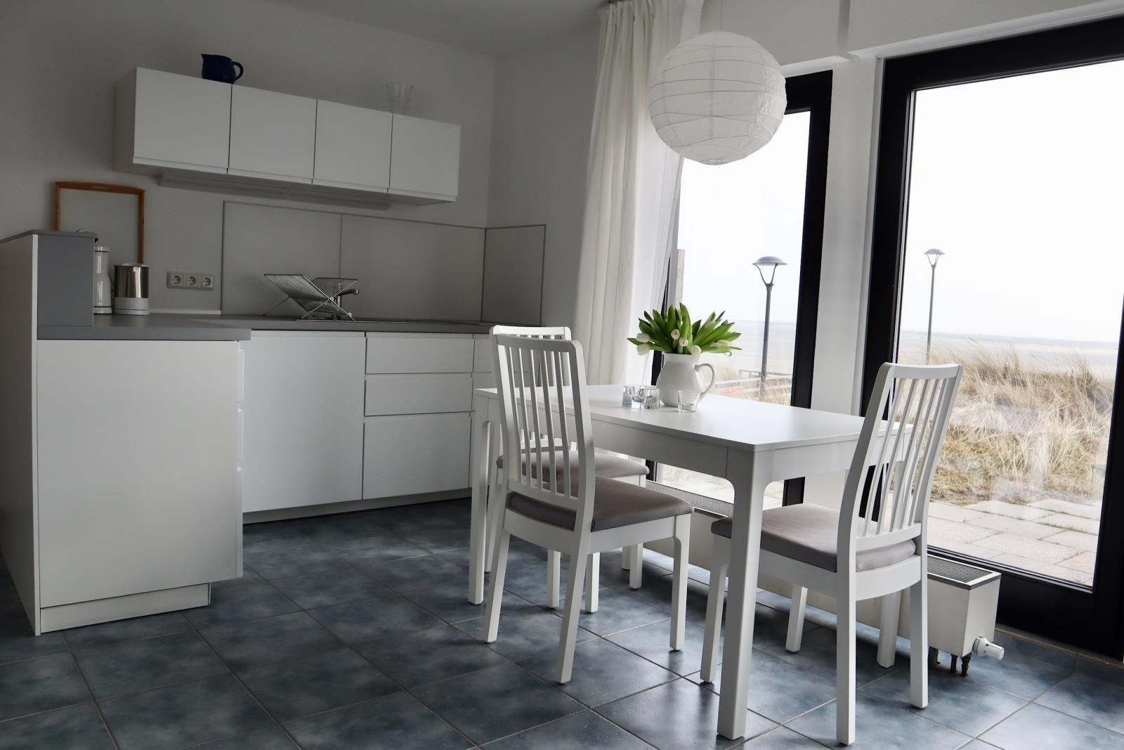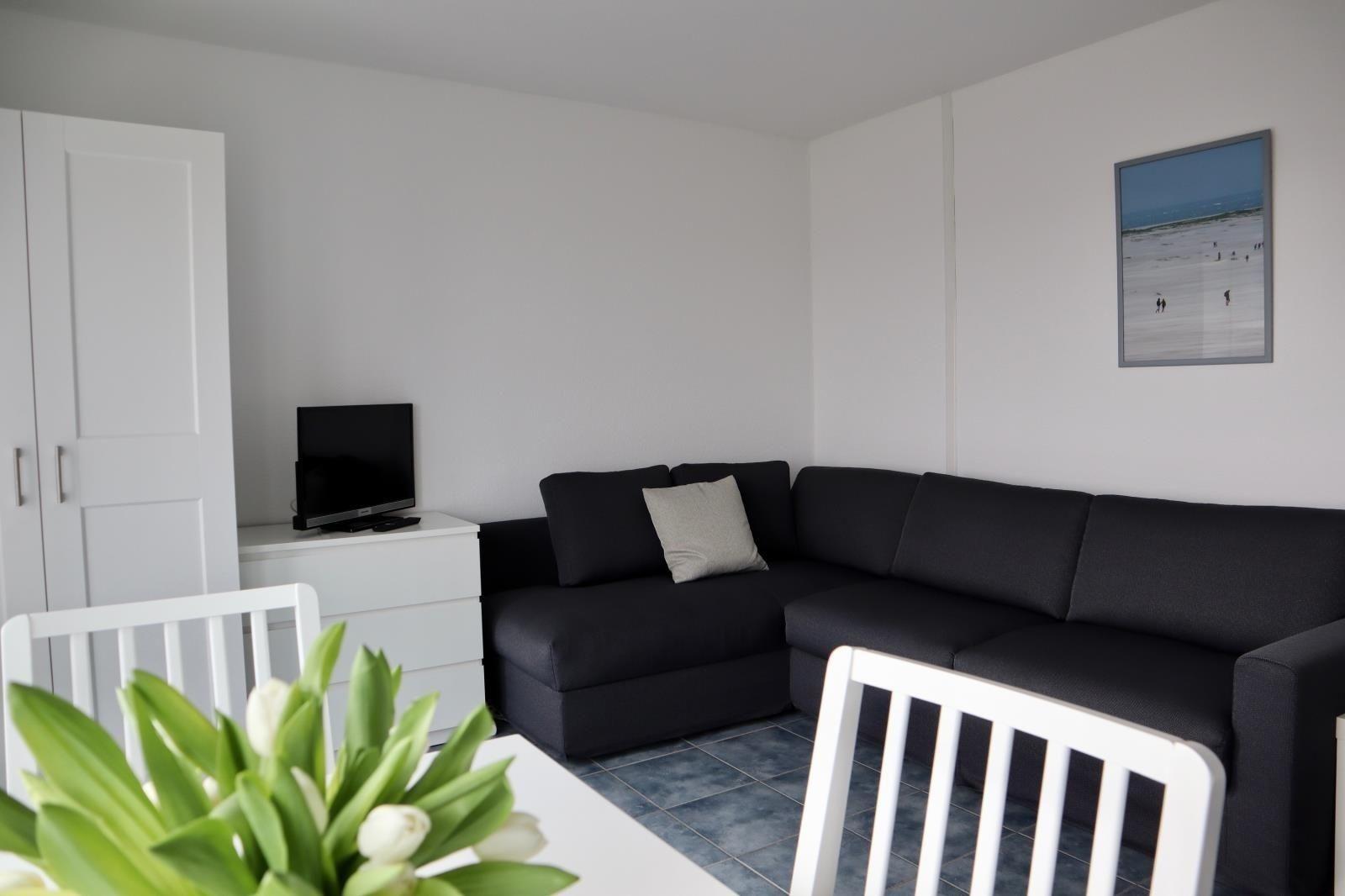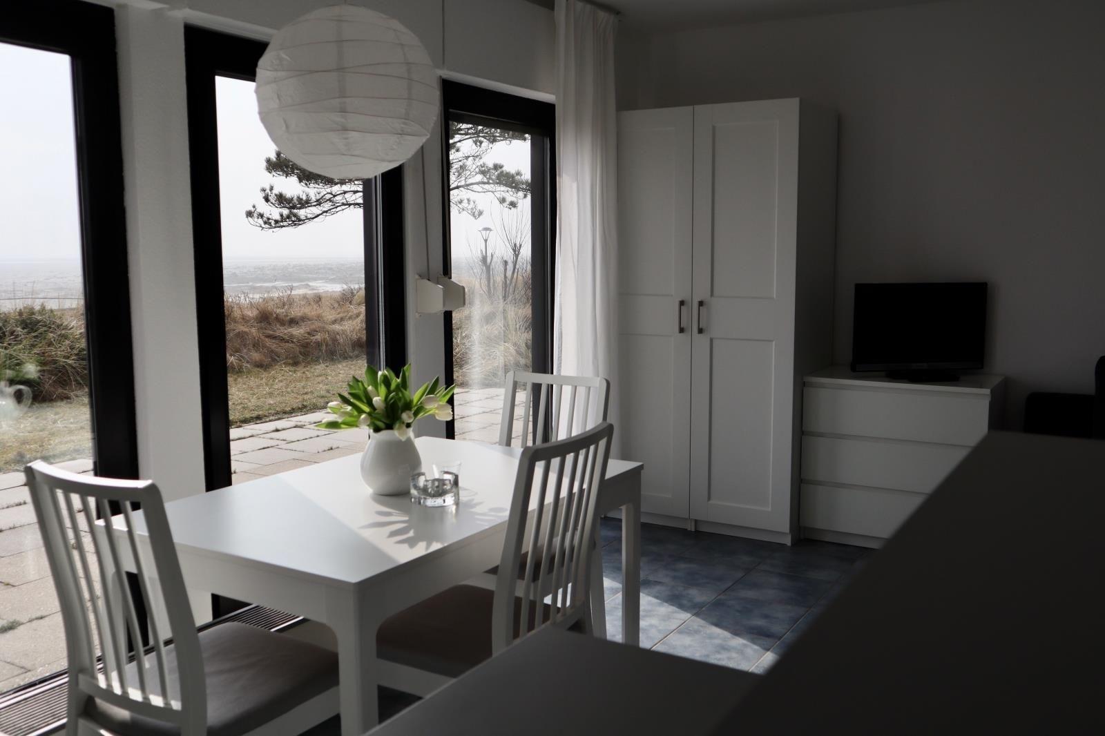 Diese im Parterre des Hauses gelegene Ferienwohnung bietet ein Wohn-Schlafzimmer mit Kochnische, sowie direktem Zugang auf die Südterrasse von der man einen uneingeschränkten Blick auf den "Kniepsand" geniesst.