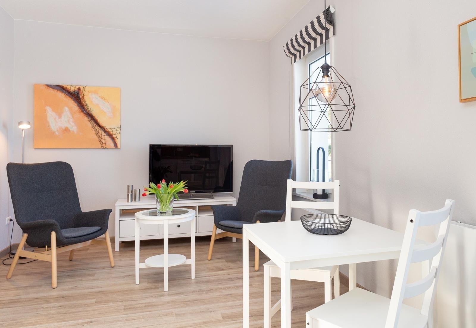 Die Anfang 2021 komplett renovierte Wohnung Ille ist moder eingerichtet .