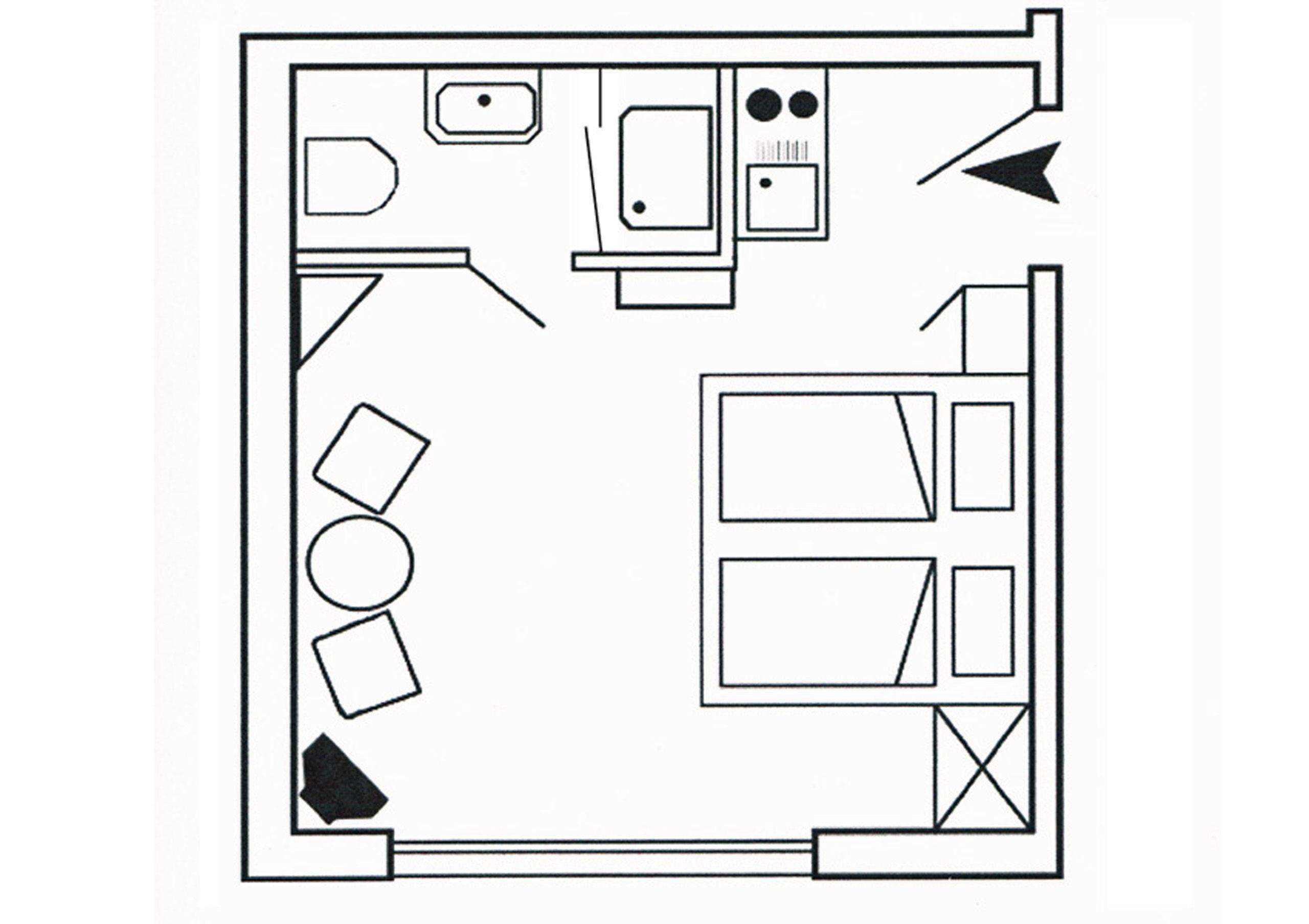 Die ca. 20m² große Nichtraucher-Wohnung bietet Platz für ein bis zwei Personen. Sie liegt im Erdgeschoss und ist mit Sat-TV/Radio und integrierter Küche sowie Dusche und WC ausgestattet.
