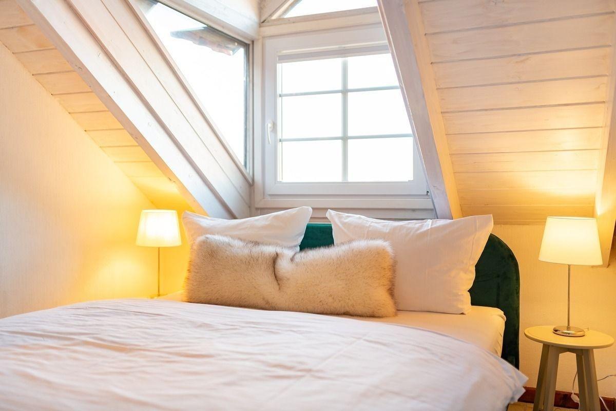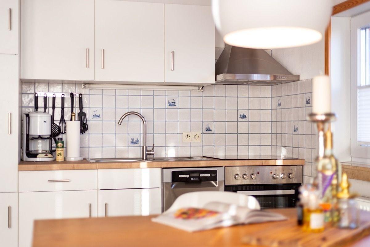 Die Ferienwohnung bietet einen komfortablen Rückzugsort mit modernem Ambiente. Sie verfügt über ein gemütliches Schlafzimmer mit einem Doppelbett, das eine erholsame Nachtruhe gewährleistet. Die offene Küchenzeile ist bestens ausgestattet mit einem Elektro-/Gasherd, Backofen, Mikrowelle, Kühlschrank, Geschirrspüler sowie einer Kaffeemaschine und einem Toaster, was die Zubereitung von Mahlzeiten erleichtert. In der Wohnung gibt es zudem eine Gefriermöglichkeit.