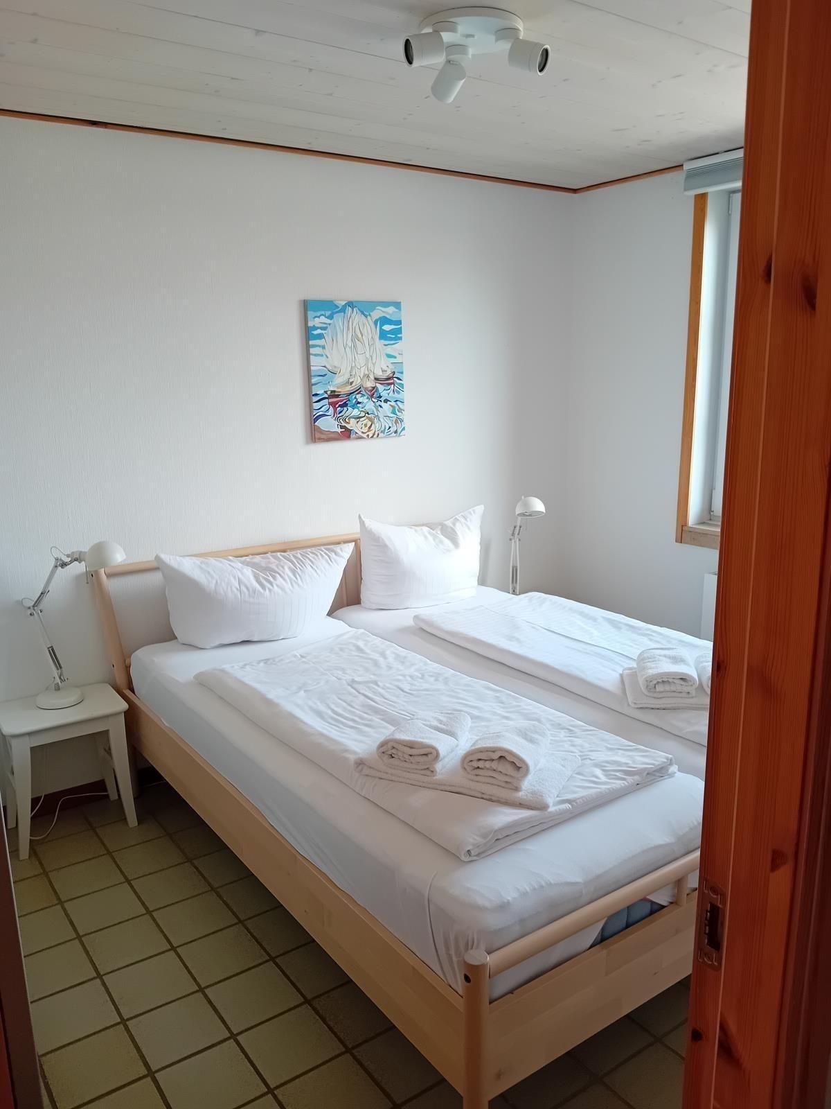 Die Ferienwohnung bietet einen komfortablen Rückzugsort für erholsame Tage. Mit einem geschmackvoll eingerichteten Schlafzimmer, das mit einem gemütlichen Doppelbett ausgestattet ist, lädt sie zum Entspannen ein. Die moderne Küchenzeile überzeugt durch zahlreiche Annehmlichkeiten, darunter ein Geschirrspüler, ein Elektro-/Gasherd, ein Backofen und ein Kühlschrank. Eine Kaffeemaschine sorgt für den perfekten Kaffeegenuss am Morgen.