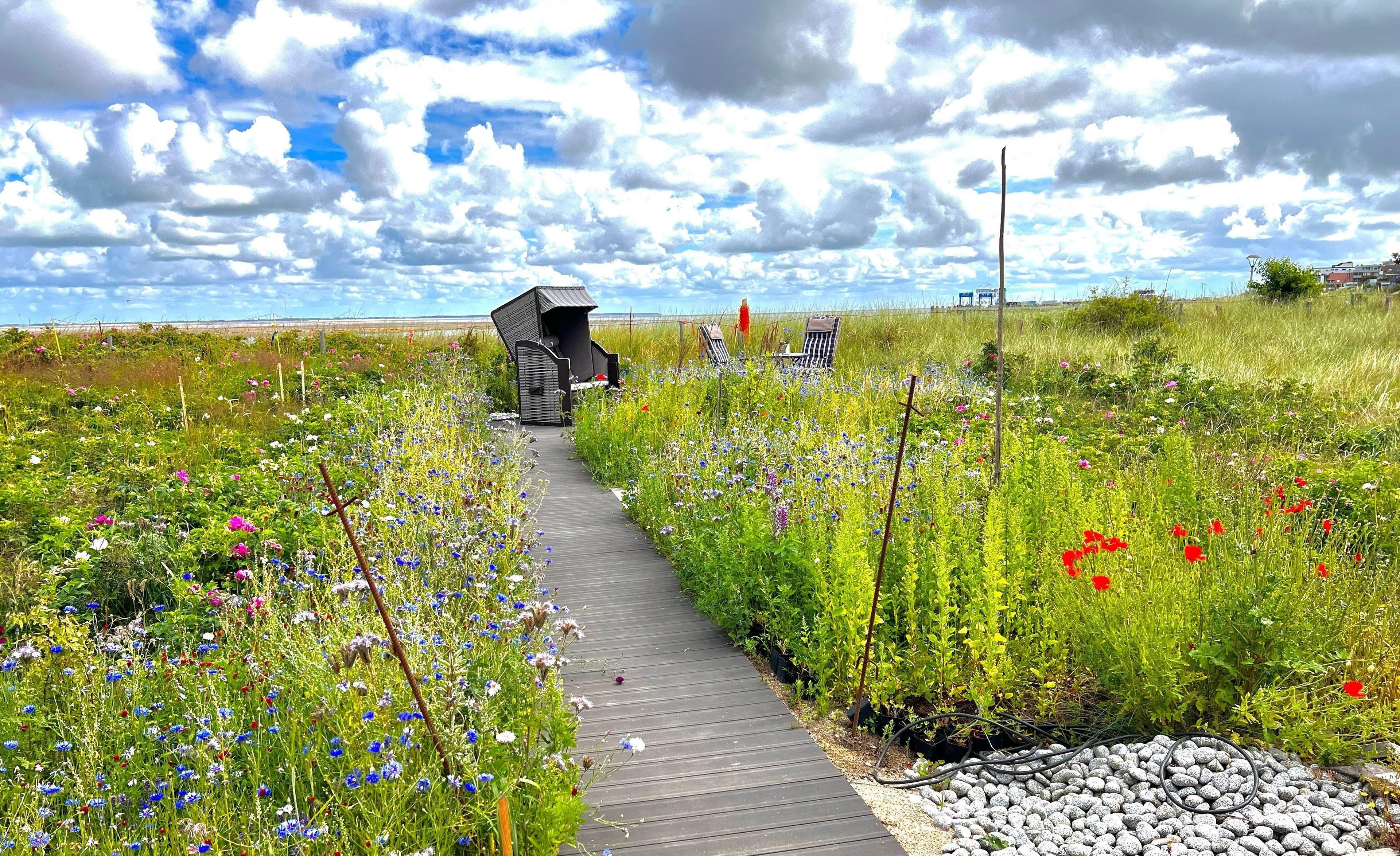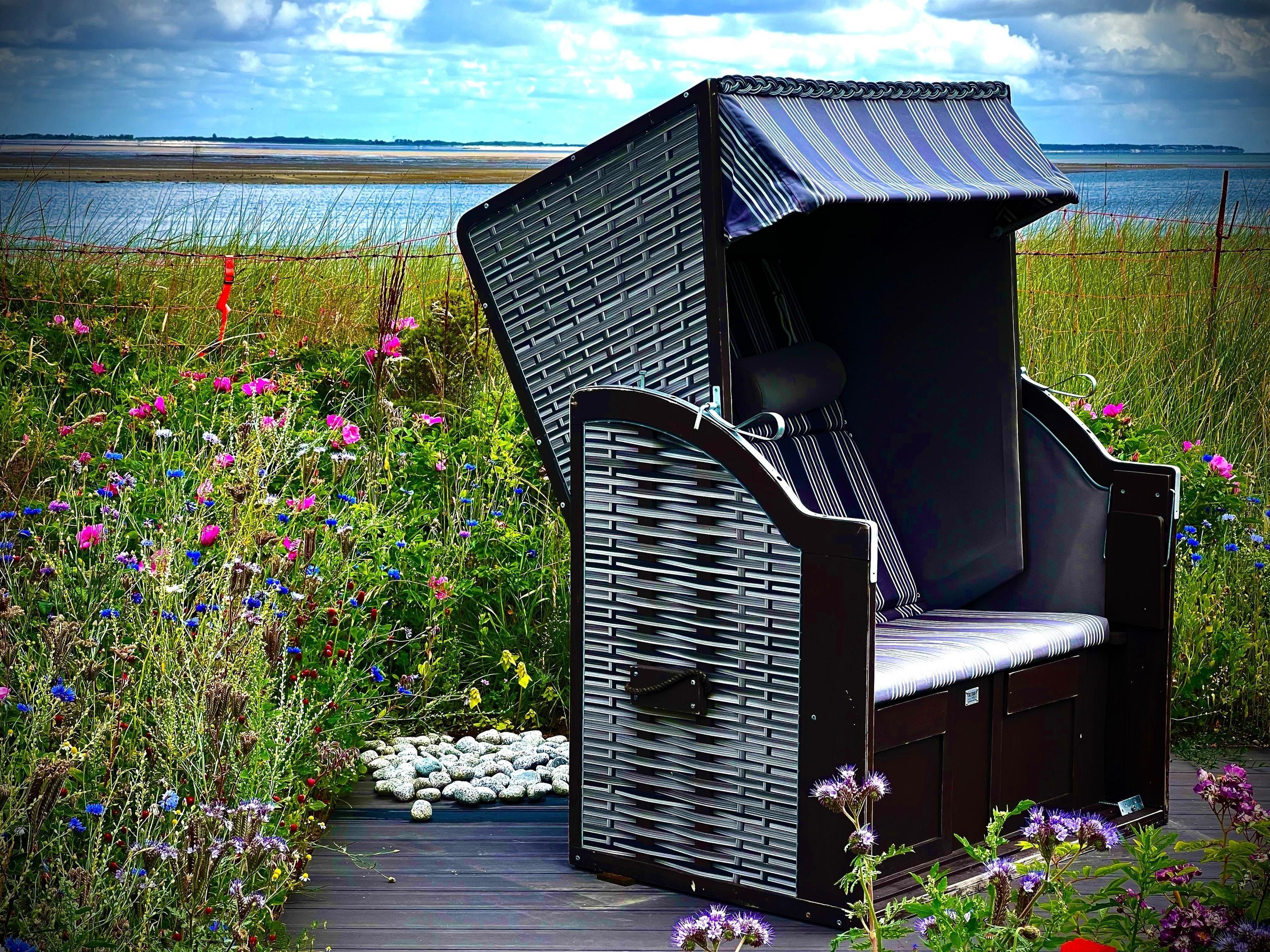 Auf der großen Terrasse befinden sich Gartenmöbel. Ebenfalls gibt es einen Garten mit Blumenwiese, Syltrosen, Strandhafer und traumhaften Meer- und Wattblick, in dem sich noch eine Terrasse mit einem ,Strandkorb befindet. 1 Stellplatz für den PKW ist vorhanden