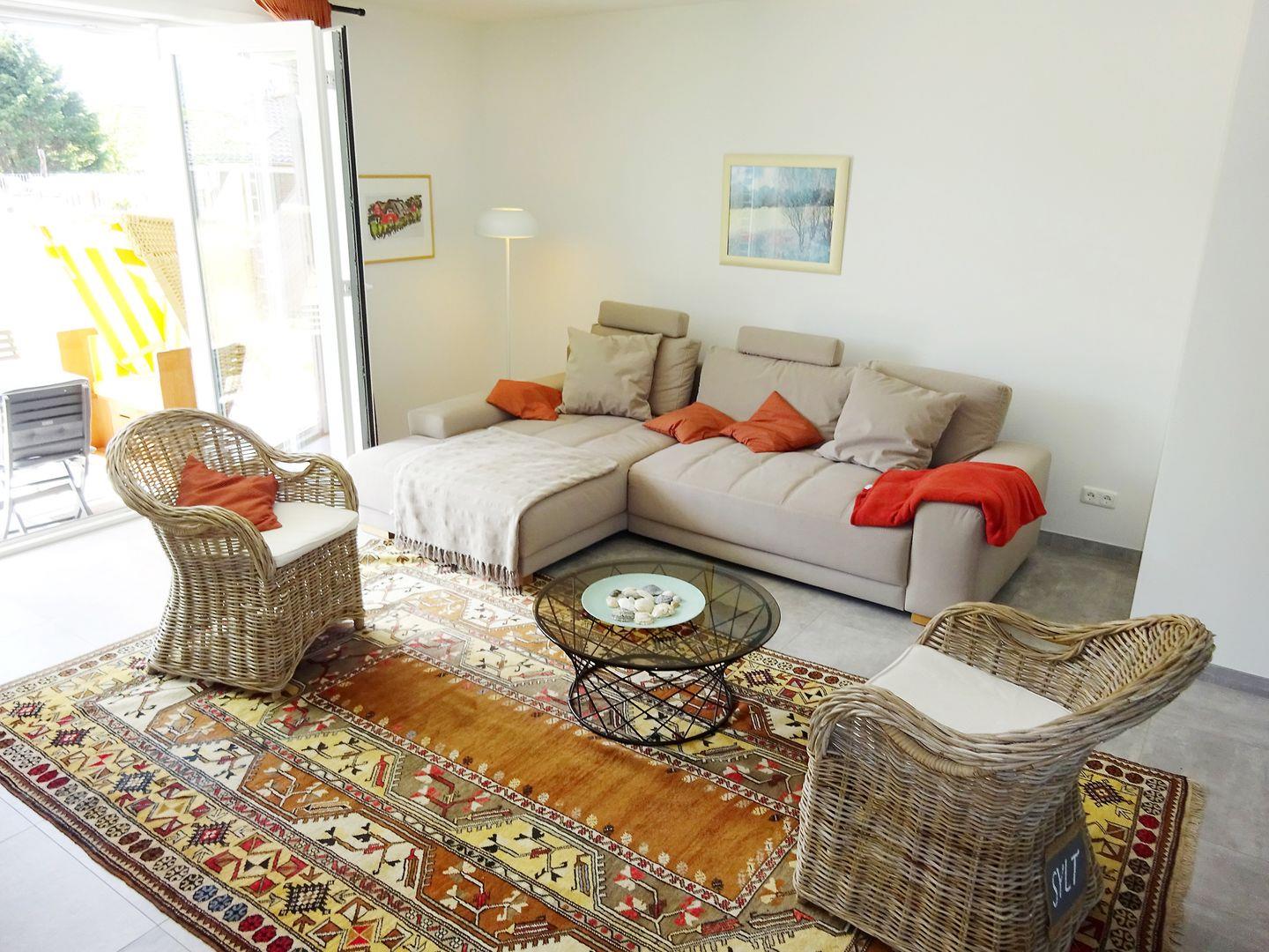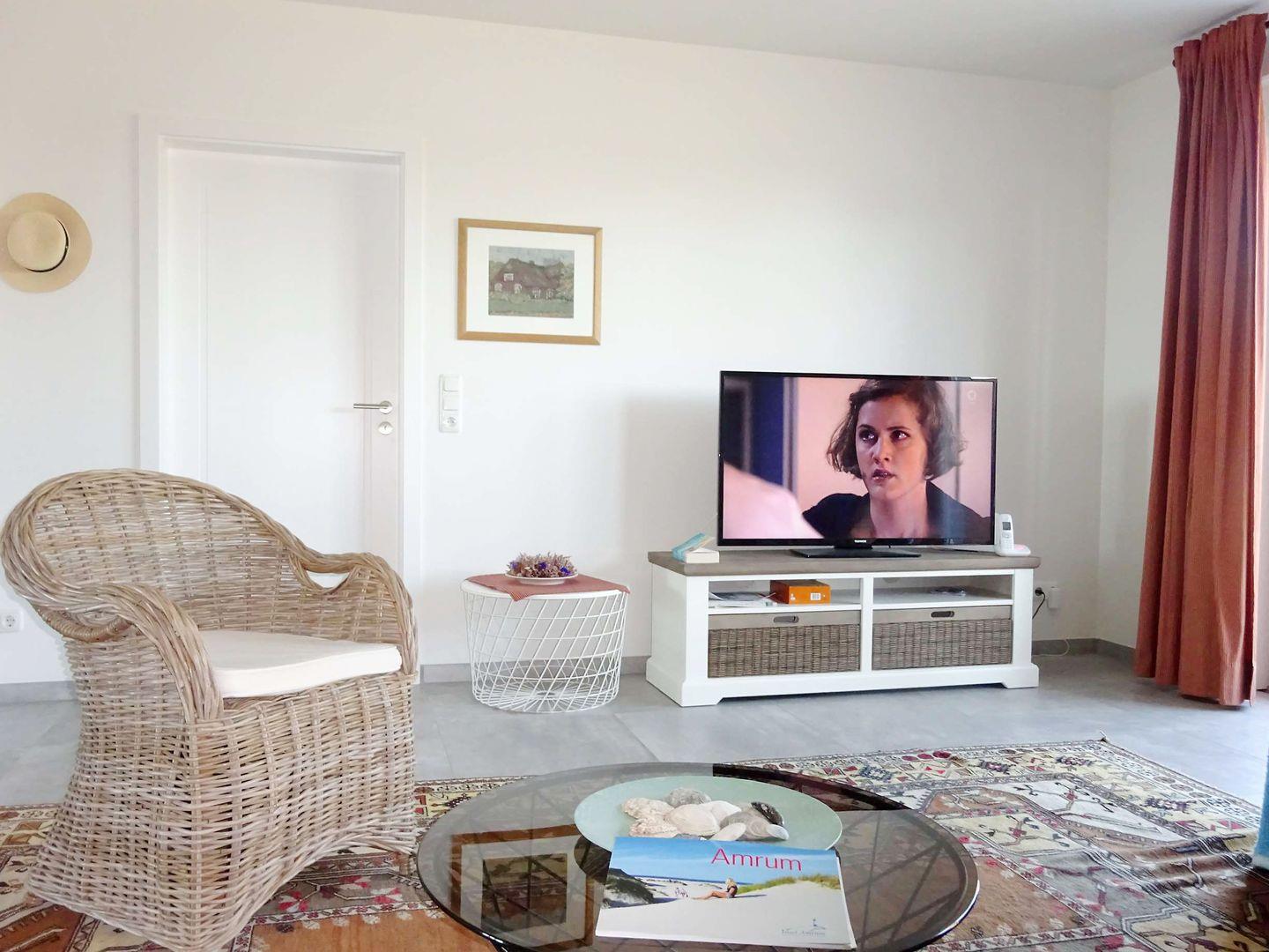 Die Ferienwohnung *Weiße Düne 4* im Erdgeschoss des Hauses *Weiße Düne* in Wittdün auf Amrum ist eine 3-Zimmer-Ferienwohnung (ca. 93 qm Grundfläche) mit Schlafmöglichkeiten für 2 bis 4 Personen. Die Ferienwohnung ist behindertenfreundlich, da das Haus über eine Rampe erreichbar und ein Aufzug zur Wohnung vorhanden ist.