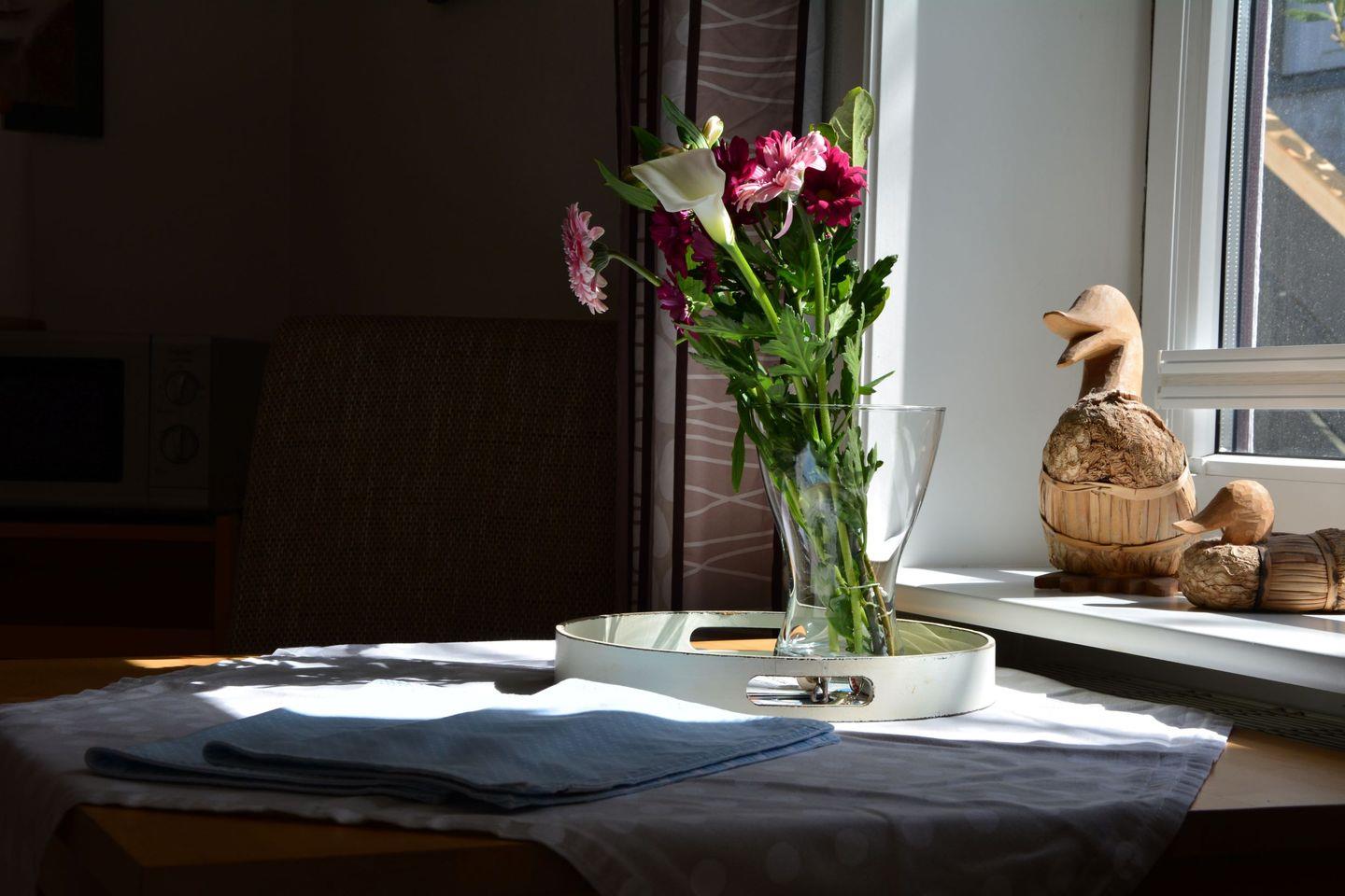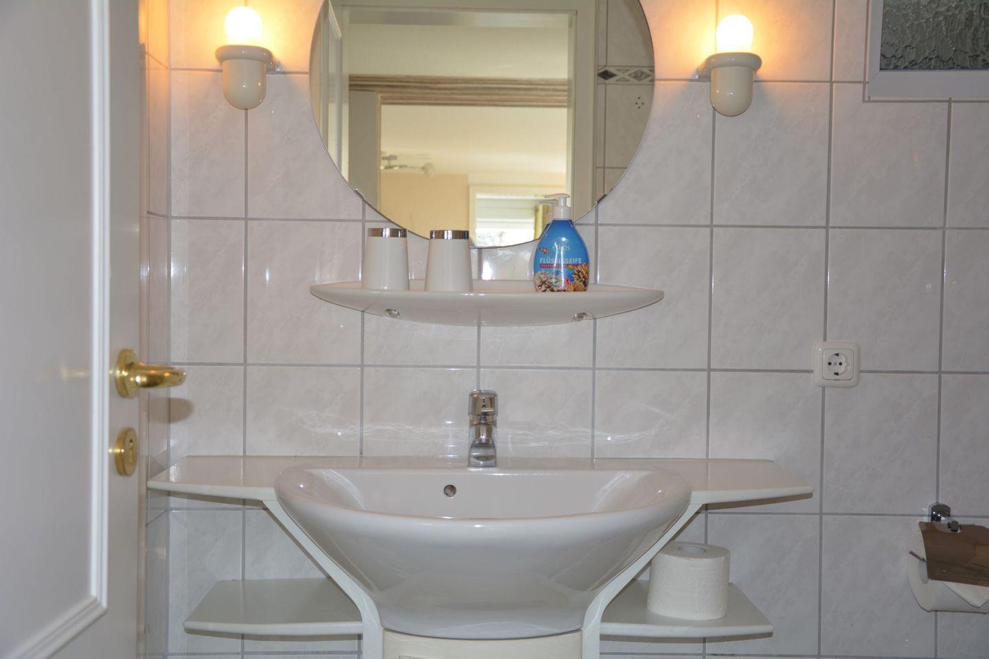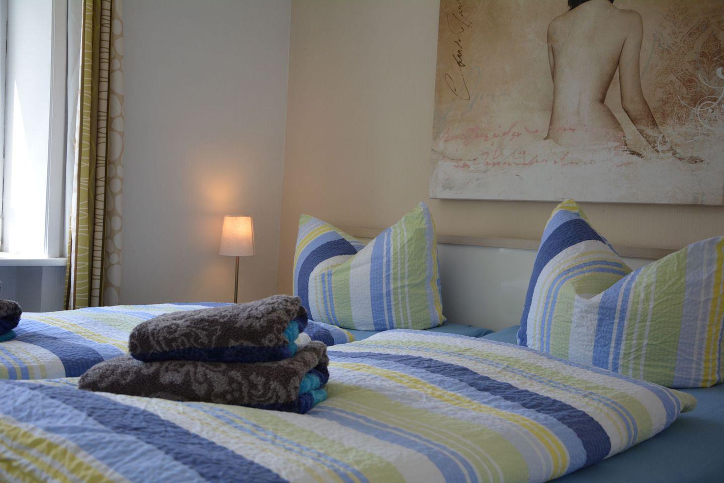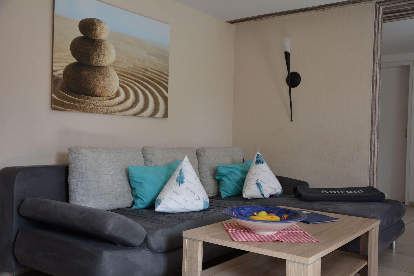 Die Ferienwohnung ist komplett renoviert, hochwertig, modern, hell und komfortabel eingerichtet. Sie betreten die Wohnung über den vorgelagerten Sküll. Alle Zimmer sind mit einem hochwertigen Fliesenboden zum Teil mit eingearbeitetem Mosaik ausgestattet. Hochwertige Möbel mit Markengeräten in Wohnzimmer und Küche ergänzen die Ausstattung.. In einem kleinen Abstellraum finden ihre Koffer Platz. Vom Schlafzimmer haben sie direkten Blick auf ihre eigene Terrasse.