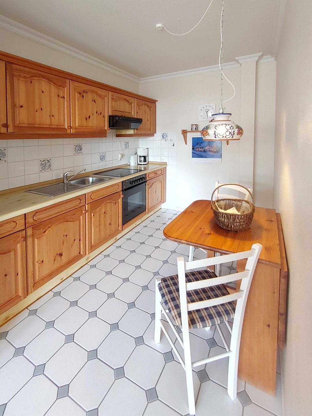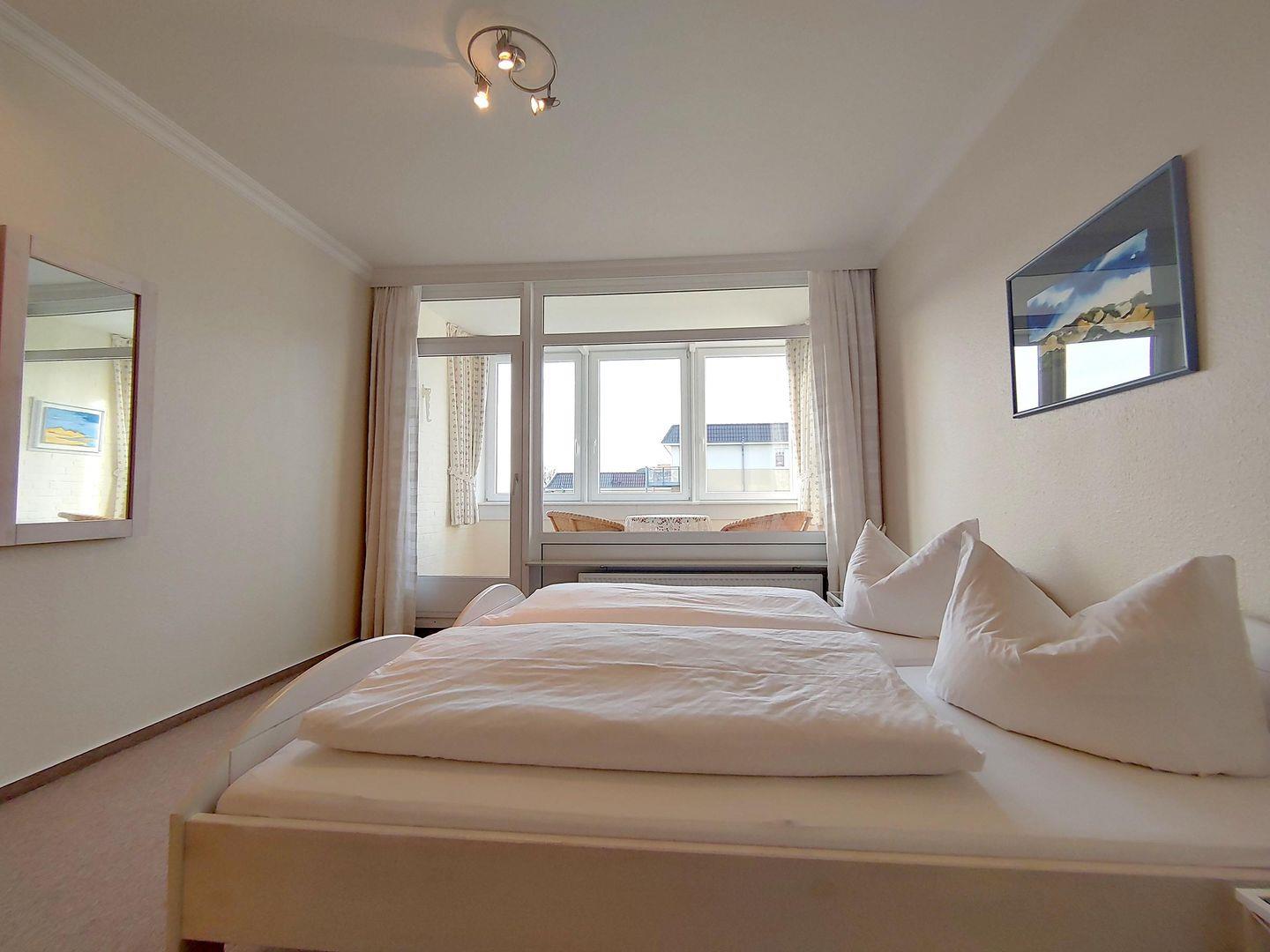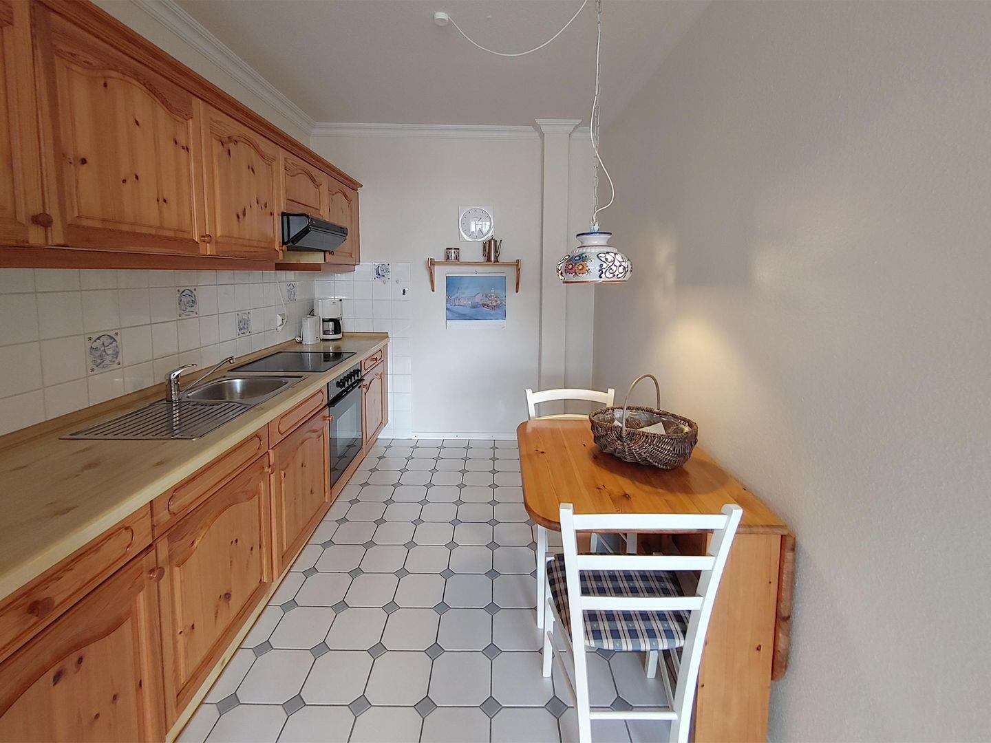 Die Wohnung verfügt über 1 Wohnraum mit Sat-TV und offener Küche, 1 Schlafzimmer, 1 Badezimmer mit Dusche und WC; geschlossener West-Balkon mit Blick zum Amrumer Yachthafen.