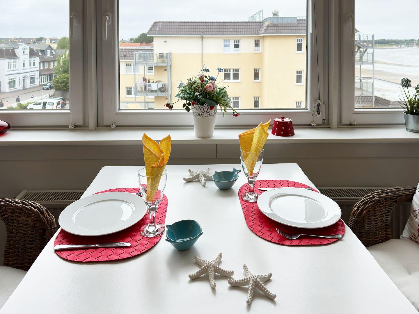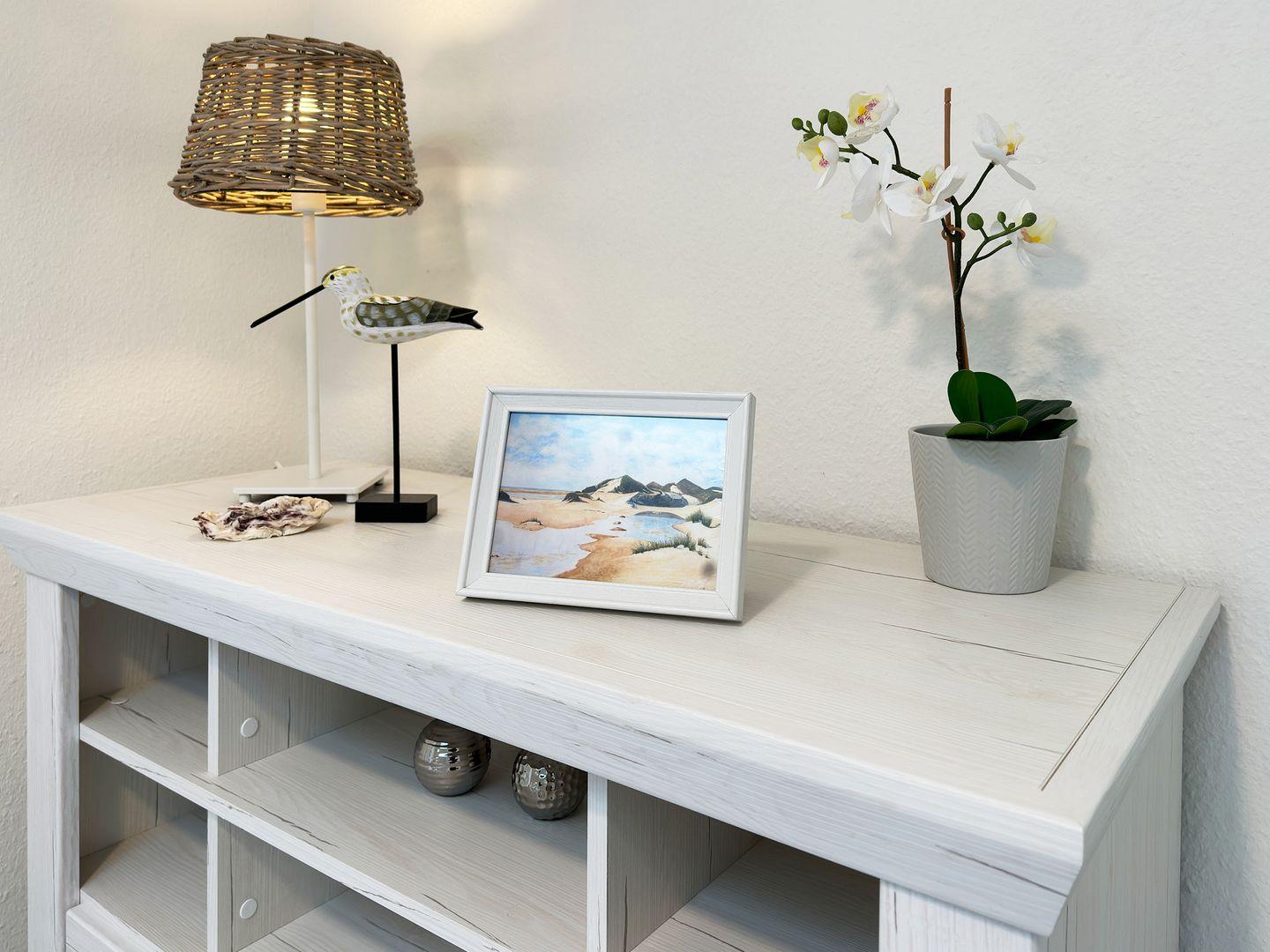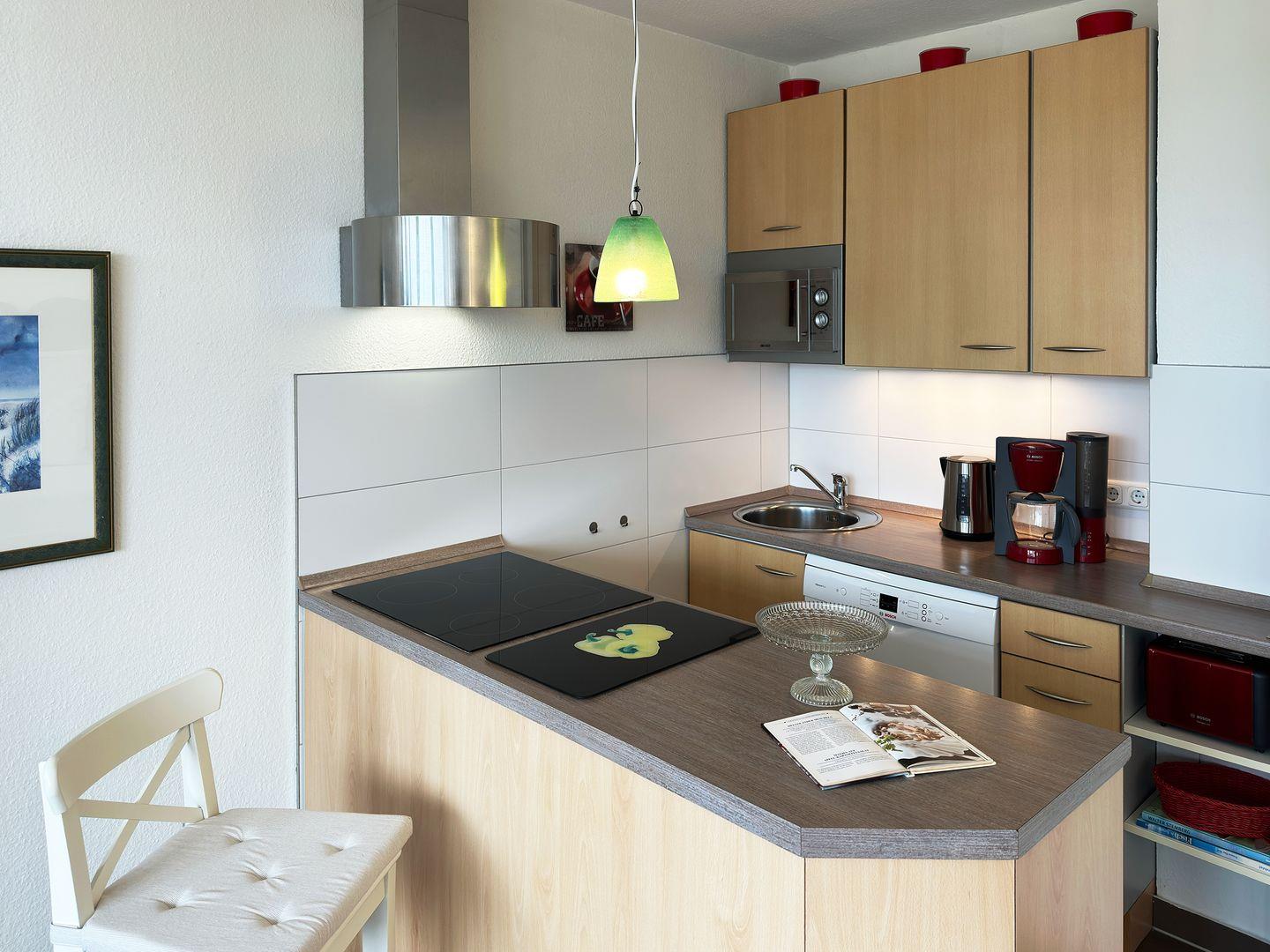 Die Wohnung verfügt über 1 Wohnraum mit Sat-TV und offener Küche, 1 Schlafzimmer, 1 Badezimmer mit Dusche und WC, seitlicher Blick zum Wattenmeer und dem Yachthafen.