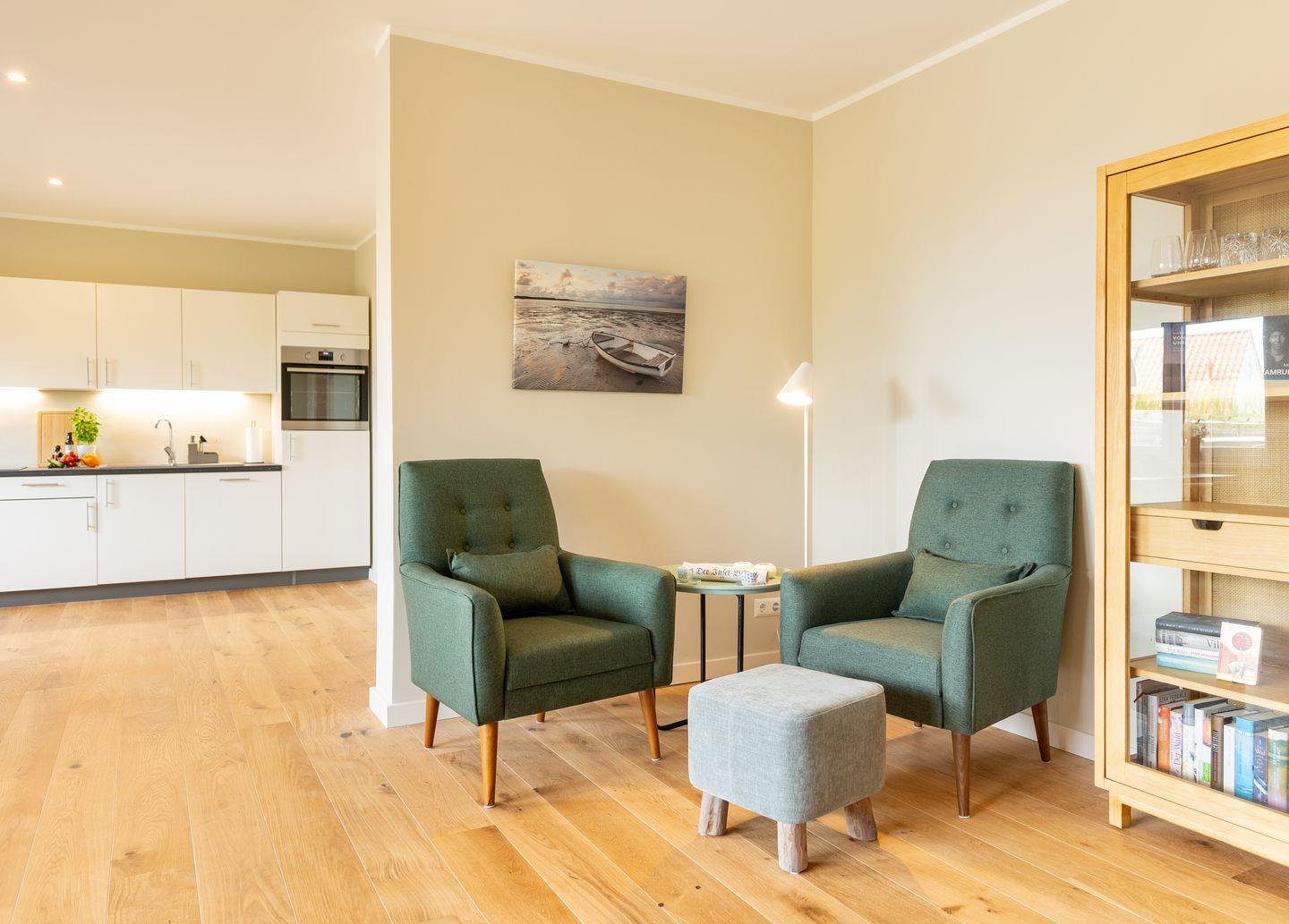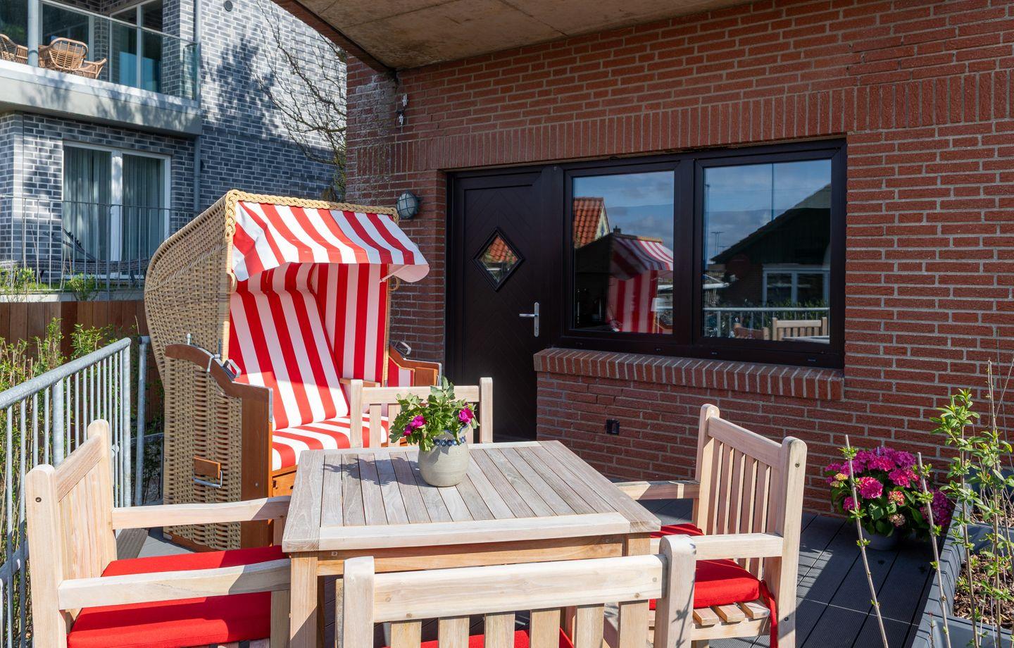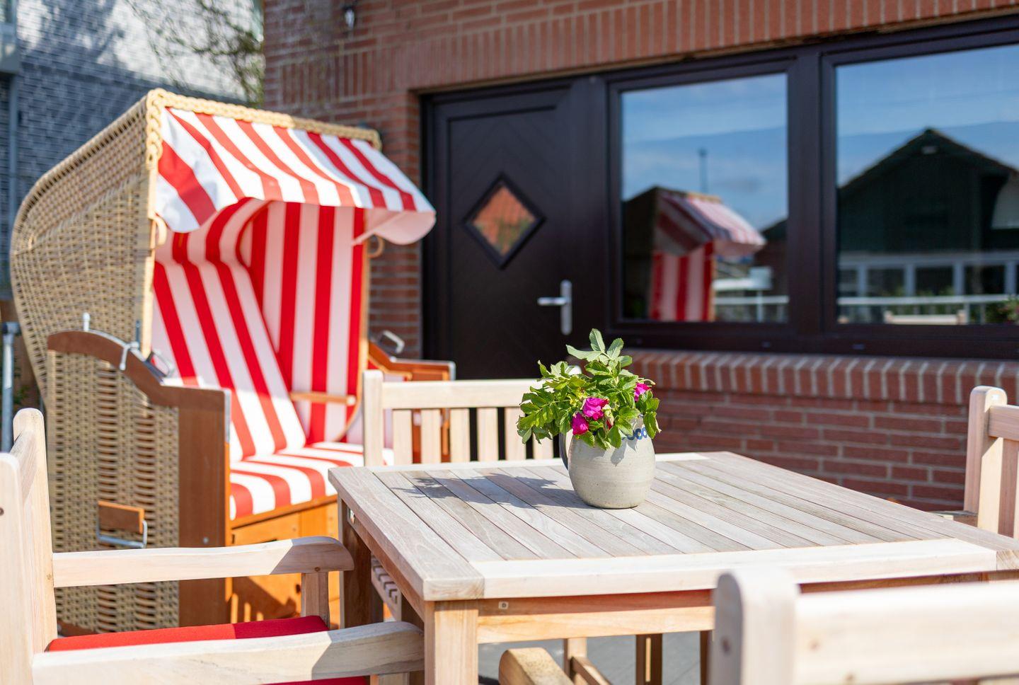 Die Wohnung 1 liegt im Erdgeschoss im Ferienhaus Jungnamen Sand und zeigt Richtung Nordosten. Es finden 4 Personen auf 100 qm geschmackvoll eingerichteter Wohnfläche genügend Platz.