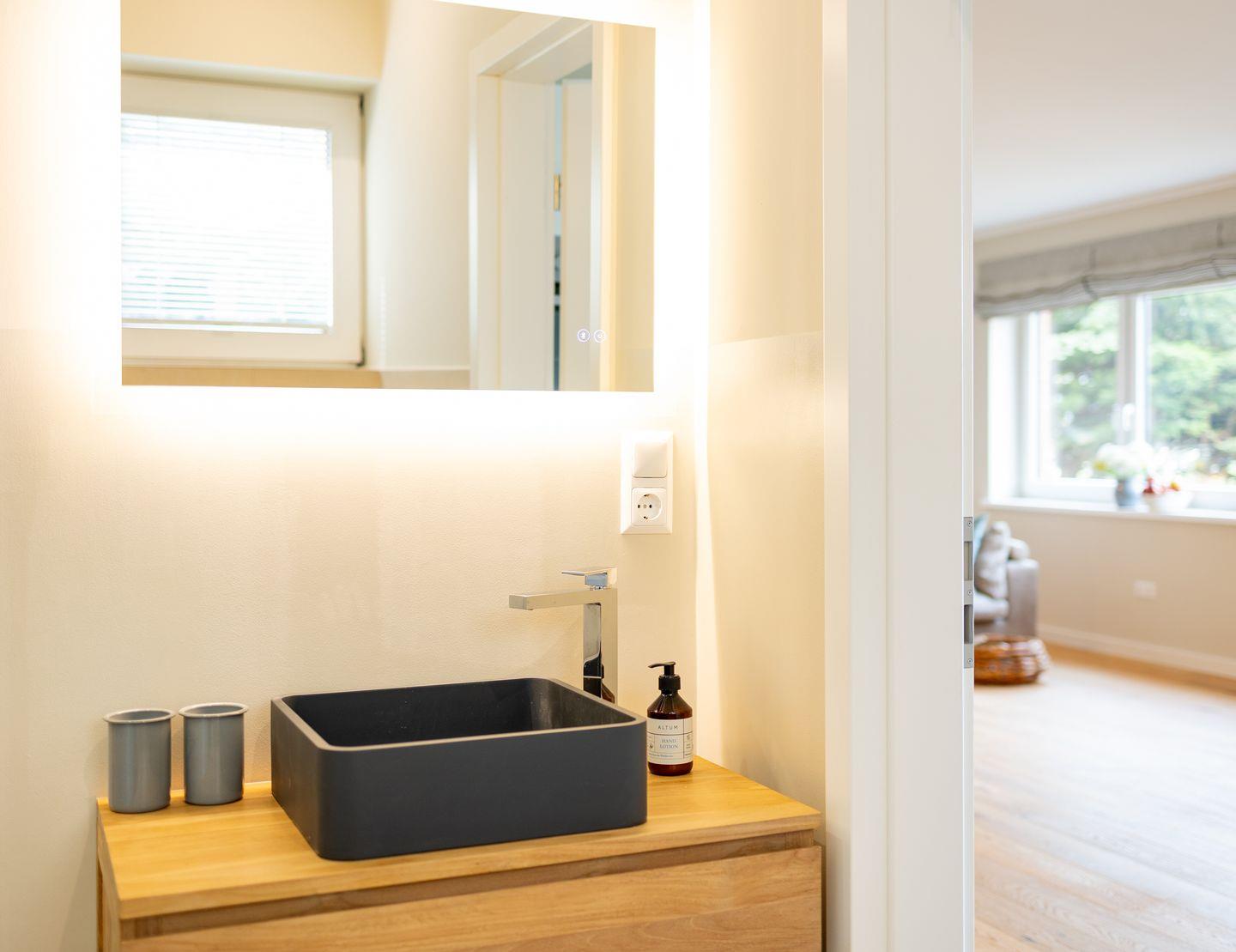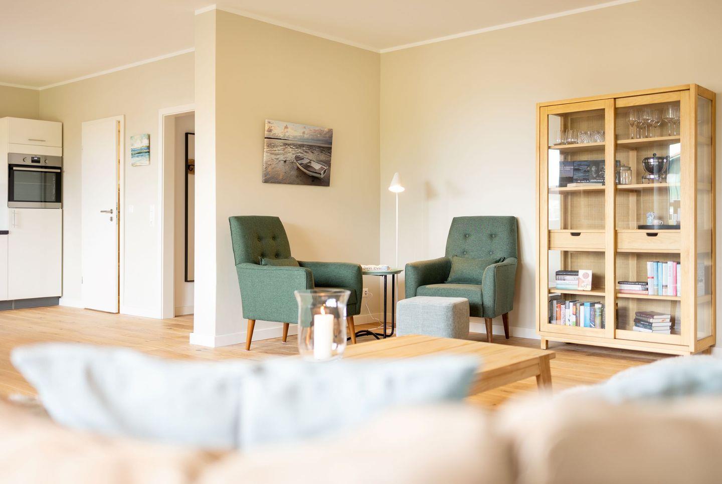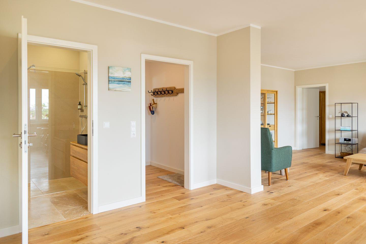 Die Wohnung 1 liegt im Erdgeschoss im Ferienhaus Jungnamen Sand und zeigt Richtung Nordosten. Es finden 4 Personen auf 100 qm geschmackvoll eingerichteter Wohnfläche genügend Platz.