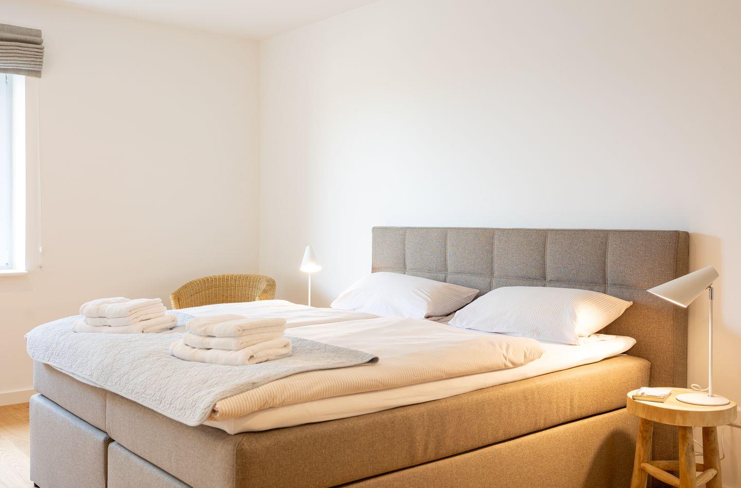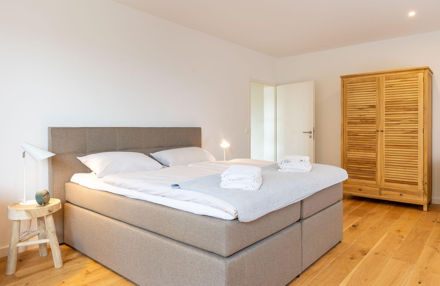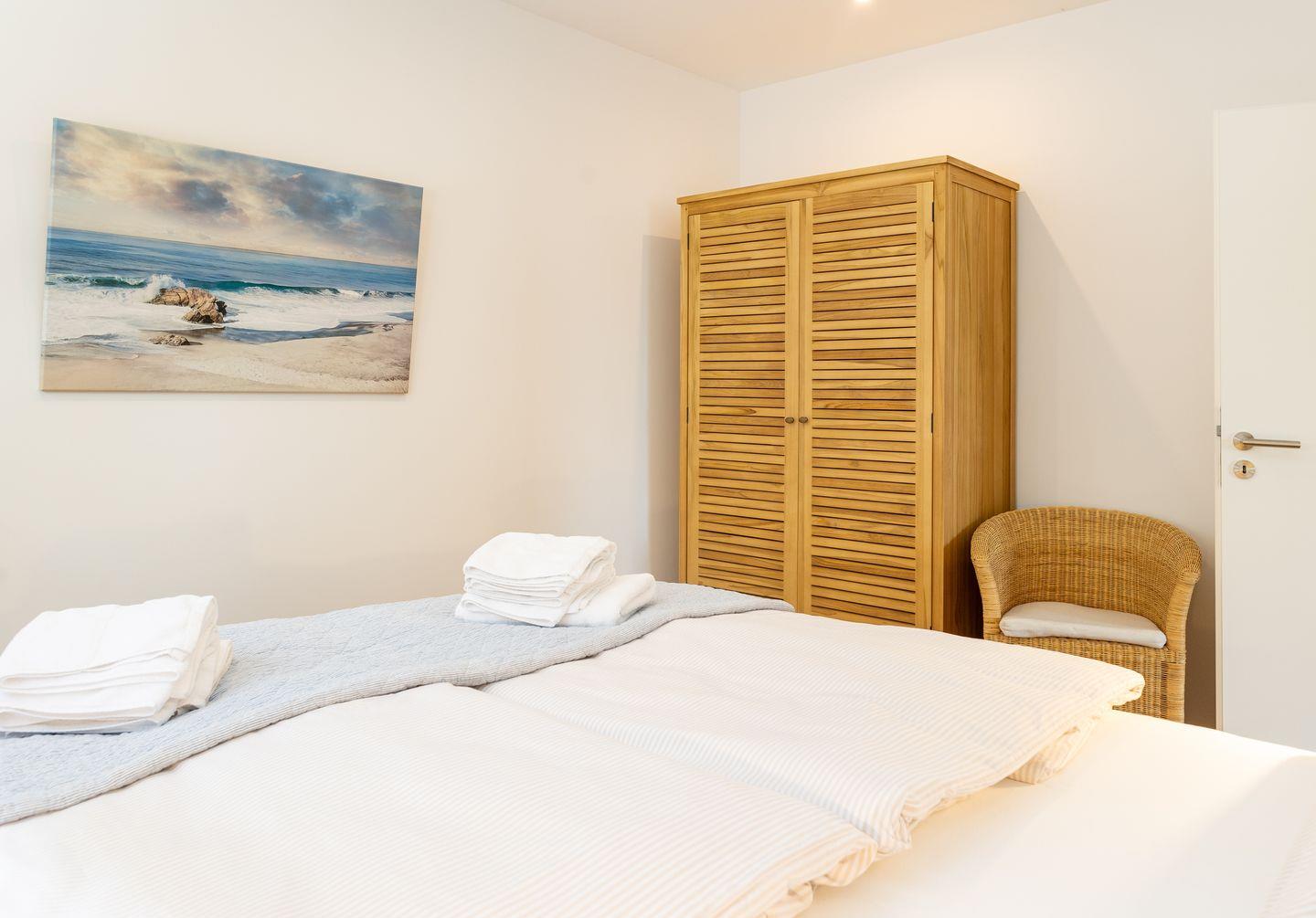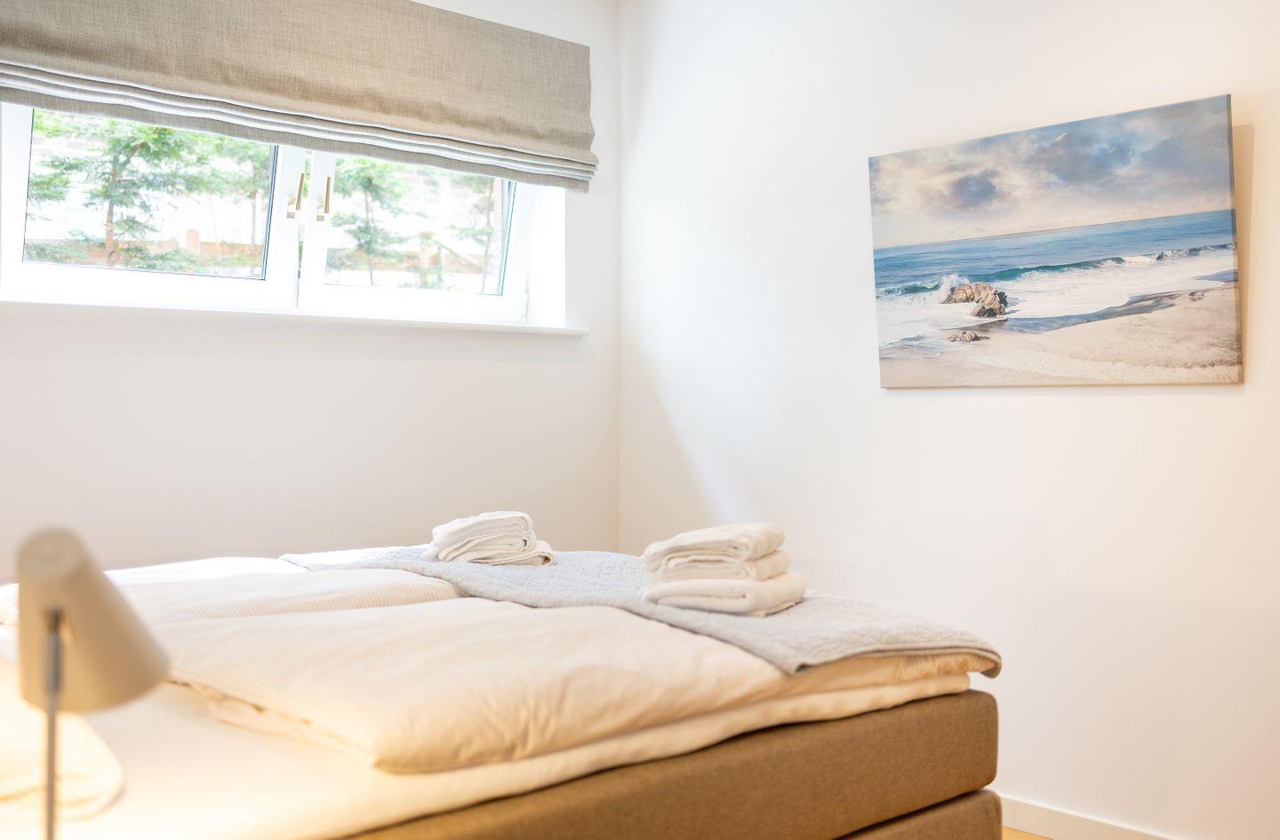 Die Wohnung verfügt über ein Wohnzimmer mit zwei separaten Schlafzimmern mit Boxspringbetten, eine voll ausgestattete Küche mit Geschirrspüler und Backofen, ein Duschbad, Satelliten TV und WLAN. Vor der Wohnung befindet sich ein Balkon mit Meerblick.