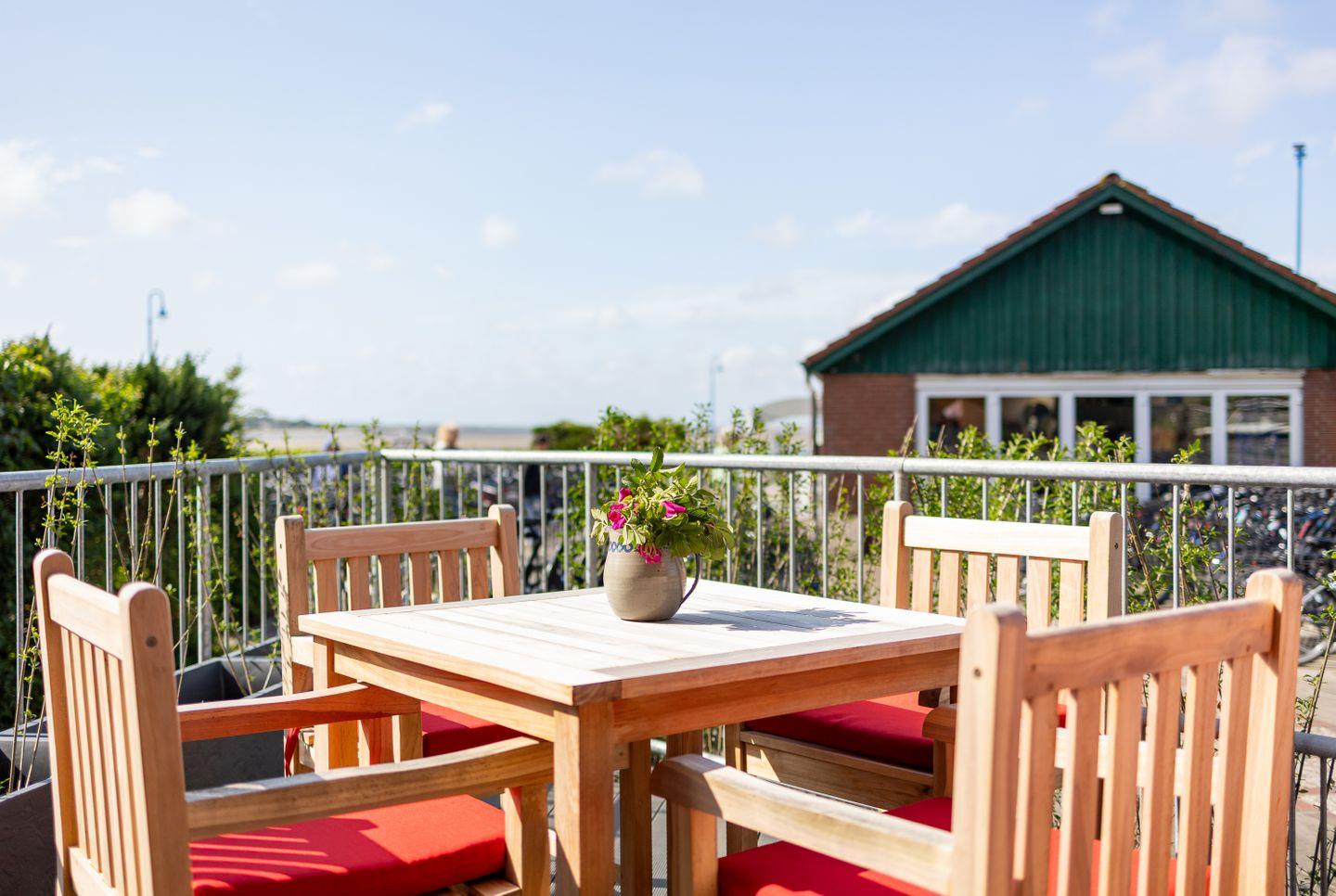Die Wohnung 1 liegt im Erdgeschoss im Ferienhaus Jungnamen Sand und zeigt Richtung Nordosten. Es finden 4 Personen auf 100 qm geschmackvoll eingerichteter Wohnfläche genügend Platz. Vor der Wohnung befindet sich ein Balkon mit Meerblick.