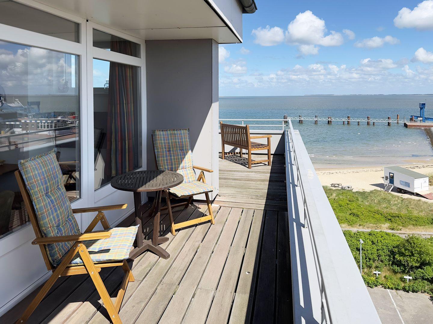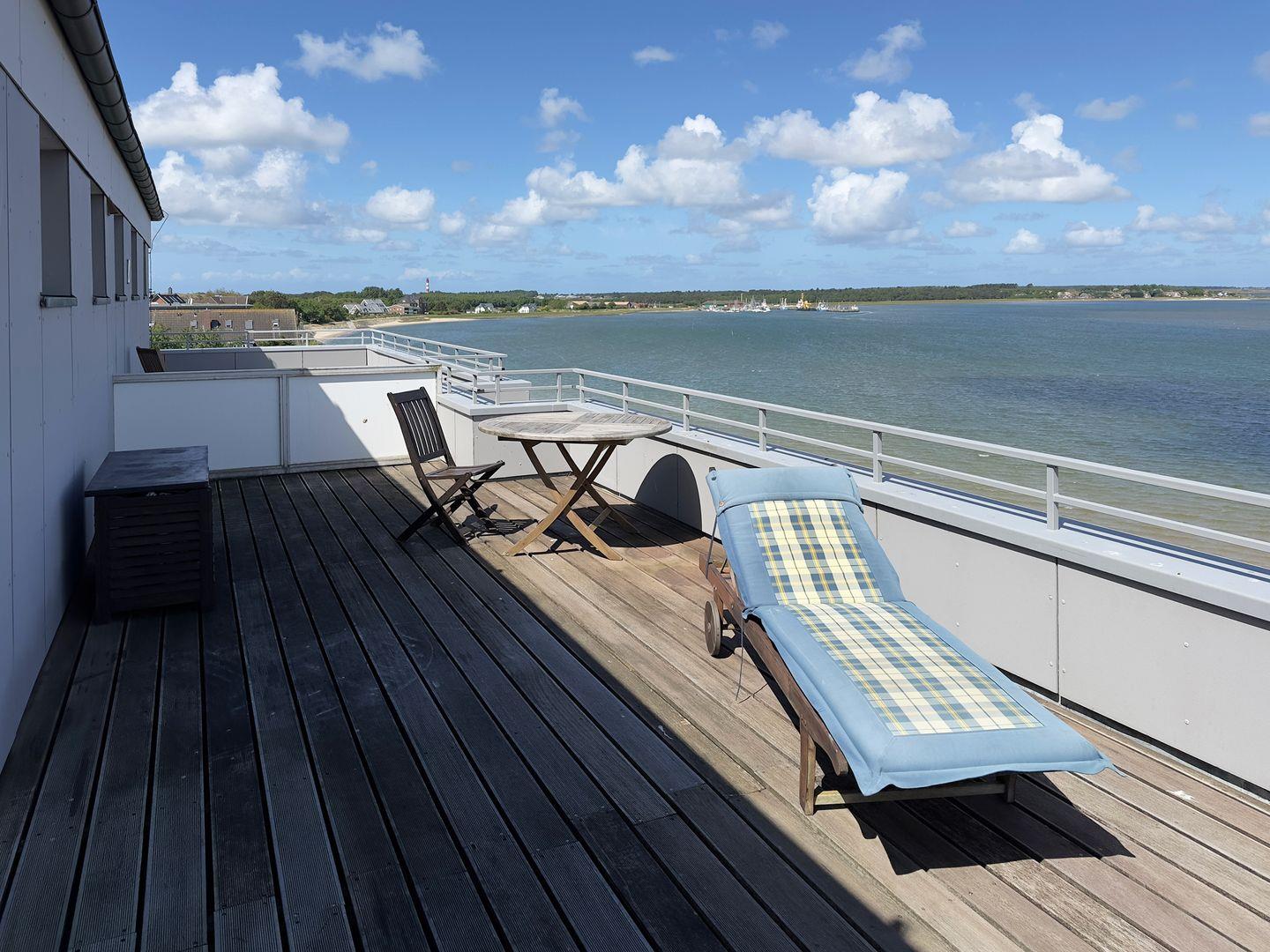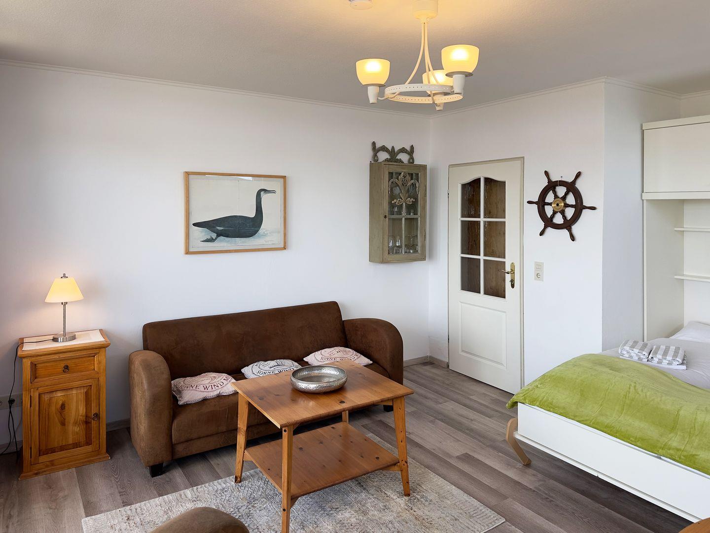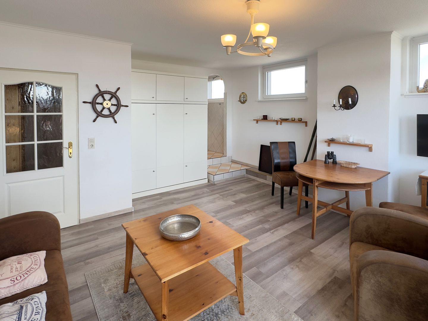Die Wohnung verfügt über 1 Wohnraum mit Sat-TV und offener Küche, 1 Badezimmer mit Dusche und WC, Blick zum Wattenmeer zum Fähranleger und zum Yachthafen sowie nach Föhr, nach Sylt und zu den Halligen. Die Wohnung verfügt über einen 42qm großen Eckbalkon Richtung Osten und Norden. Sonnenaufgänge und Sonnenuntergänge sind inklusive.