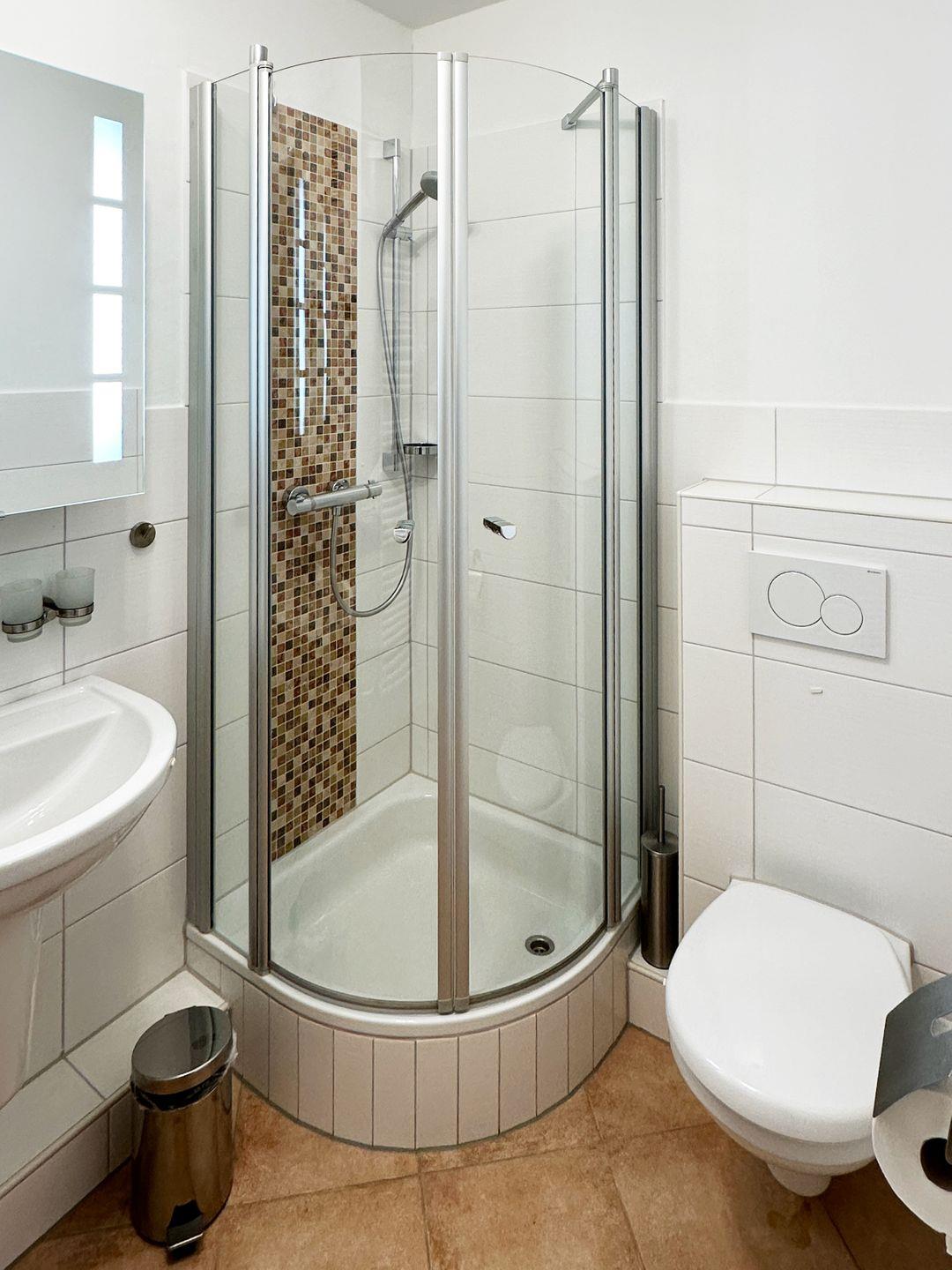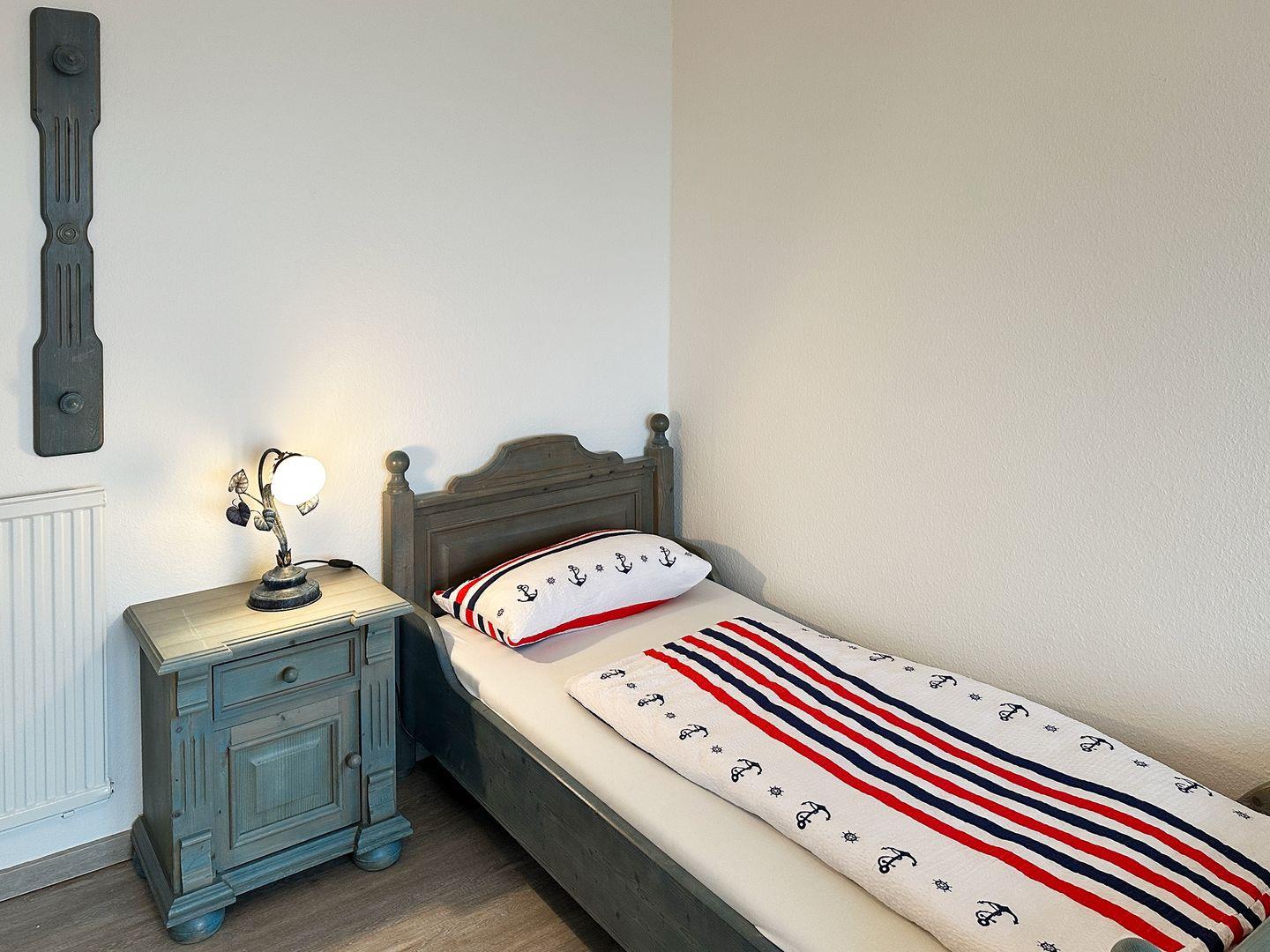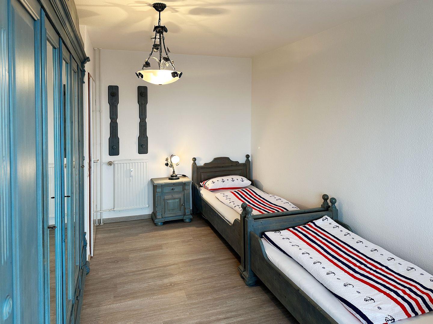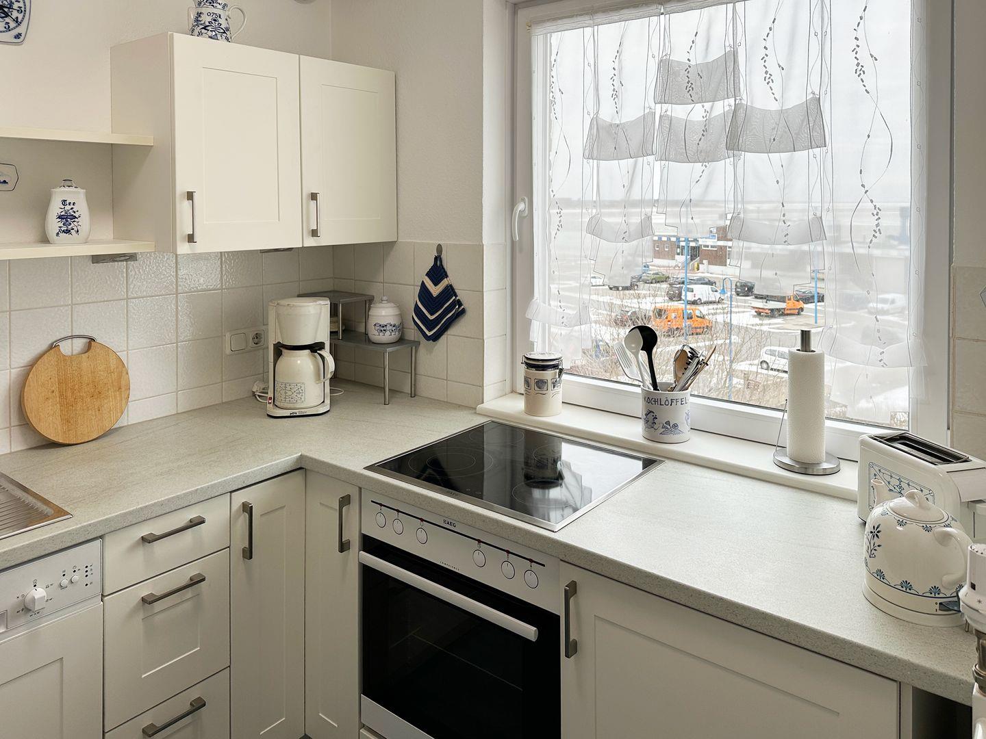 Die Wohnung verfügt über 1 Wohnraum mit Sat-TV, 1 Küche, 1 Schlafzimmer, 1 Badezimmer mit Dusche und WC; 2 überdachte Nord-Balkons mit Gartenmöbeln (April bis Oktober) und Meerblick auf den Fähranleger und Föhr sowie den Seezeichenhafen und die gesamte Insel Amrum bis Sylt bei klarer Sicht.