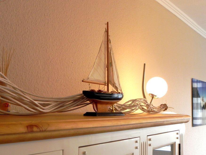 Die Wohnung verfügt über 1 Wohnraum mit WLAN, Sat-TV und offener Küche mit Meerblick, 1 Schlafzimmer, 1 Badezimmer mit Dusche und WC; 1 offener Süd-West-Balkon mit Gartenmöbeln (April bis Oktober).