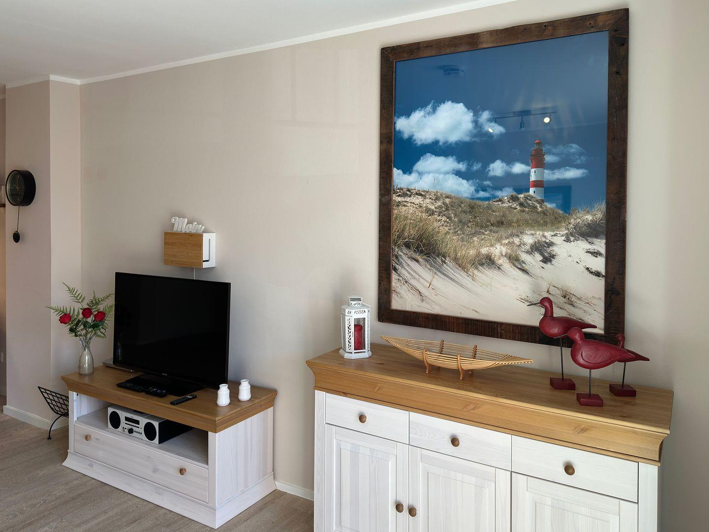 Die Wohnung verfügt über 1 Wohnraum mit WLAN, Sat-TV und offener Küche, 1 Schlafzimmer, 1 Badezimmer mit Dusche und WC; ein offener Süd-Balkon mit Möbeln (April bis Oktober).