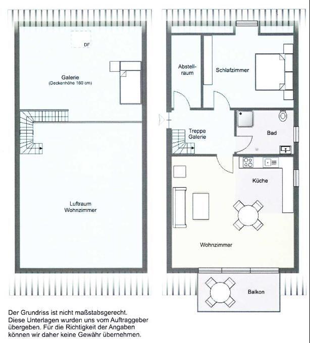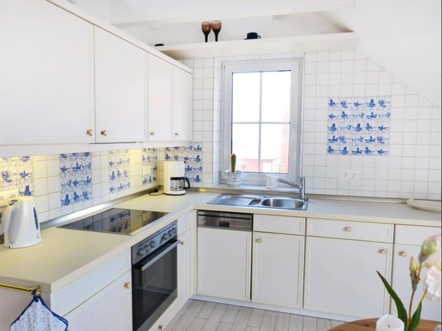 Die Wohnung verfügt über 1 Wohnraum mit WLAN, Sat-TV und offener Küche, 1 Schlafzimmer, 1 Badezimmer mit Dusche und WC; ein Süd-Balkon mit Gartenmöbeln (April bis Oktober) und Meerblick, PKW-Stellplatz. Im Keller befinden sich eine Münz-Waschmaschine sowie ein Münz-Trockner.