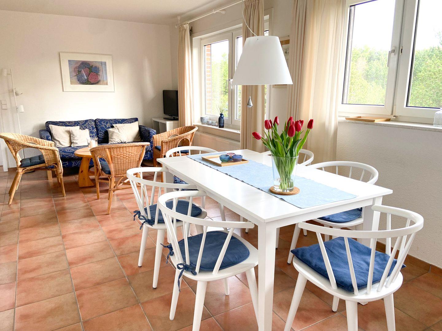 Das 4-Zimmer-*Ferienhaus am Kniep* (ca. 77 qm Grundfläche) in Wittdün auf Amrum bietet Schlafmöglichkeiten für 4 bis 6 Personen.