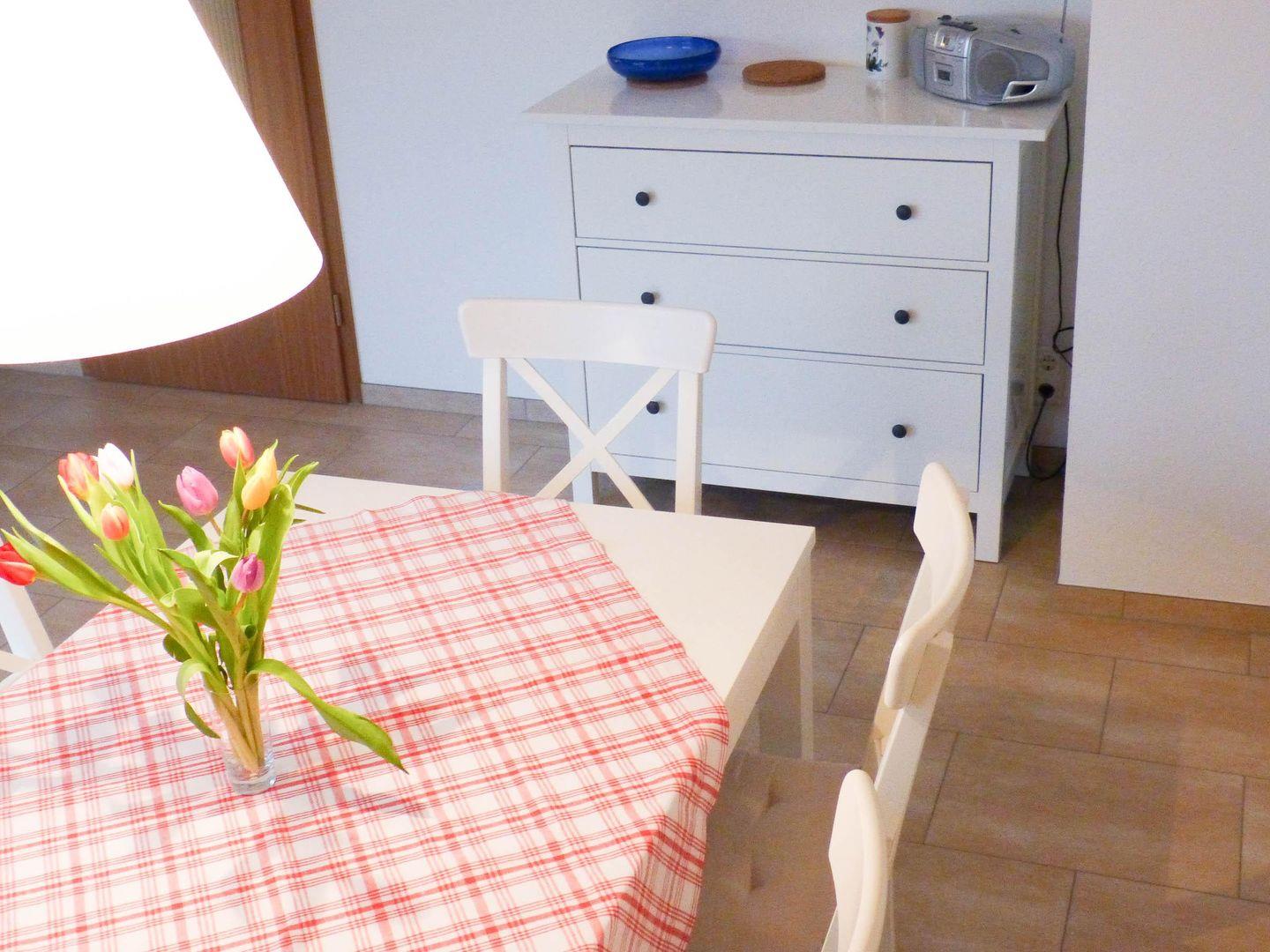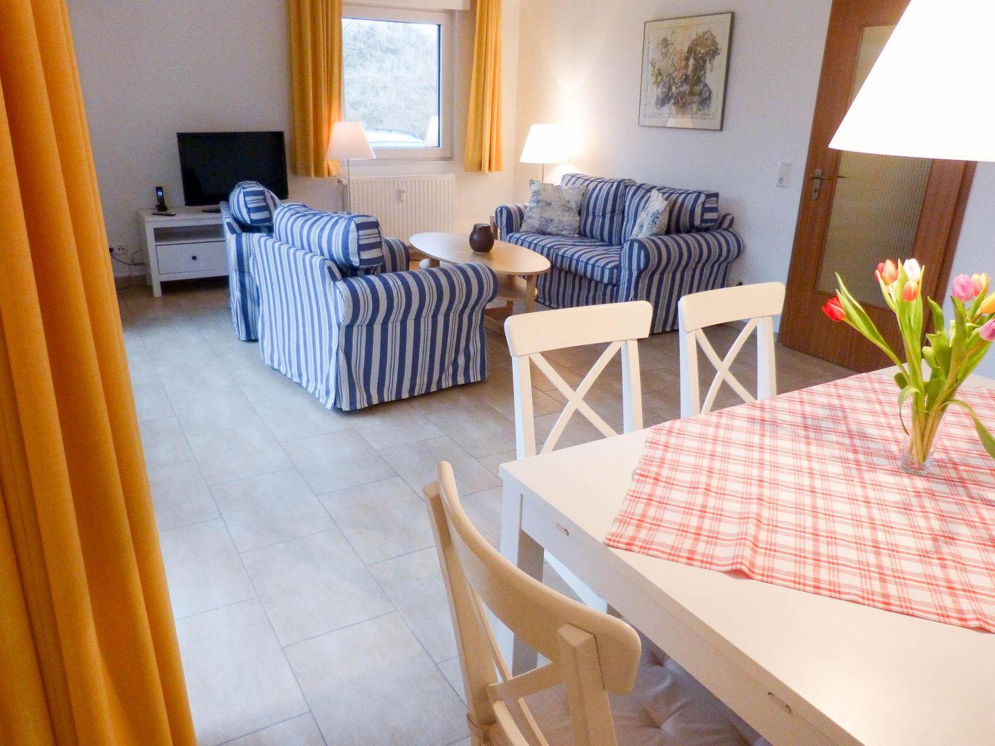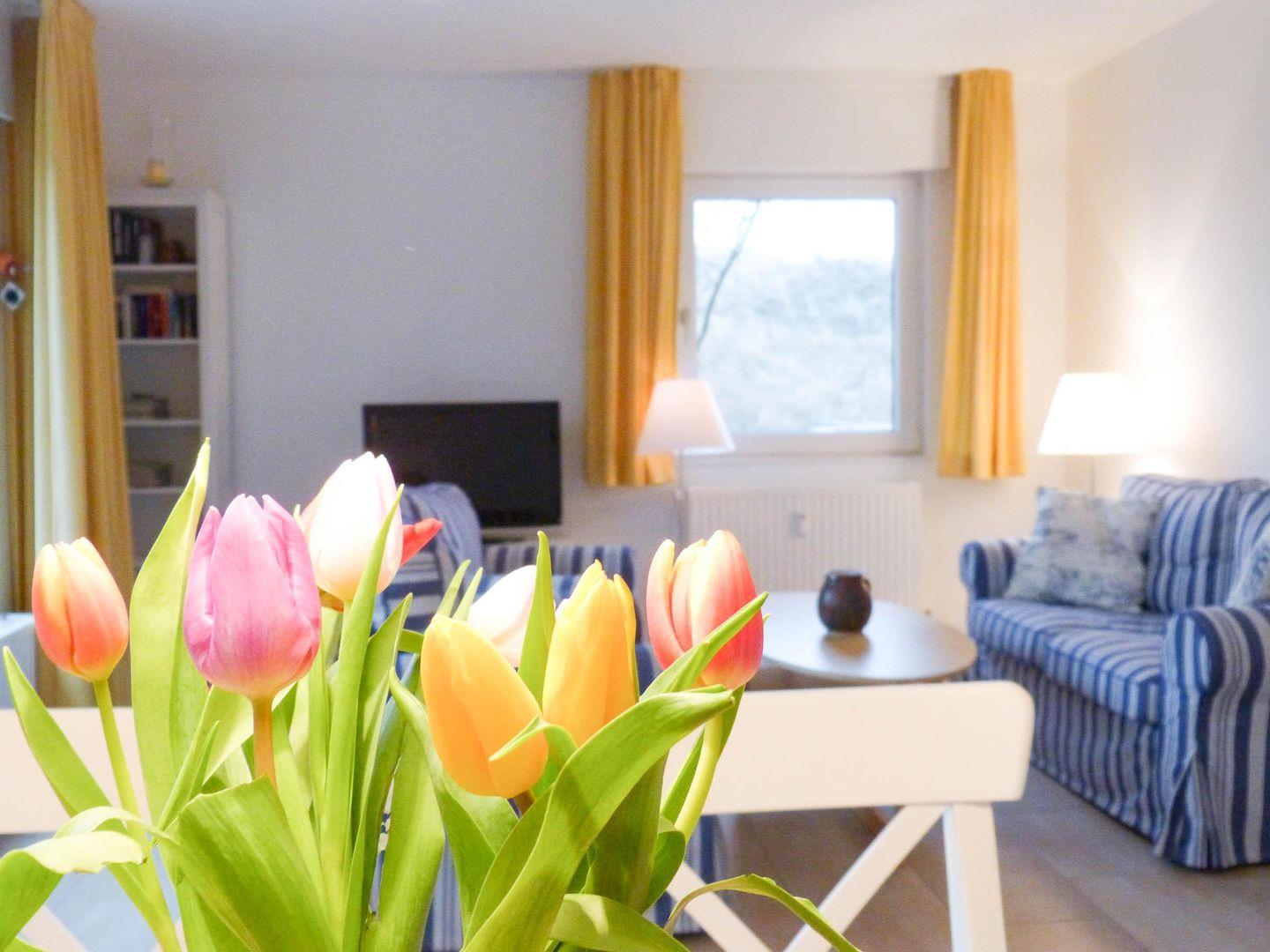 Die Wohnung verfügt über 1 Wohnraum mit WLAN, Sat-TV, 1 Küche, 2 Schlafzimmer, 1 Badezimmer mit Dusche und WC, 1 Gäste-WC; Süd-Terrasse mit Gartenmöbeln (April bis Oktober).