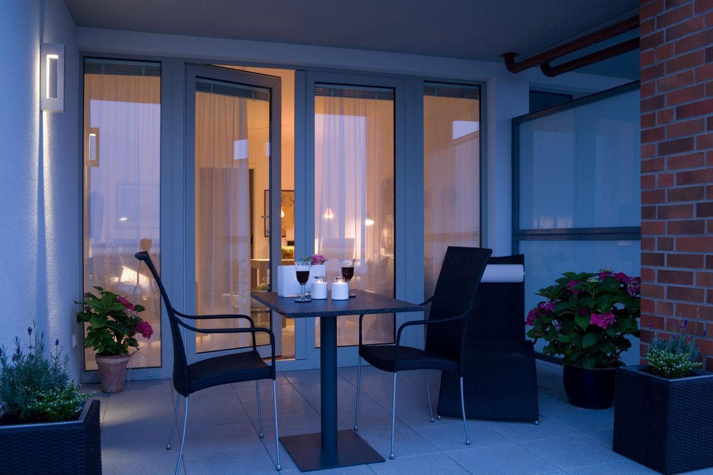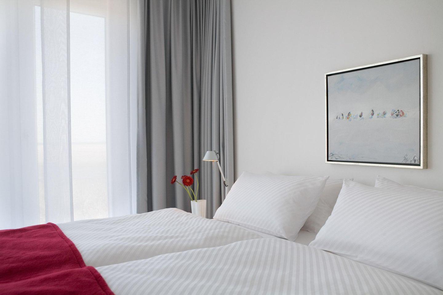 Besonderes Highlight der Ferienwohnung ist die überdachte Terrasse, auf der Sie bei einem Glas Wein den herrlichen Meerblick genießen können. Darüber hinaus verfügt die Wohnung über eine Gemeinschafts-Münz-Sauna im Kellergeschoss des Hauses, in der Sie nach einem ereignisreichen Tag entspannen können.