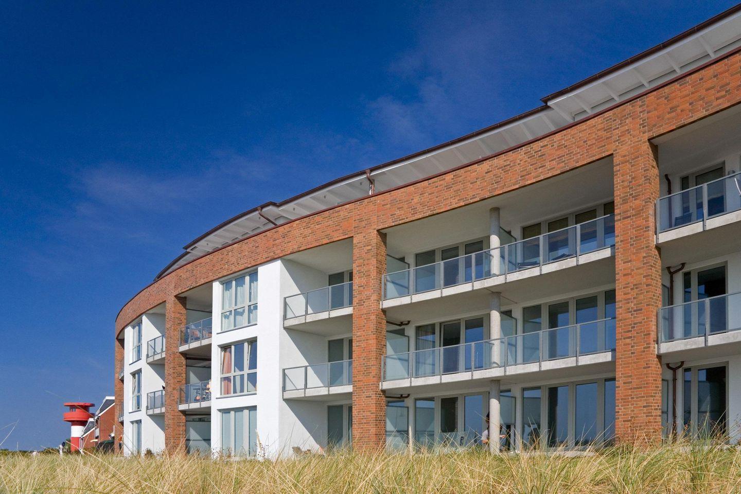 Die Ferienwohnung „Aalto" im Erdgeschoss des Hauses „Amrumer Welle" in Wittdün auf Amrum ist eine 2-Zimmer-Ferienwohnung (ca. 51 qm Grundfläche) mit Schlafmöglichkeiten für bis zu 2 Personen. Die Wohnung verfügt über 1 Wohnraum mit WLAN und SMART-TV und offener Küche, 1 Schlafzimmer, 1 Badezimmer mit Dusche und WC, Waschmaschine und Trockner im Haus; überdachte Süd-Terrasse mit Gartenmöbeln, Strandkorb (April bis Oktober) und Blick über den Kniepsand auf die Nordsee.